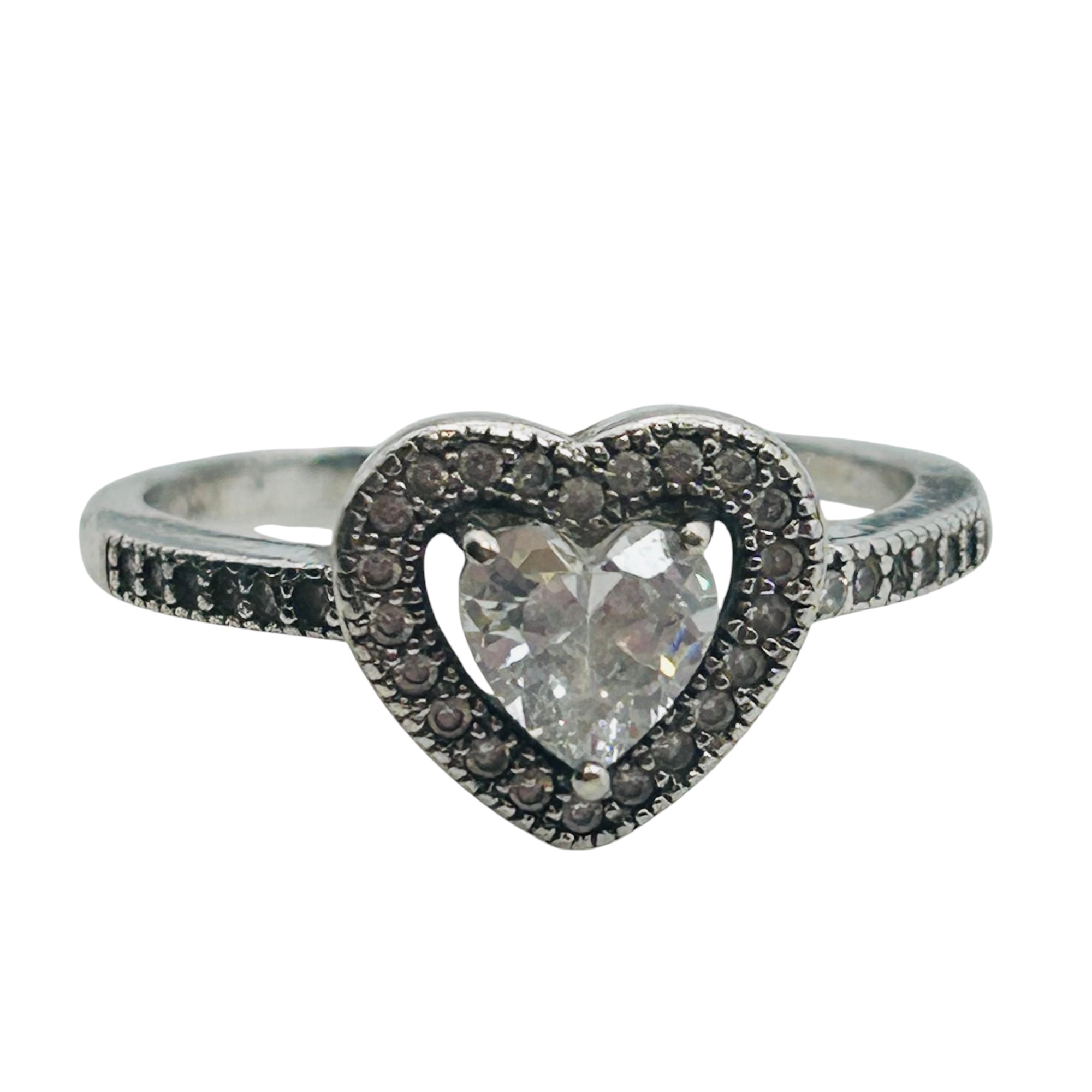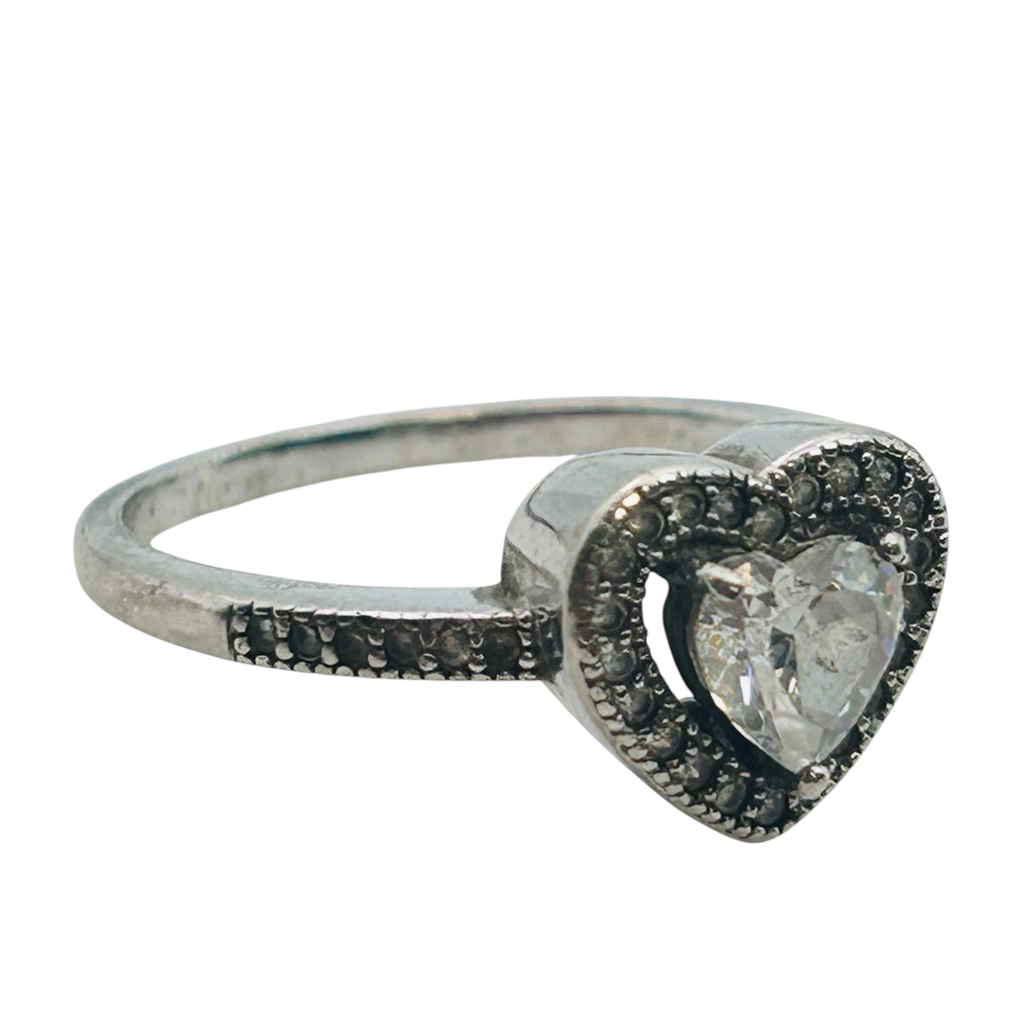 DL rhinestone Sterling heart ring size 6.5 2.77 g