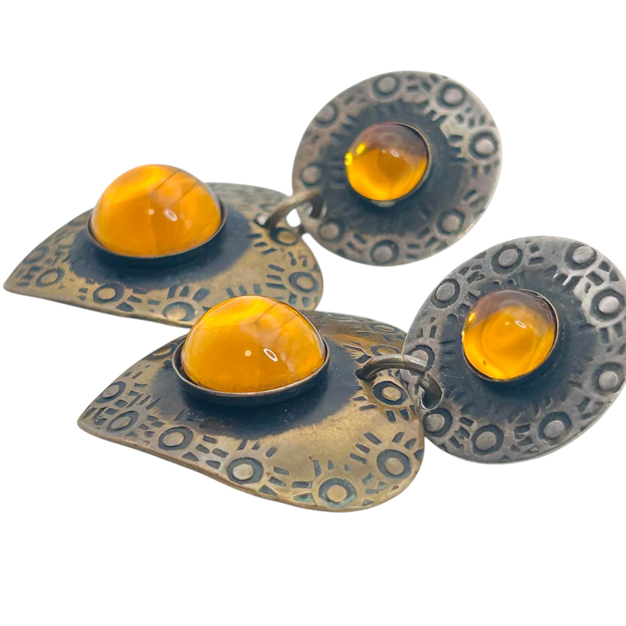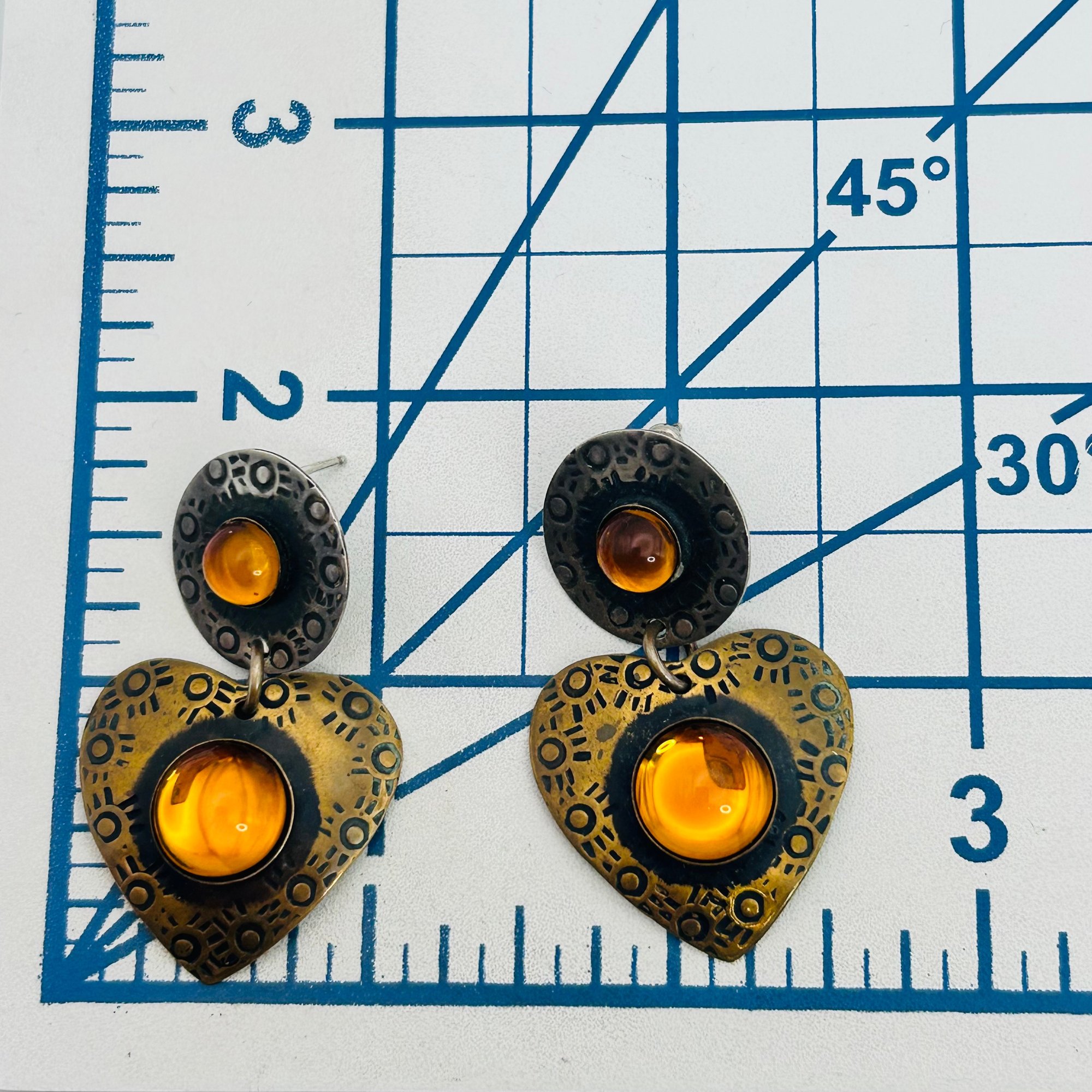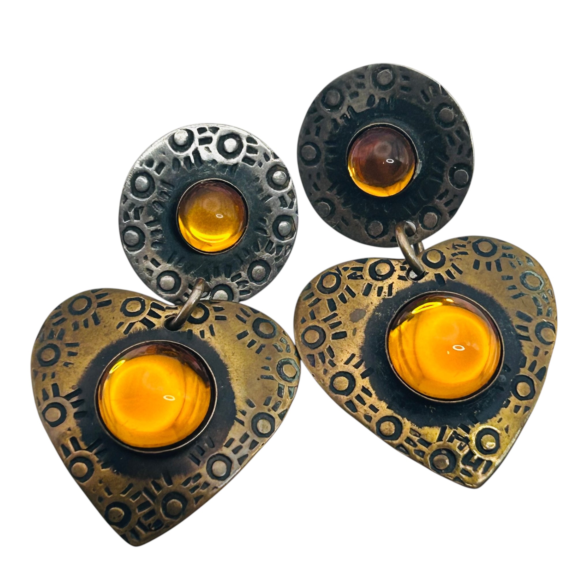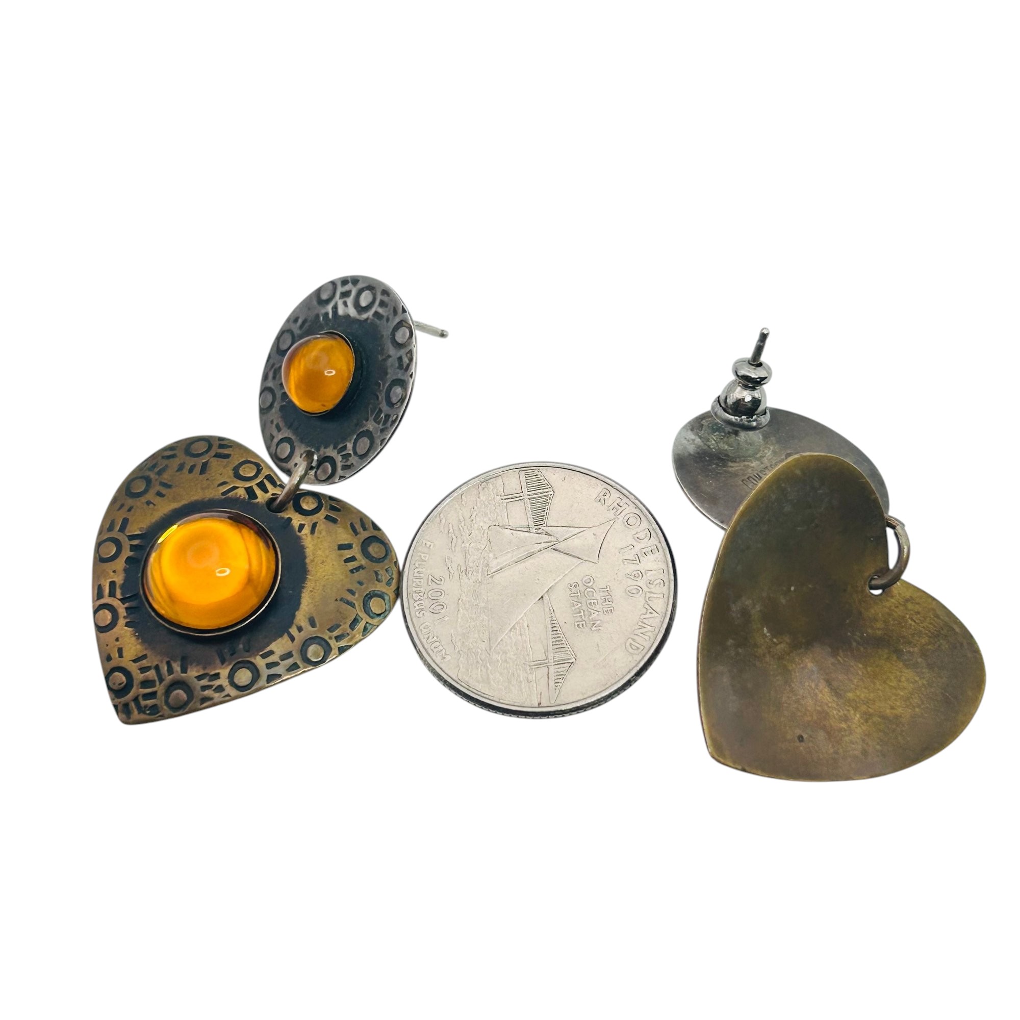 ComStock Sterling and Brass round heart dangle earrings 12.9 g