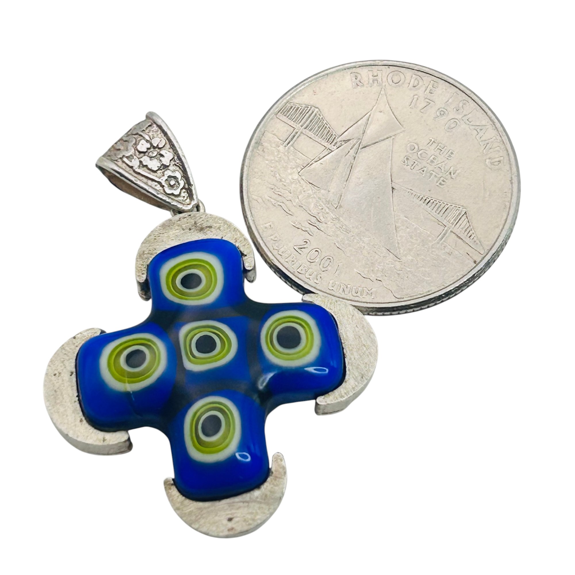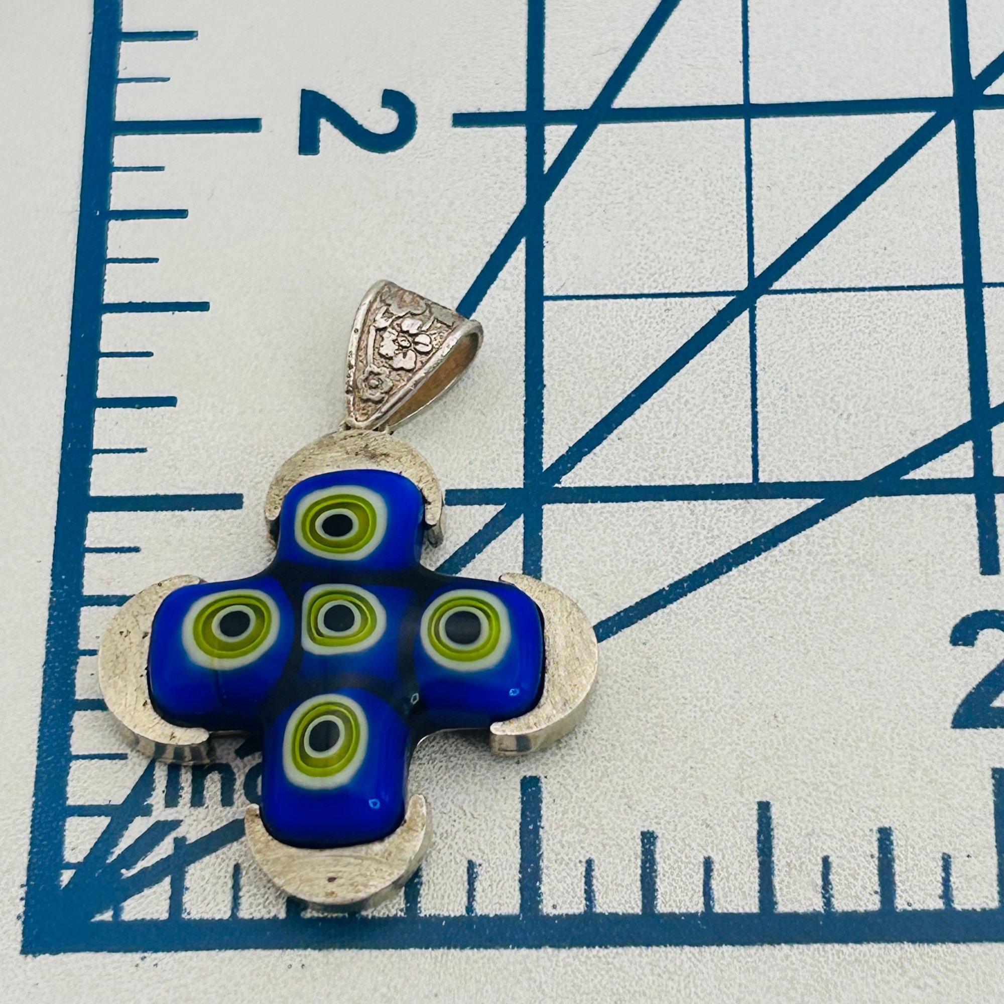Vintage sterling Murano glass cross pendant 8.65 g