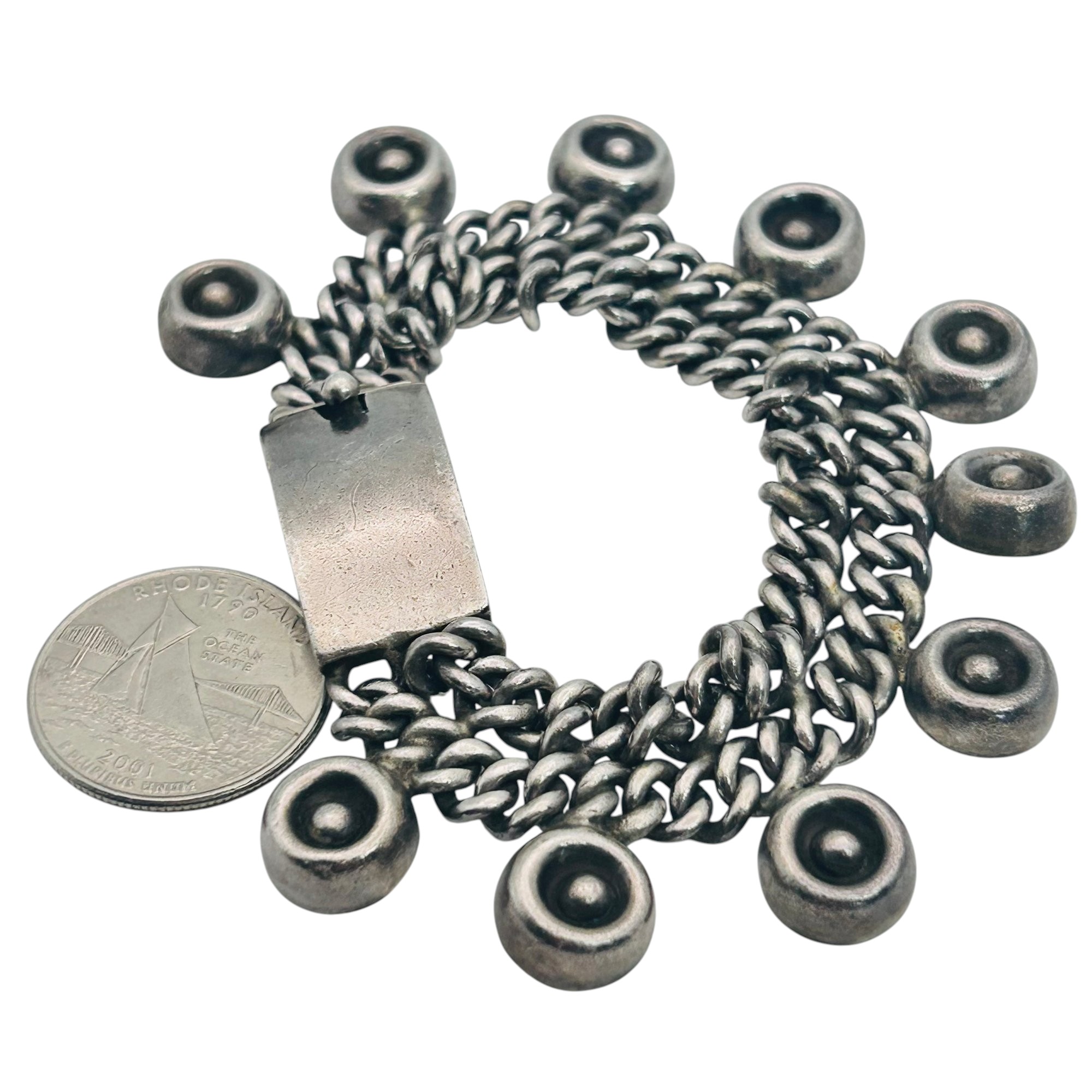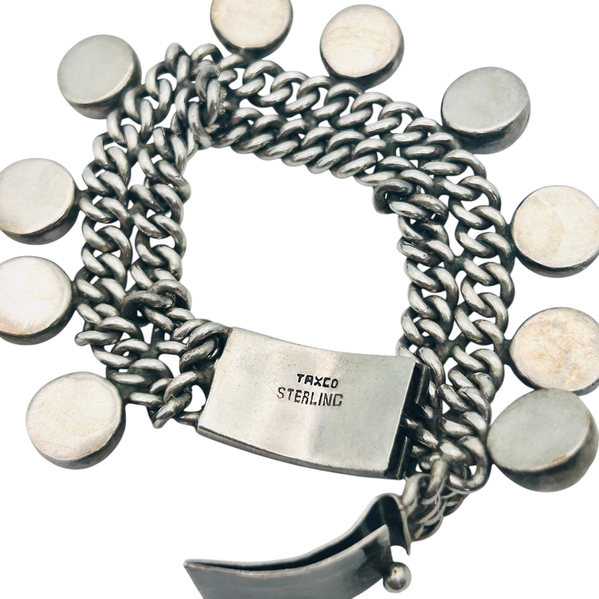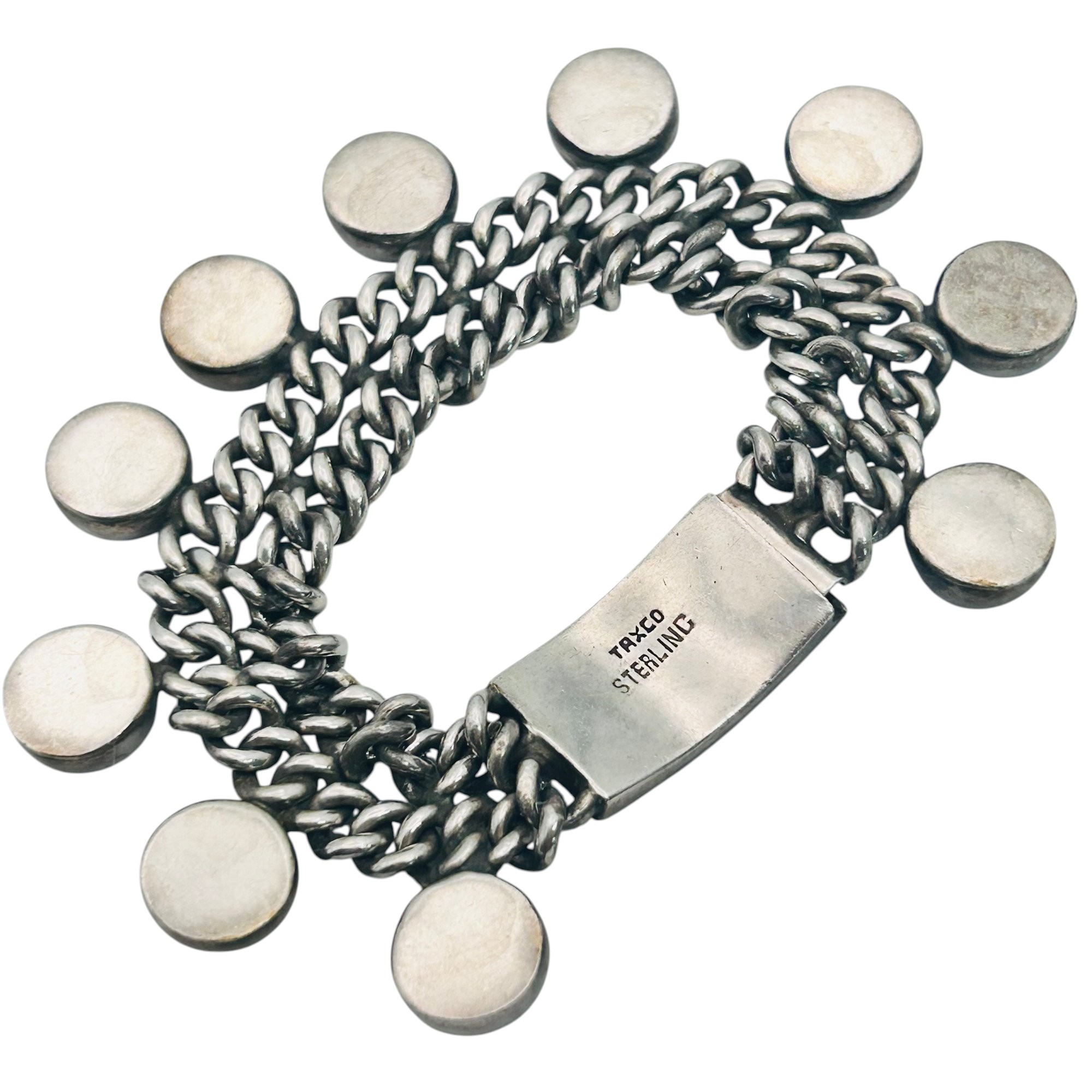 TAXCO Sterling curb chain dangle Circle bracelet 66 g