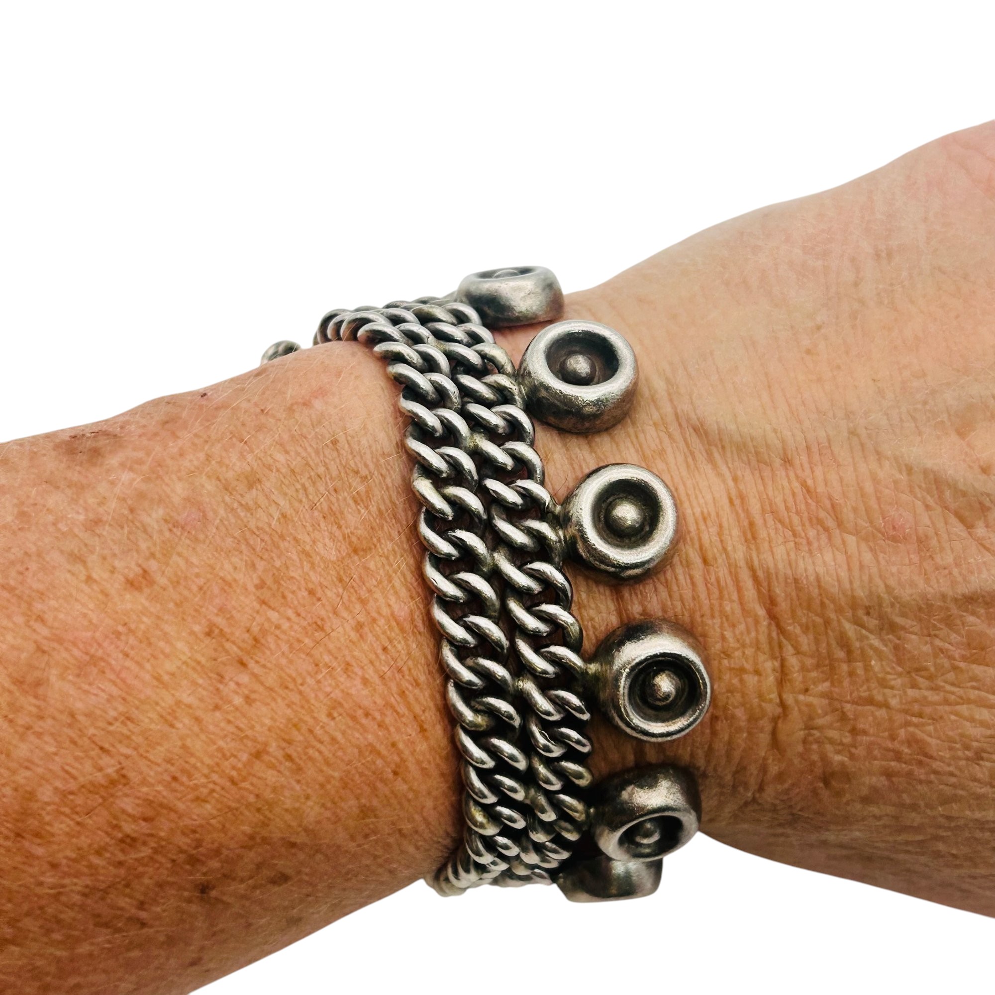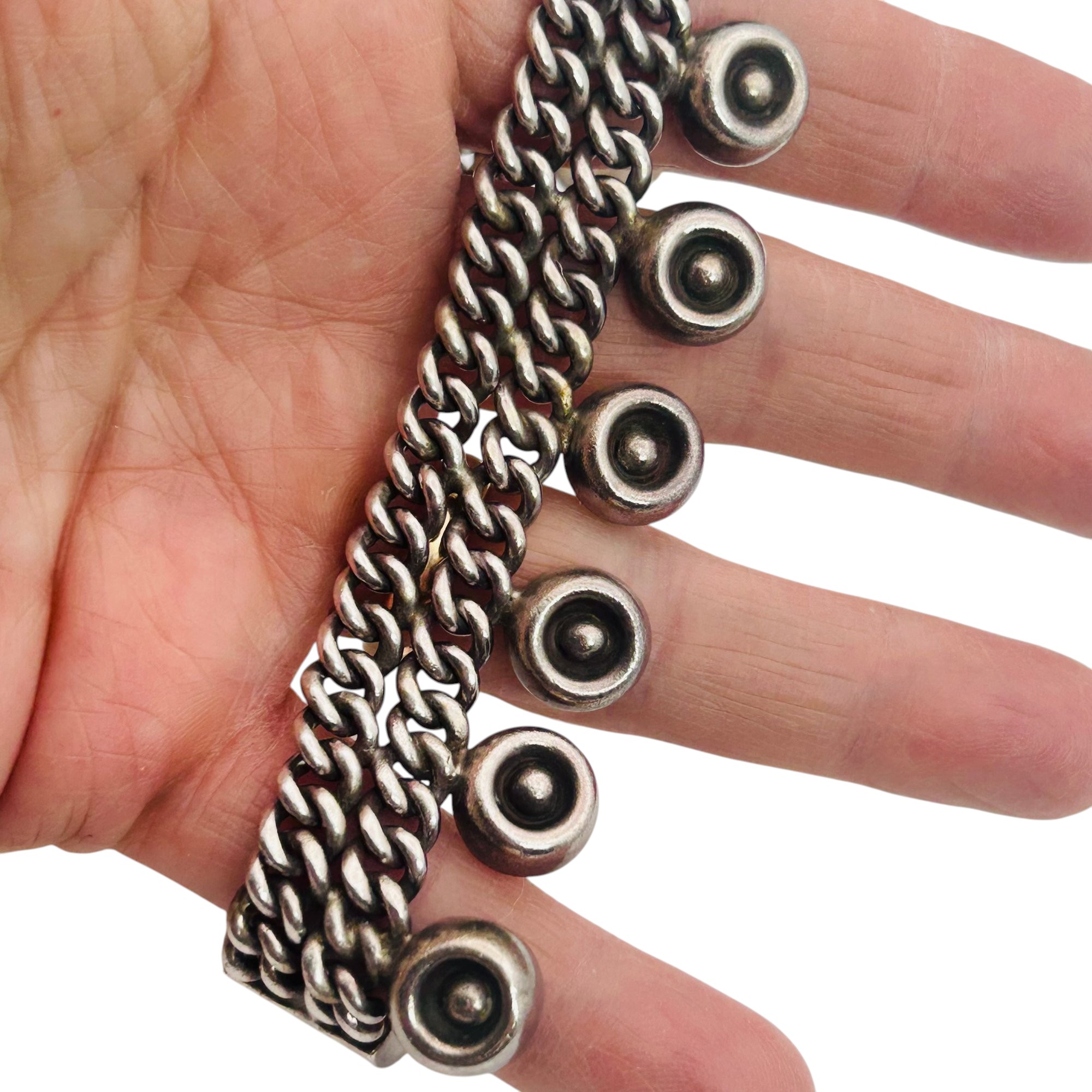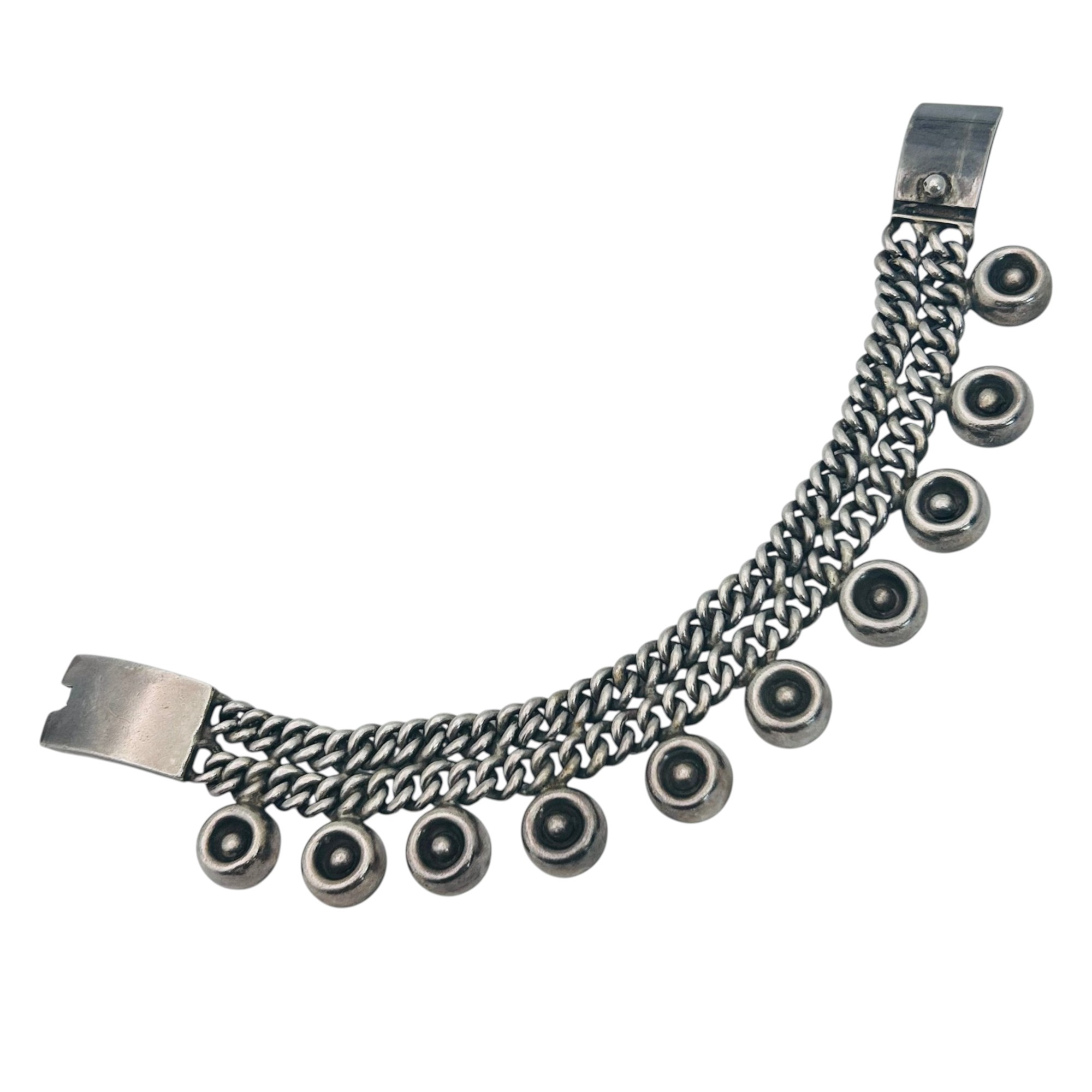 TAXCO Sterling curb chain dangle Circle bracelet 66 g