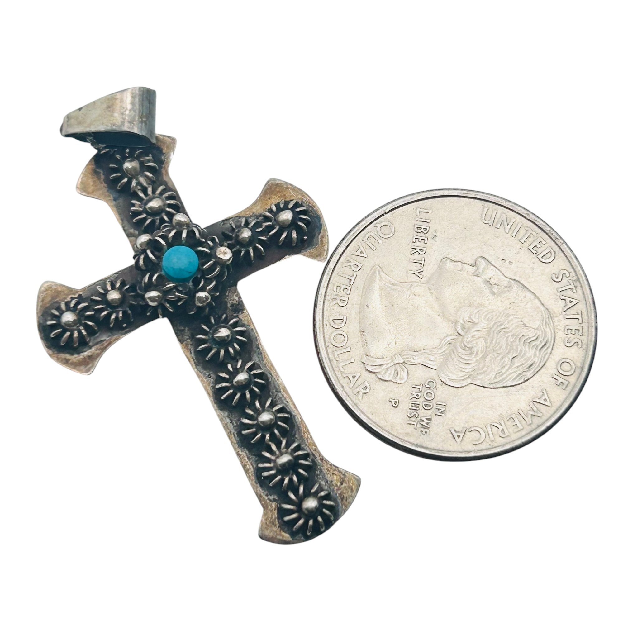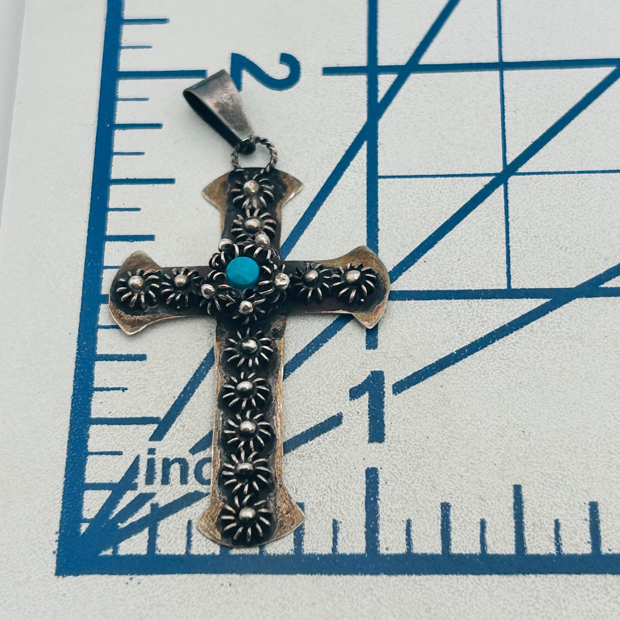 Mexico PCR Sterling flower Cross pendant 3.12 g