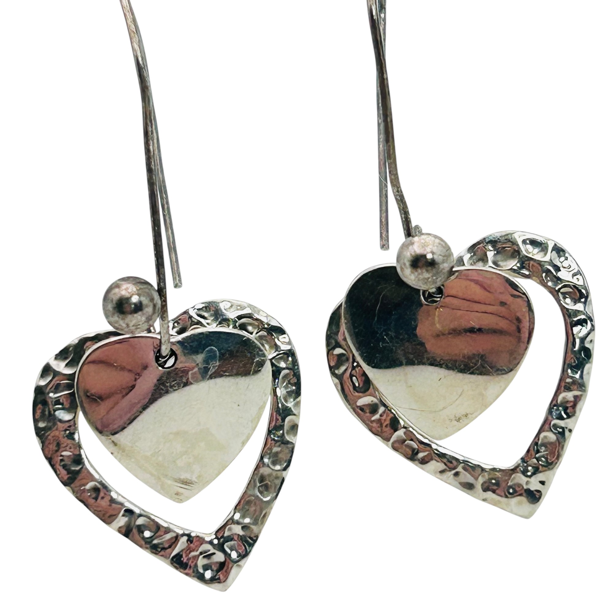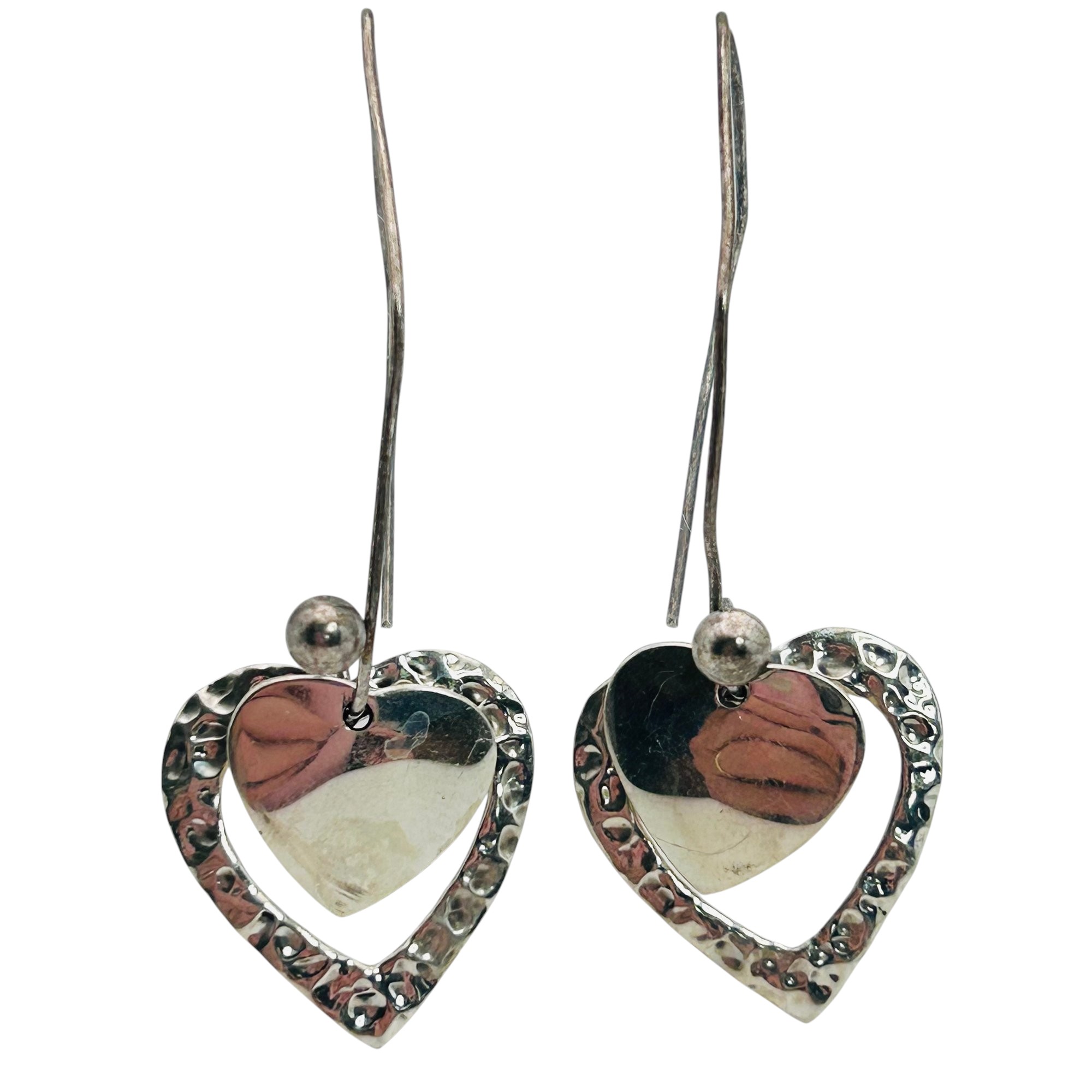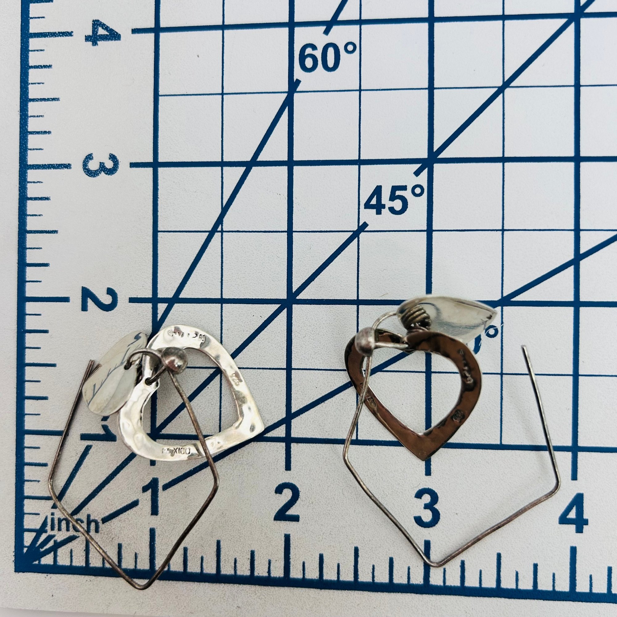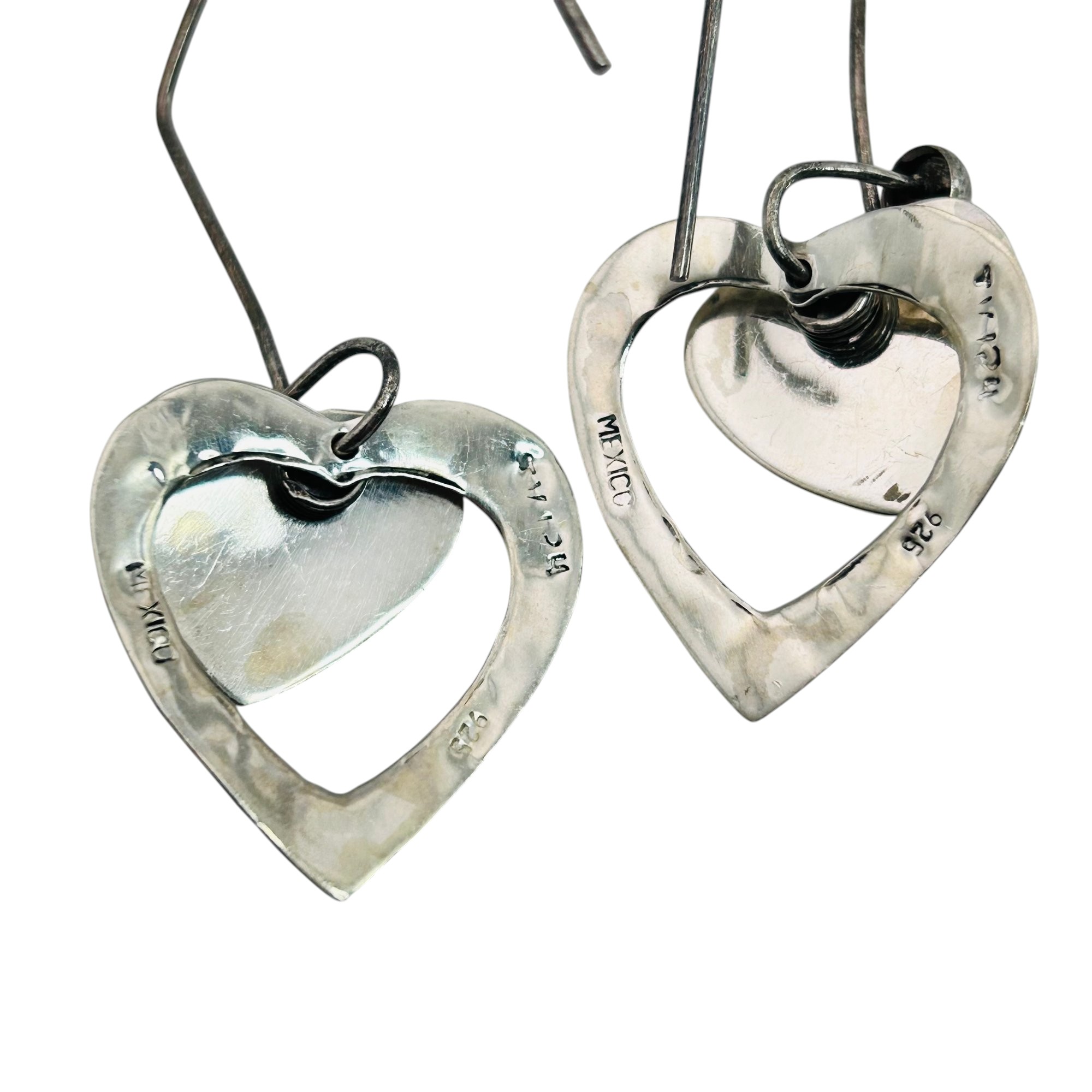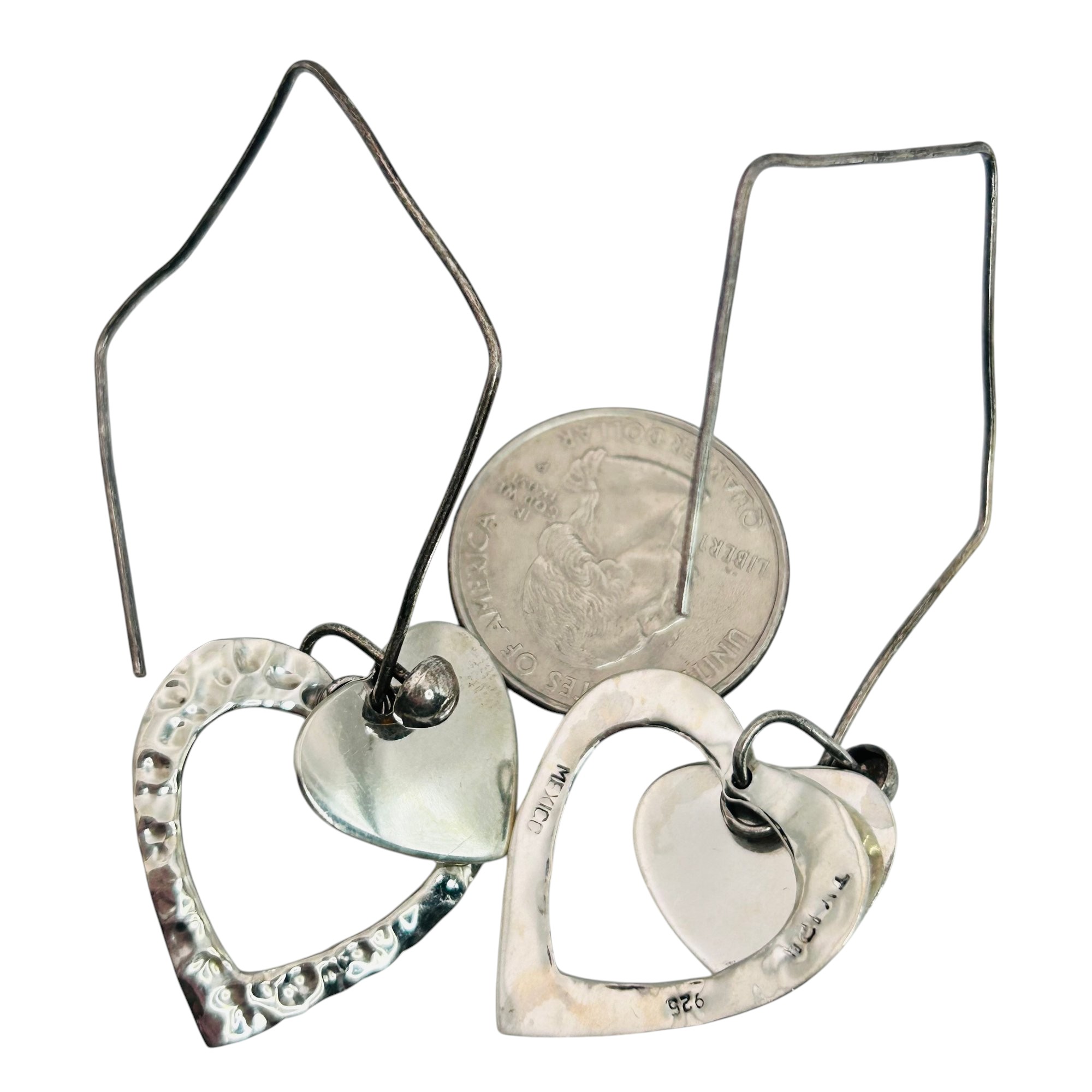TAXCO TV-124 Mexico Sterling thread heart hammered cut out earrings 7.89 g