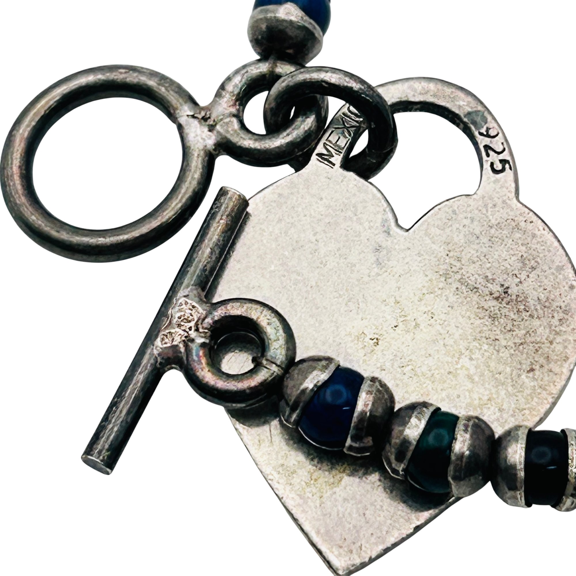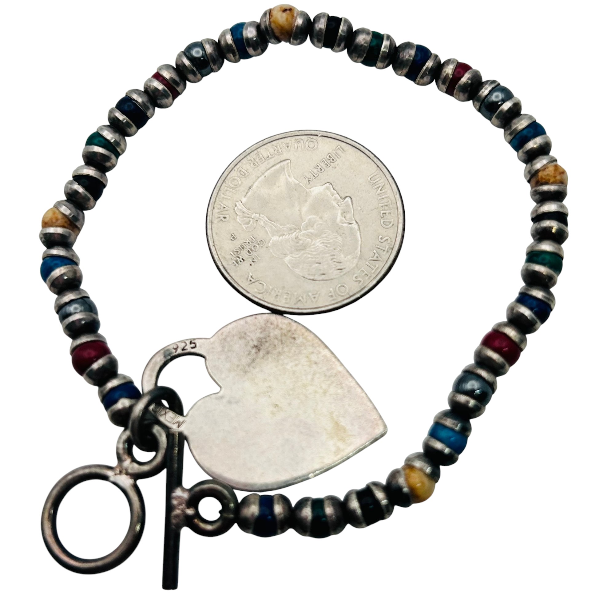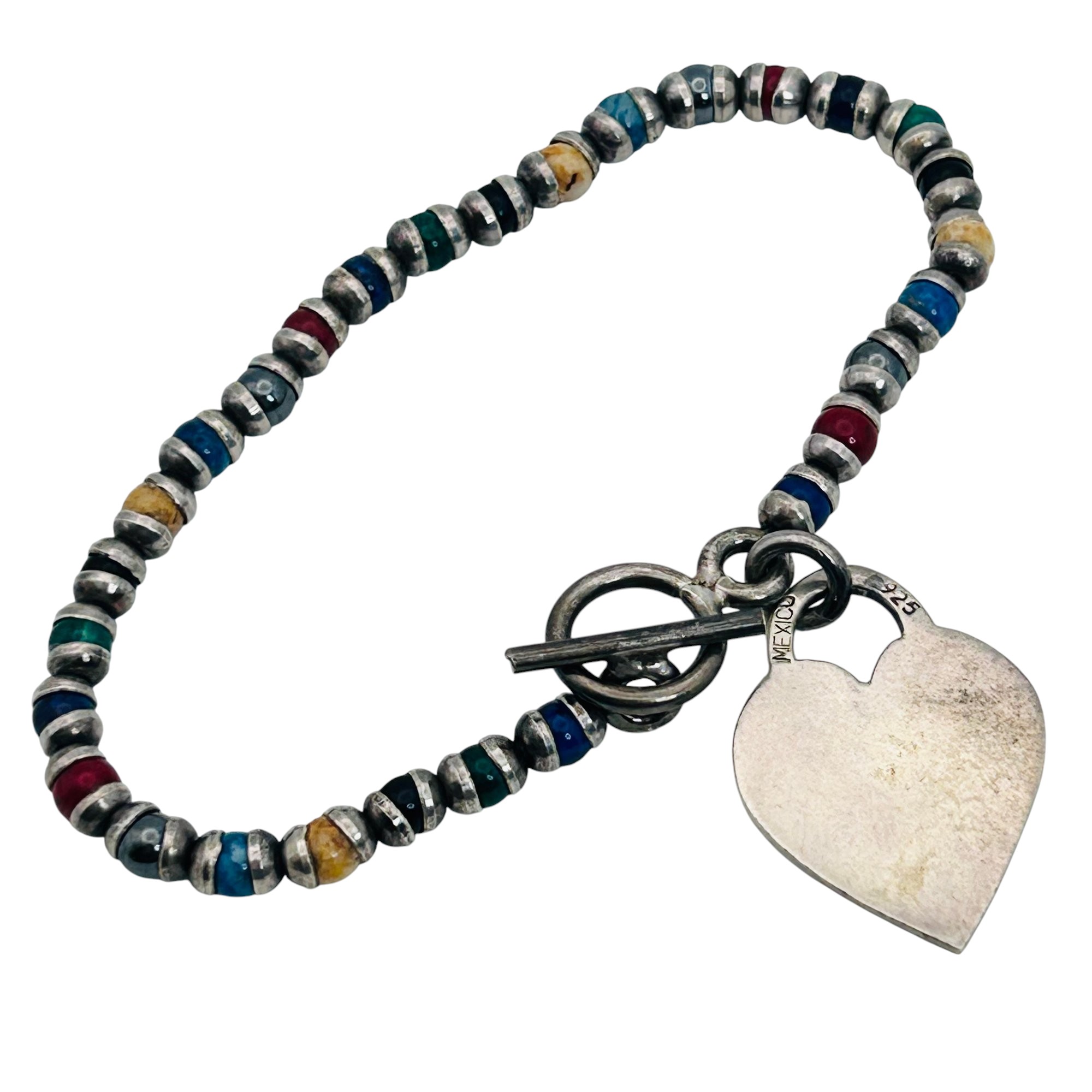 Vintage Mexico Sterling rainbow bead heart toggle bracelet 16.53 g