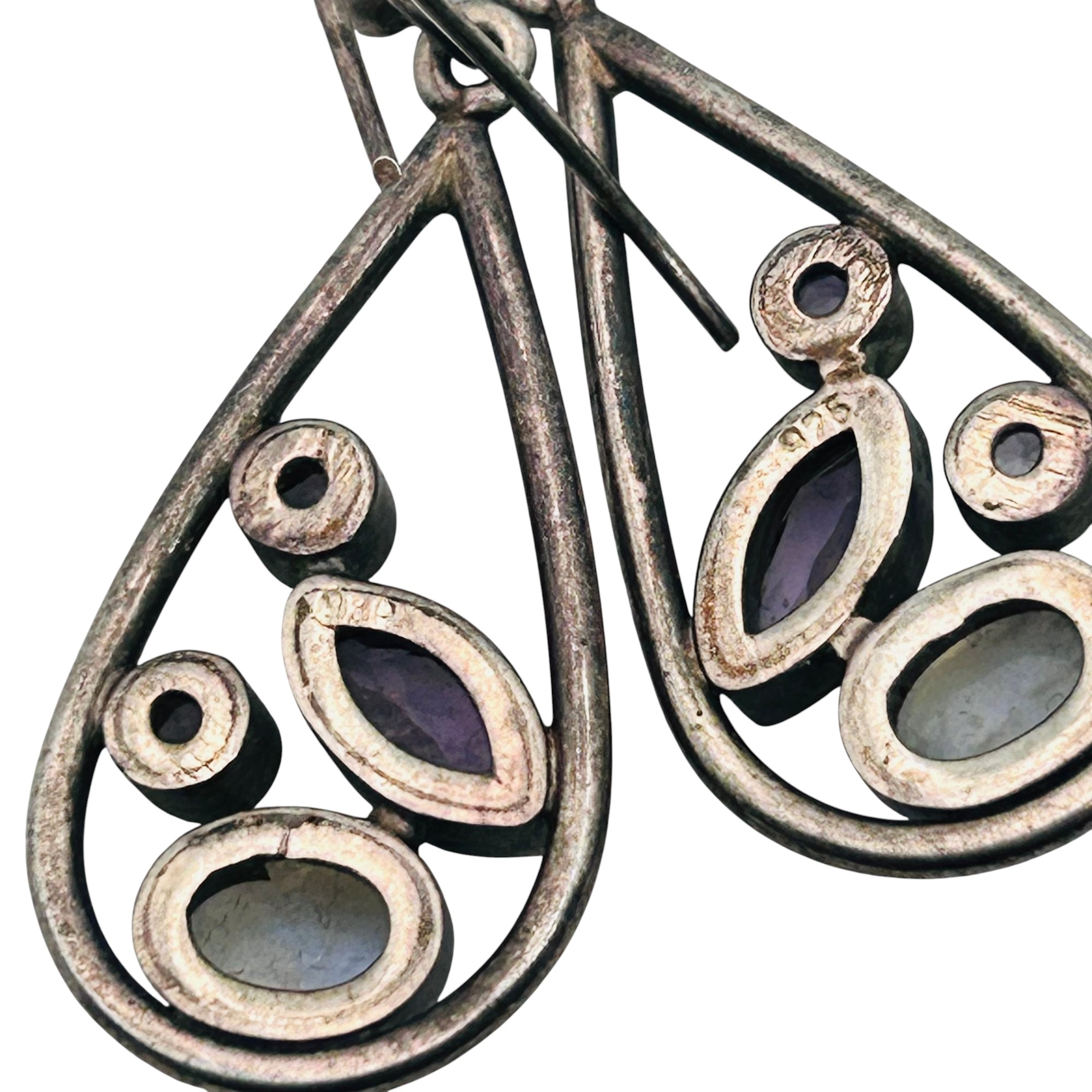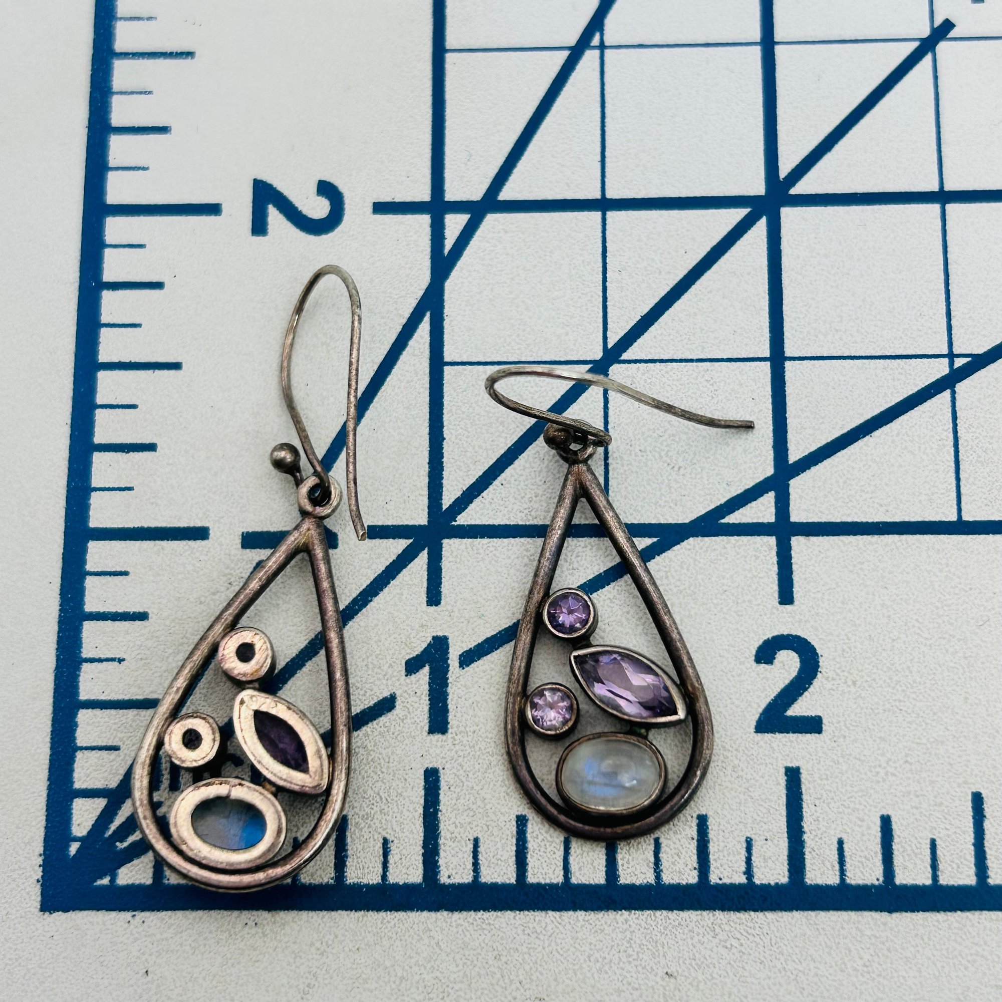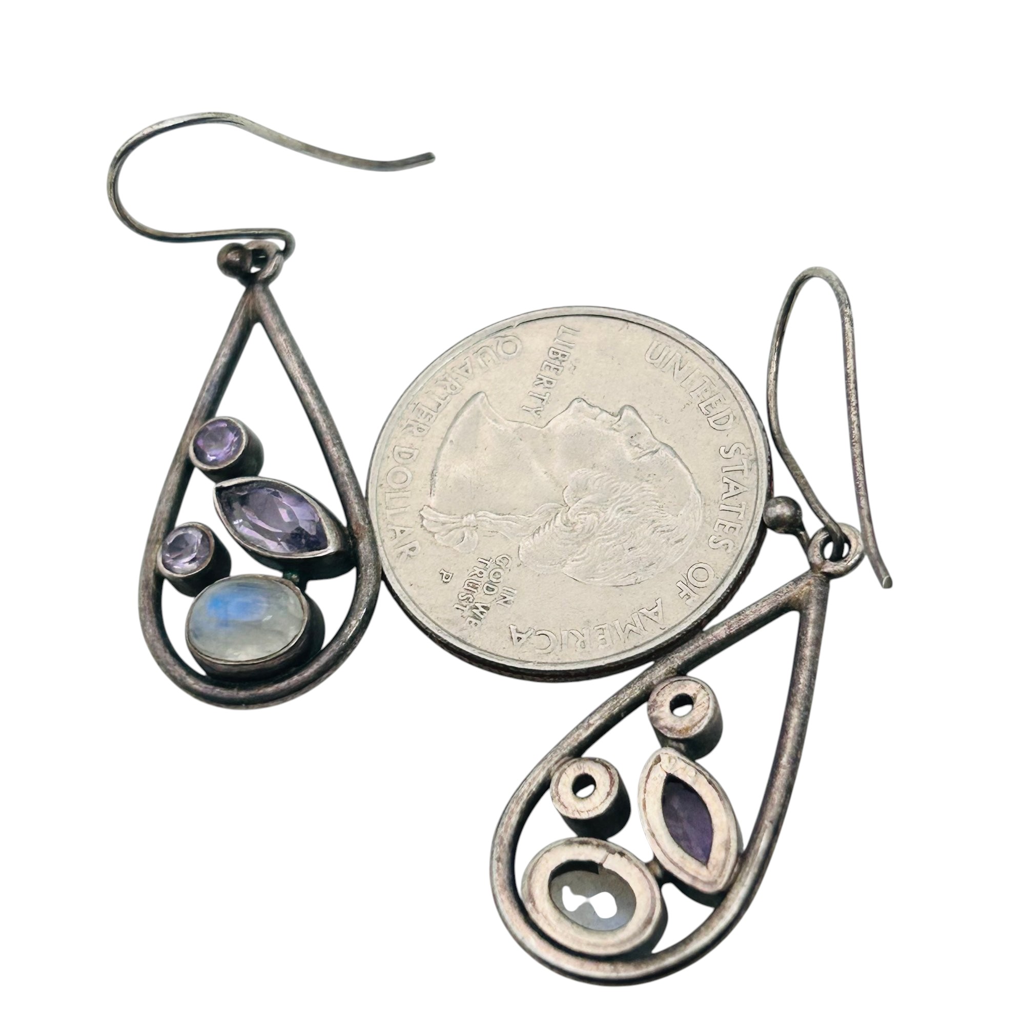 Amethyst and moonstone Sterling teardrop earring 6.13 g