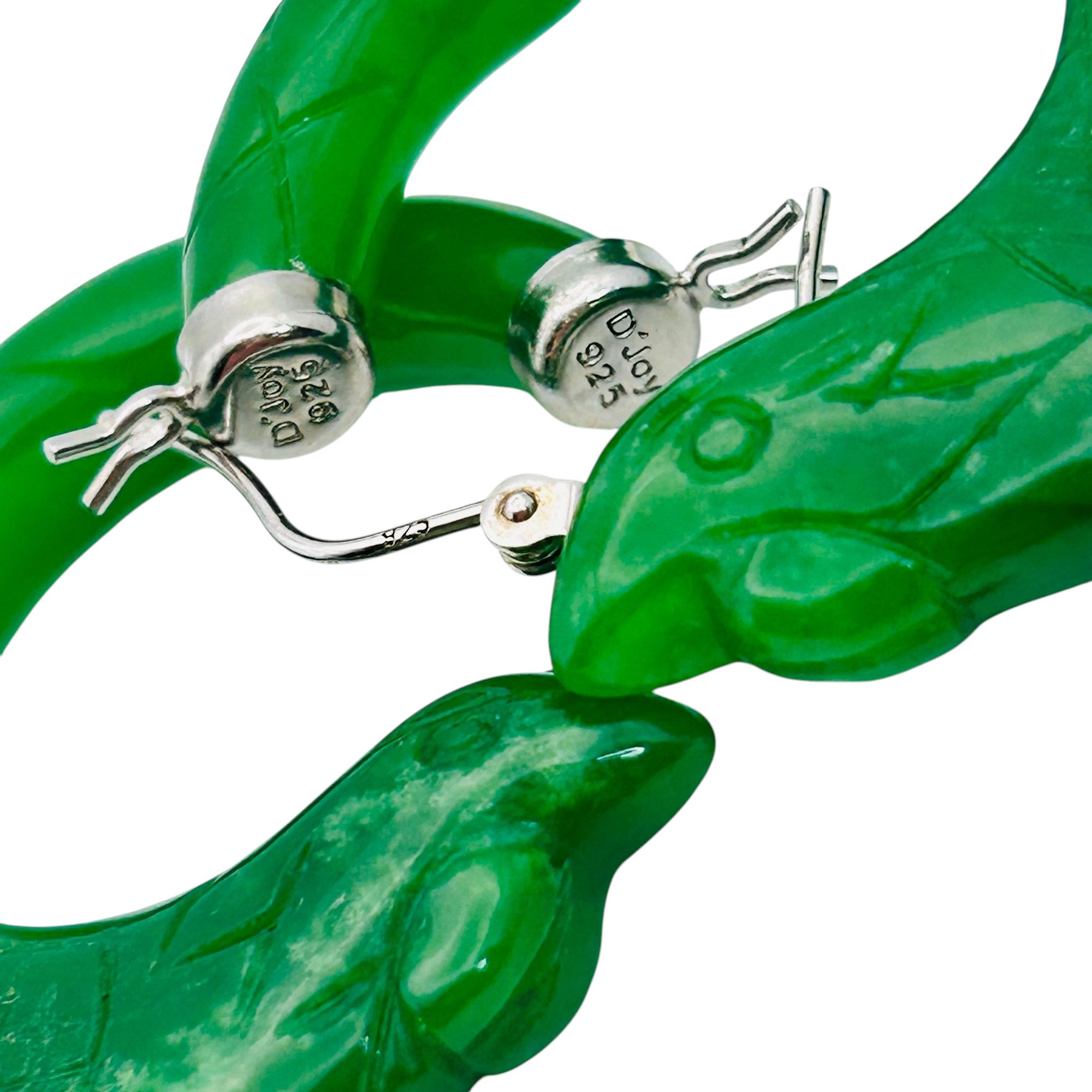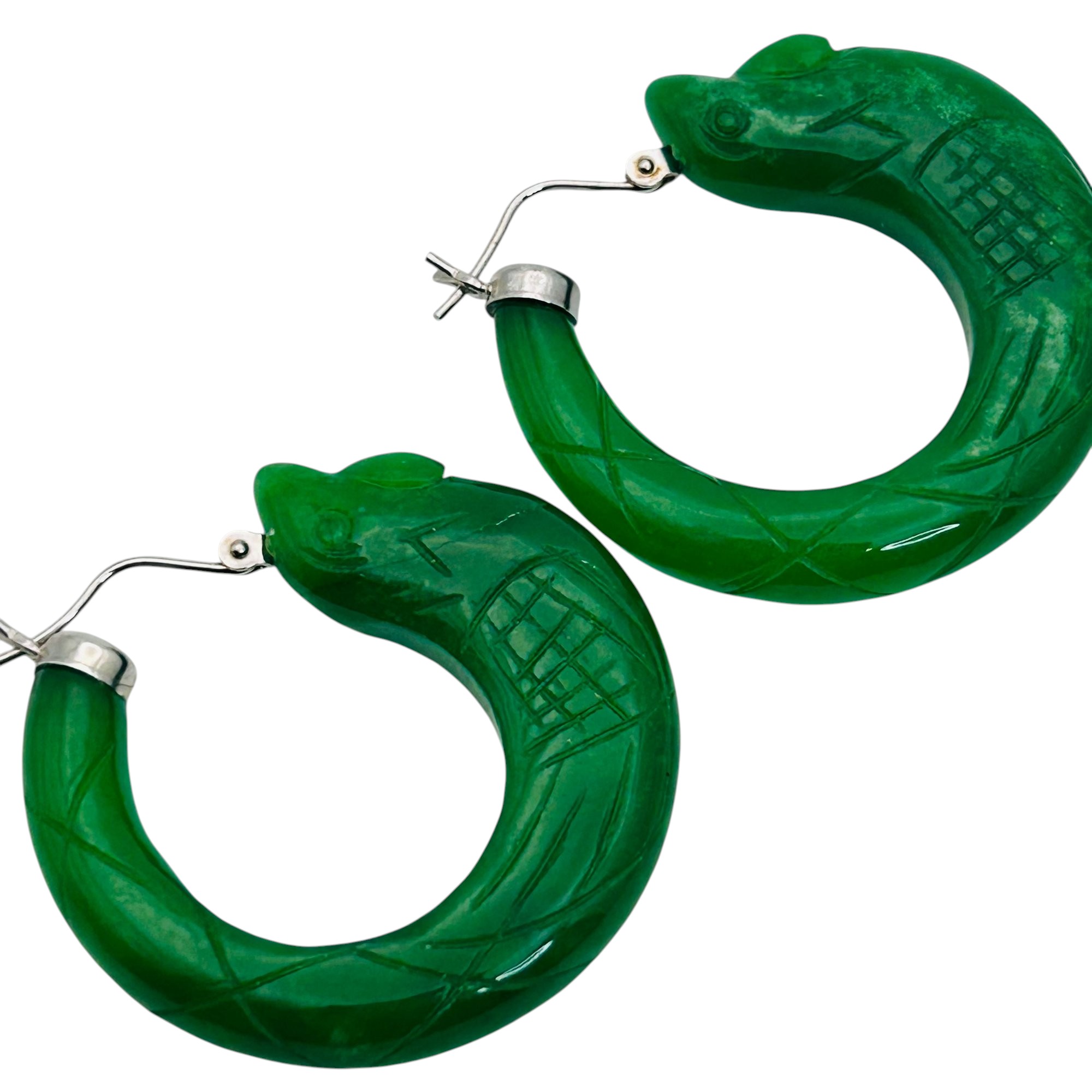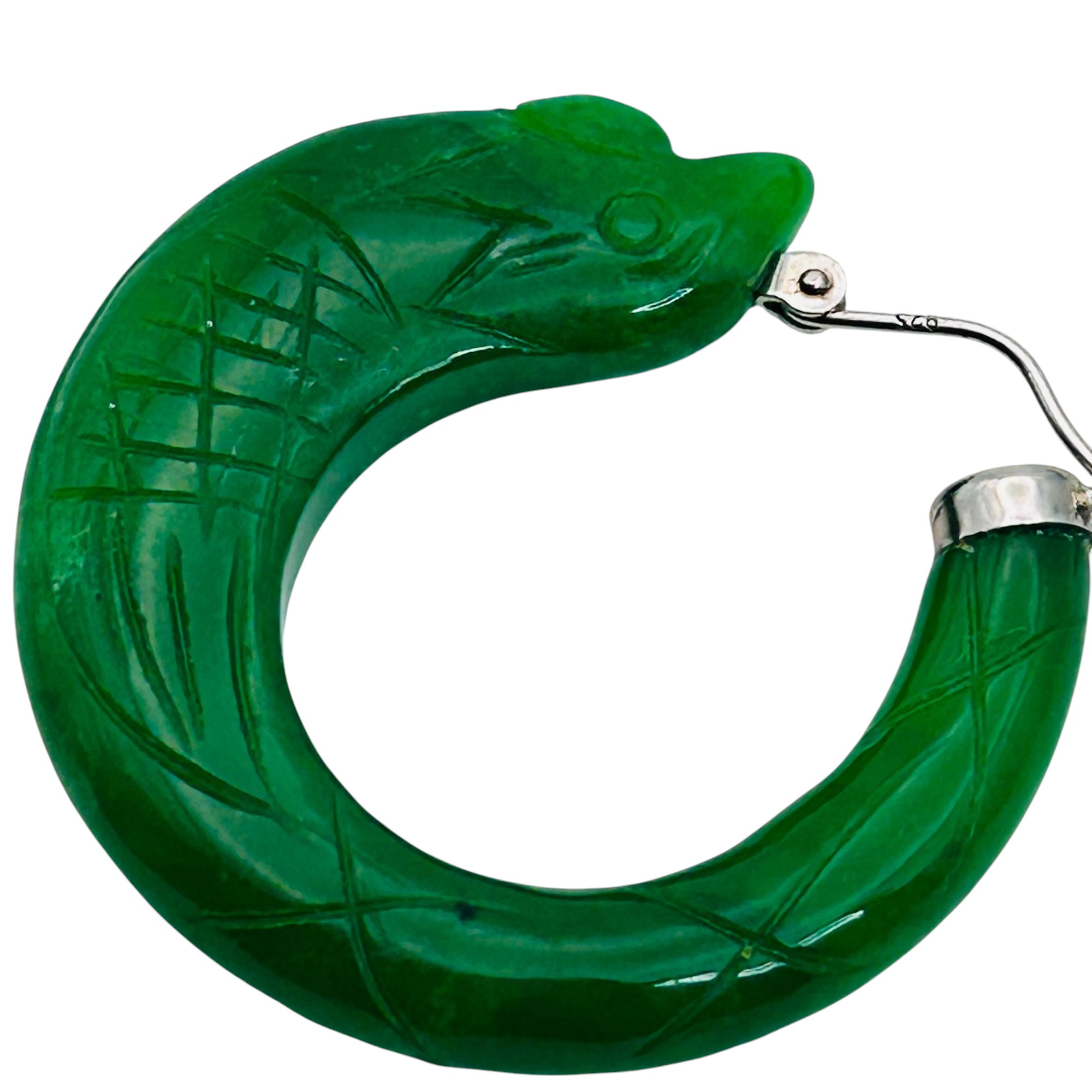 DJoy Jade Sterling carved fish hoop earrings 18.01 g