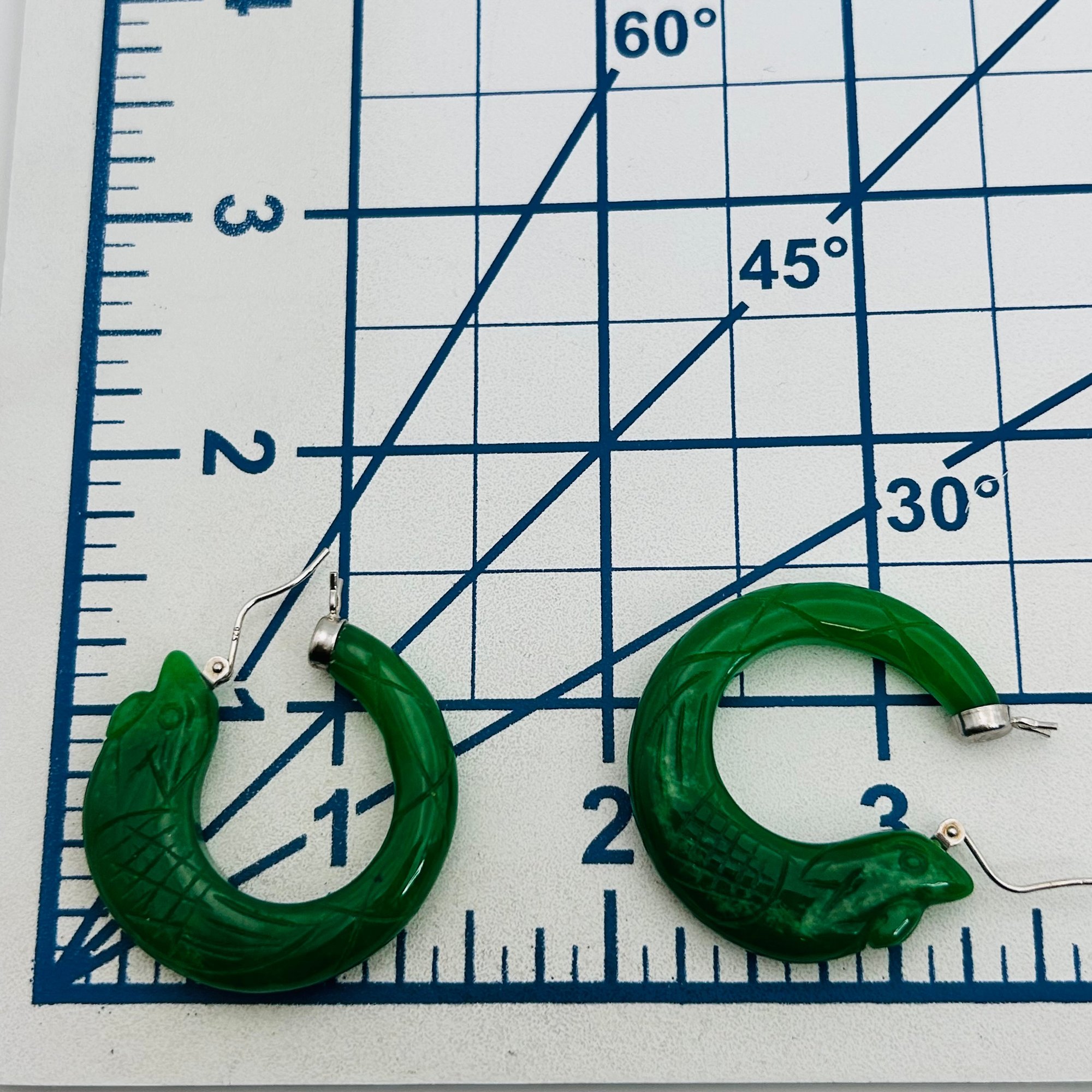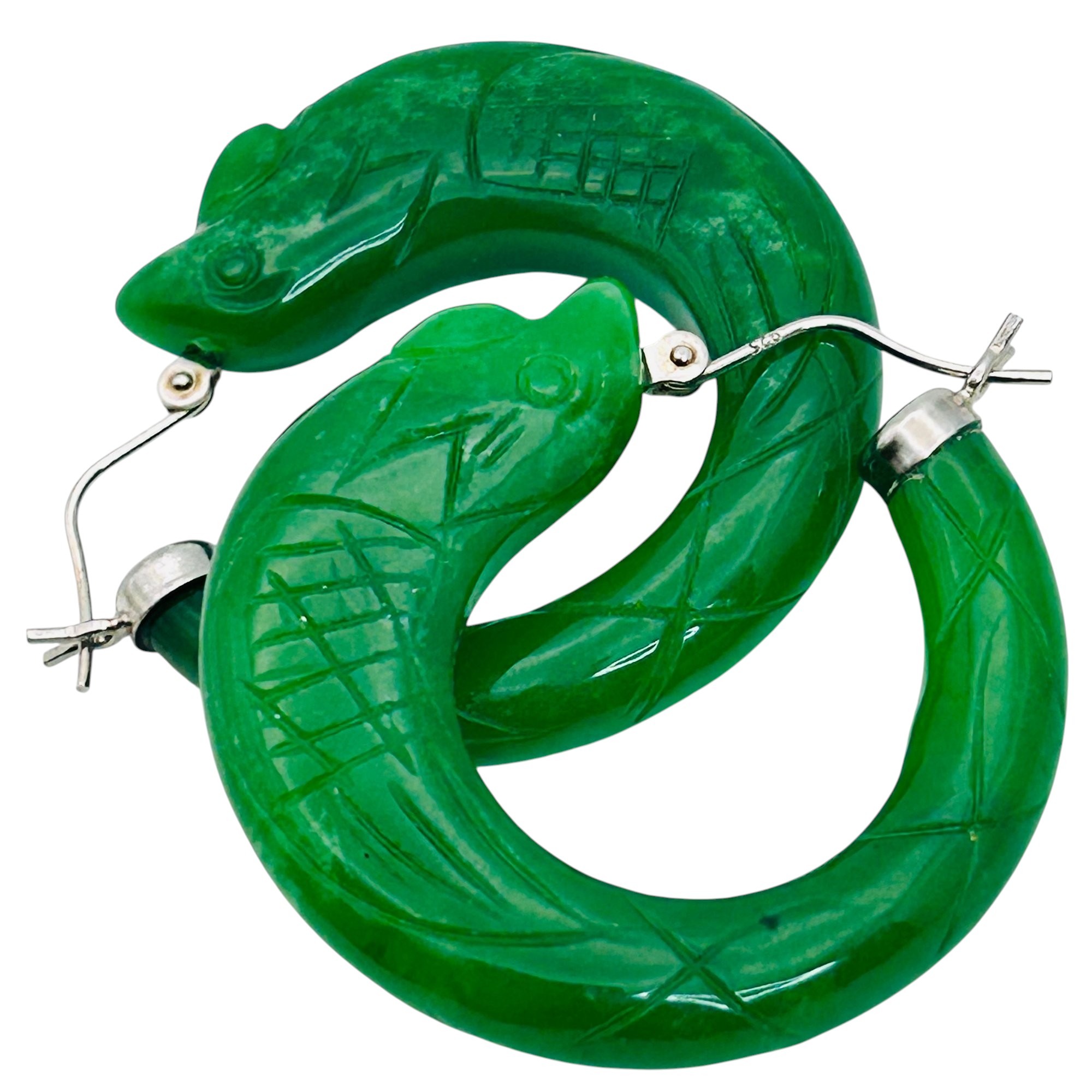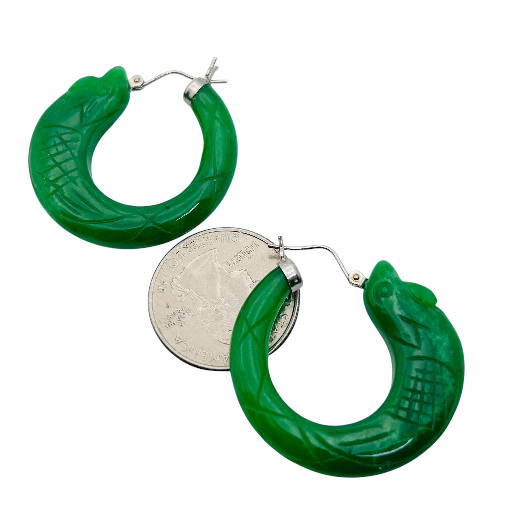 DJoy Jade Sterling carved fish hoop earrings 18.01 g
