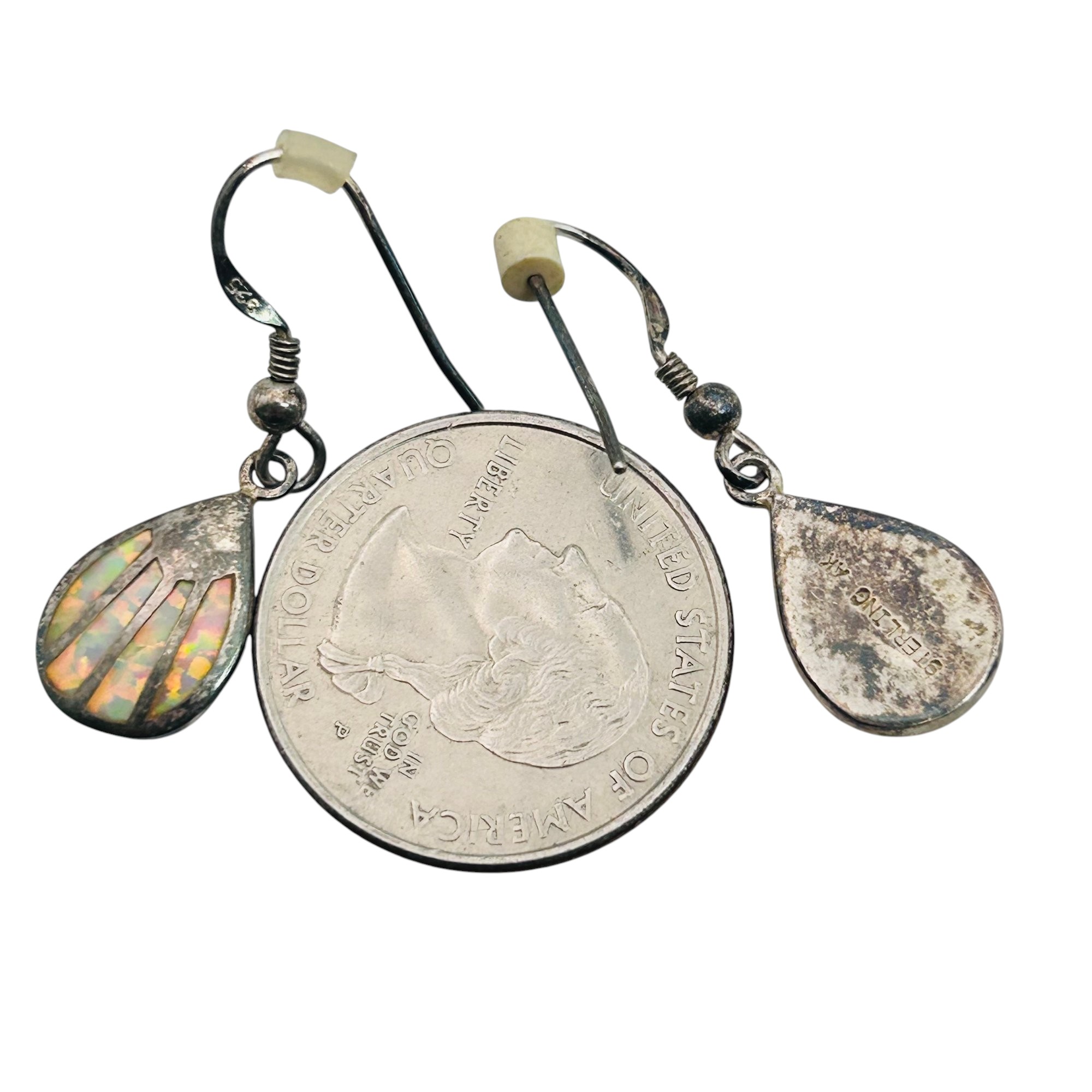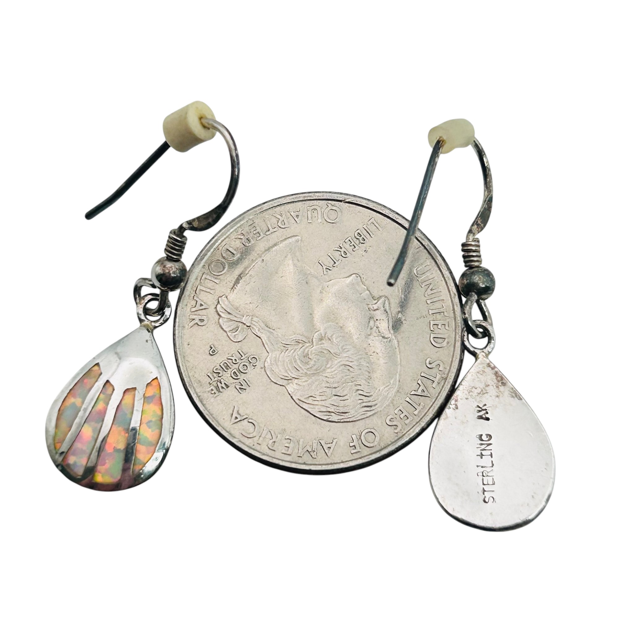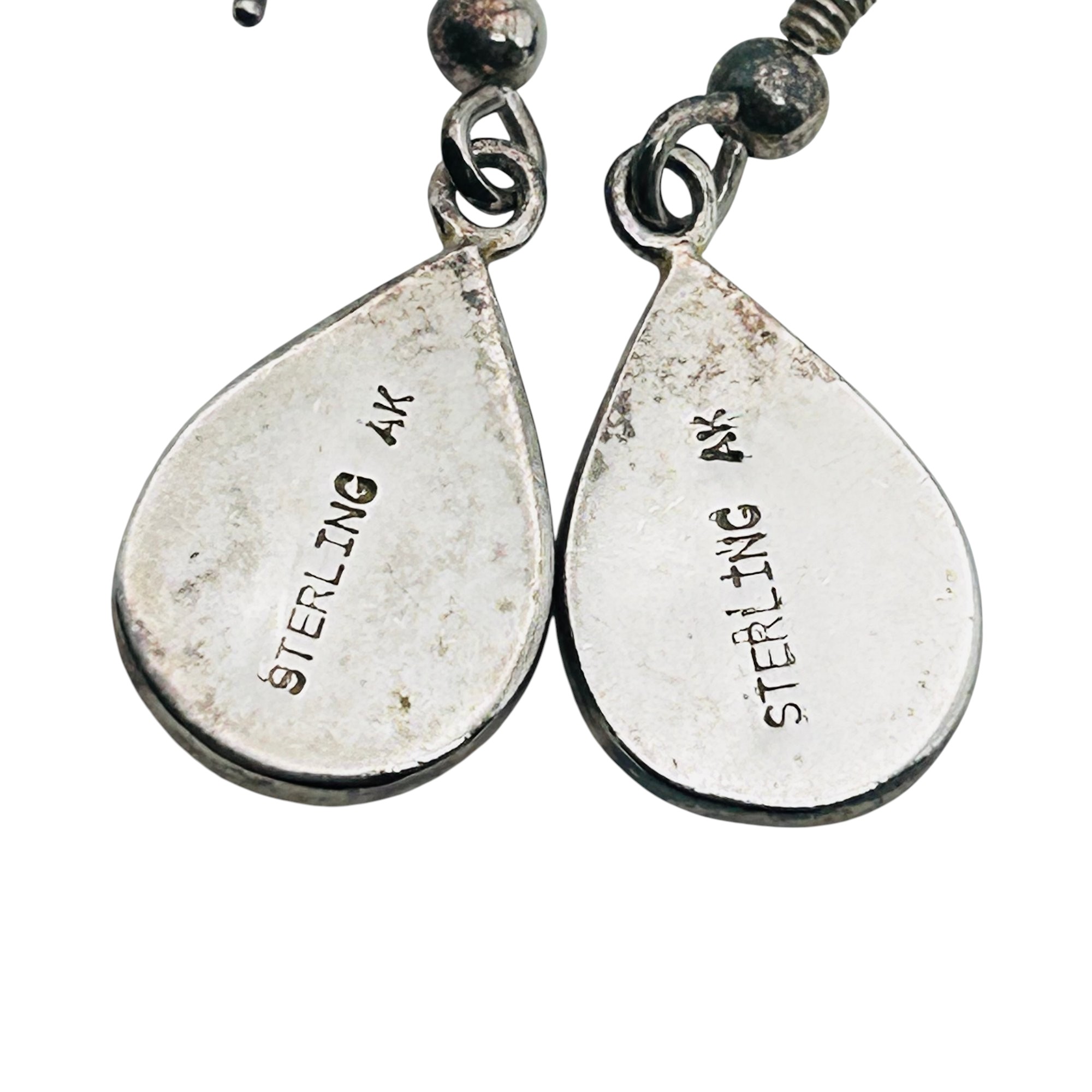 Navajo signed AK Opal STERLING DANGLE EARRINGS 4.51 G