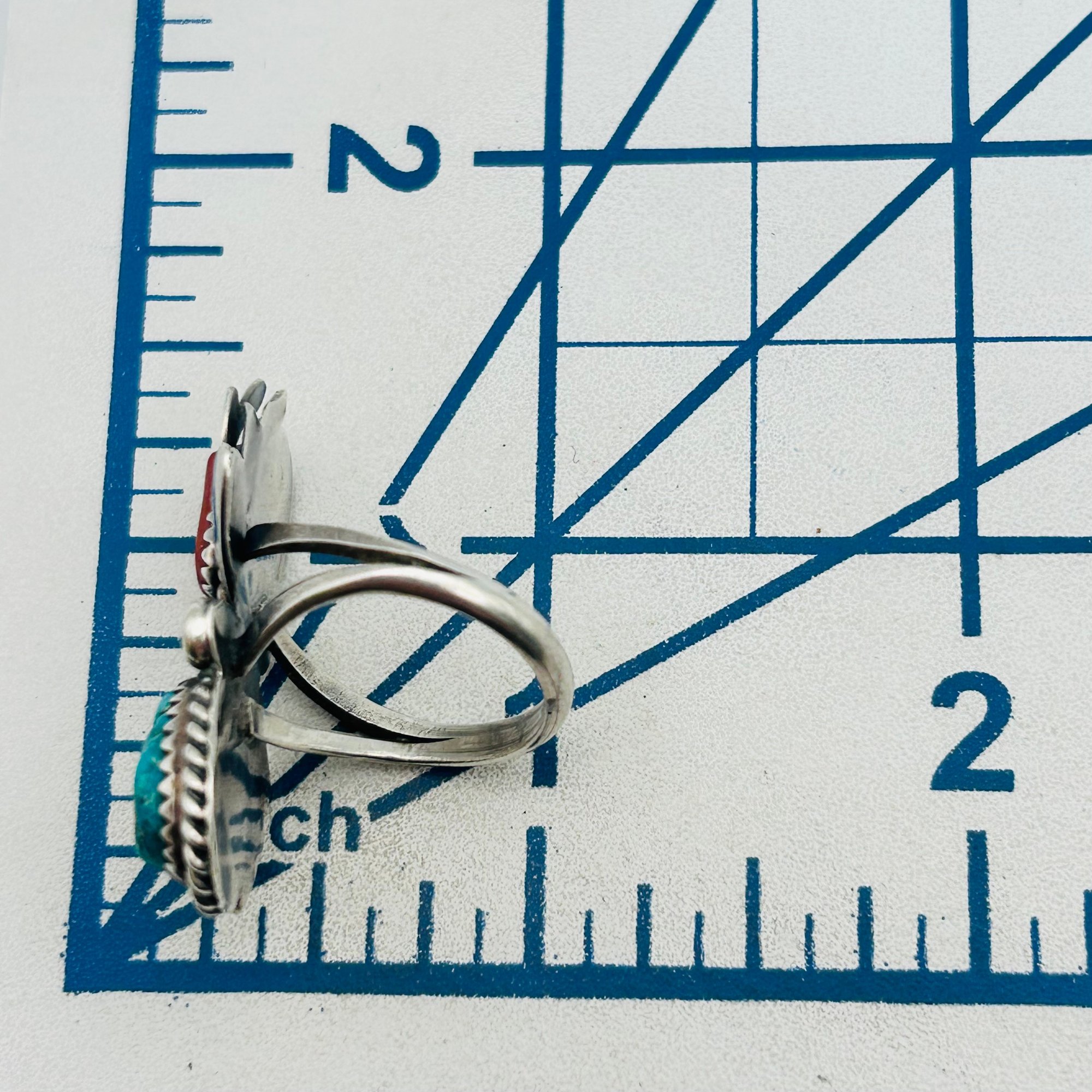 Navajo Sterling Turquoise Coral Ring Size 6, 6.04 G.