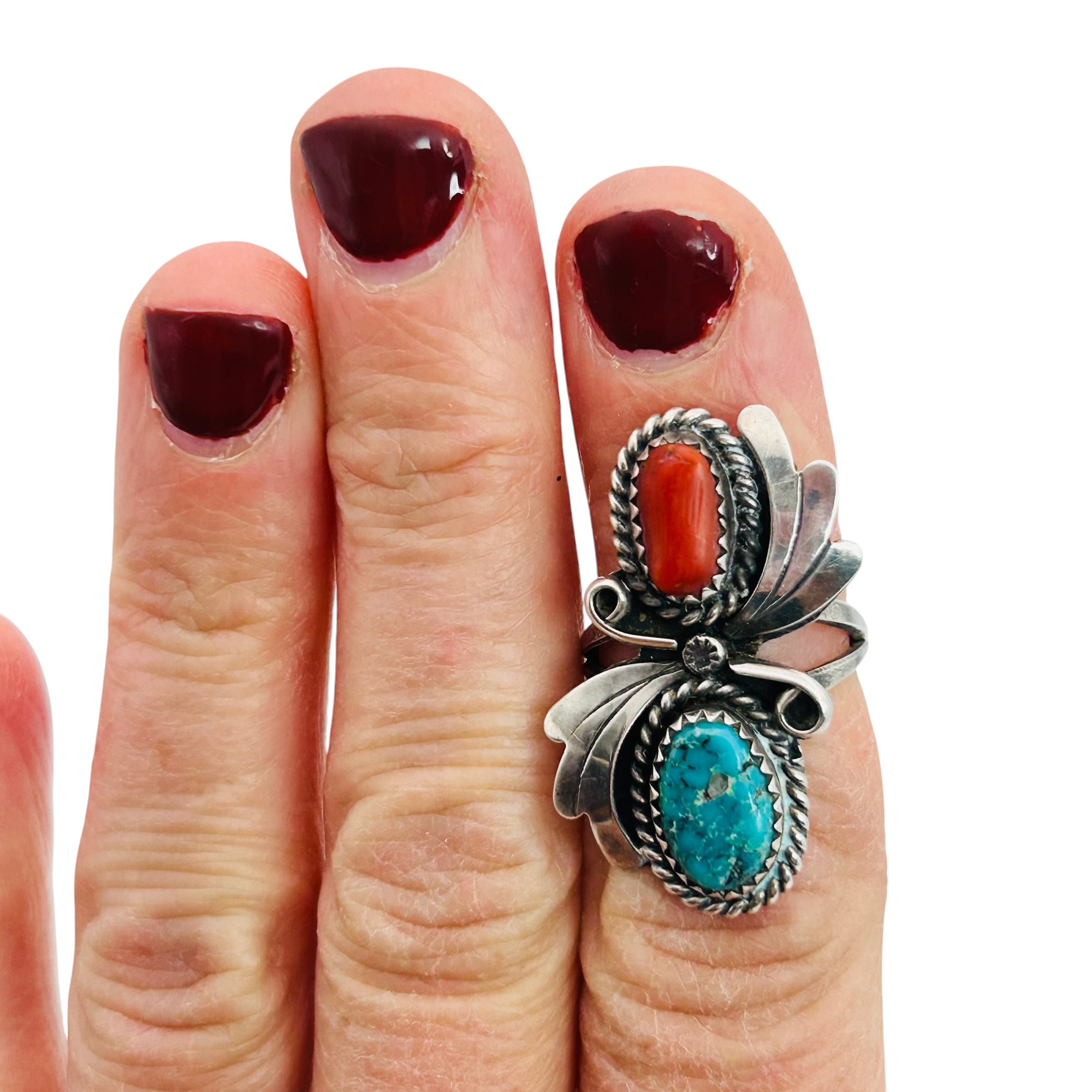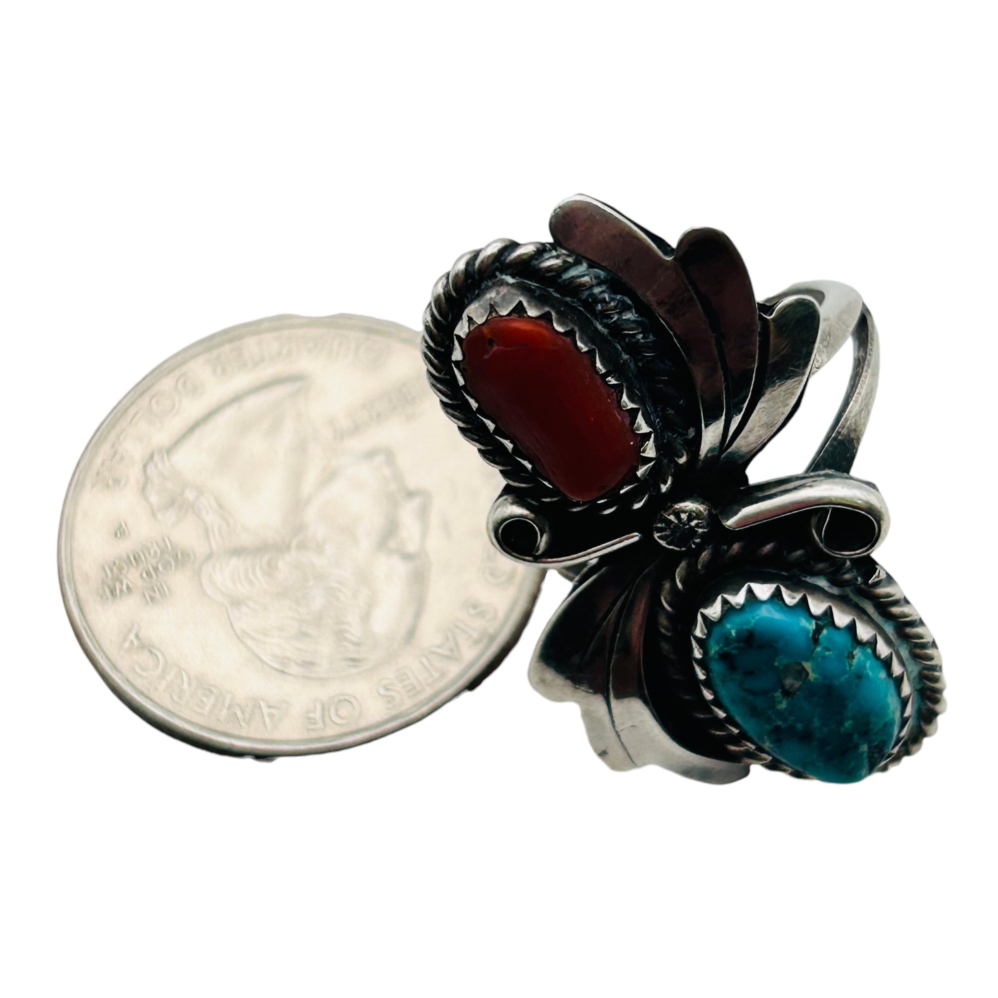 Navajo Sterling turquoise Coral ring size 6 6.04 g.