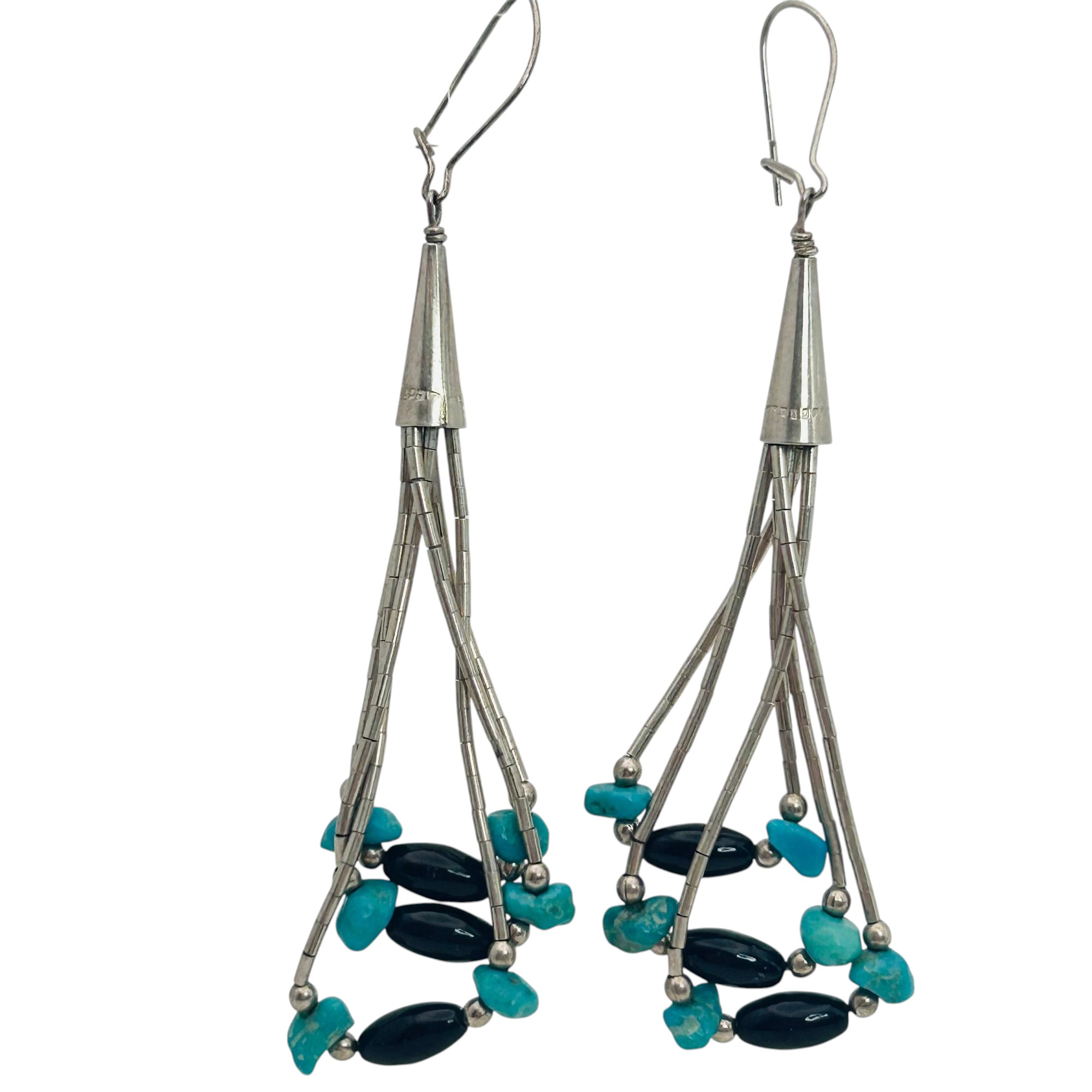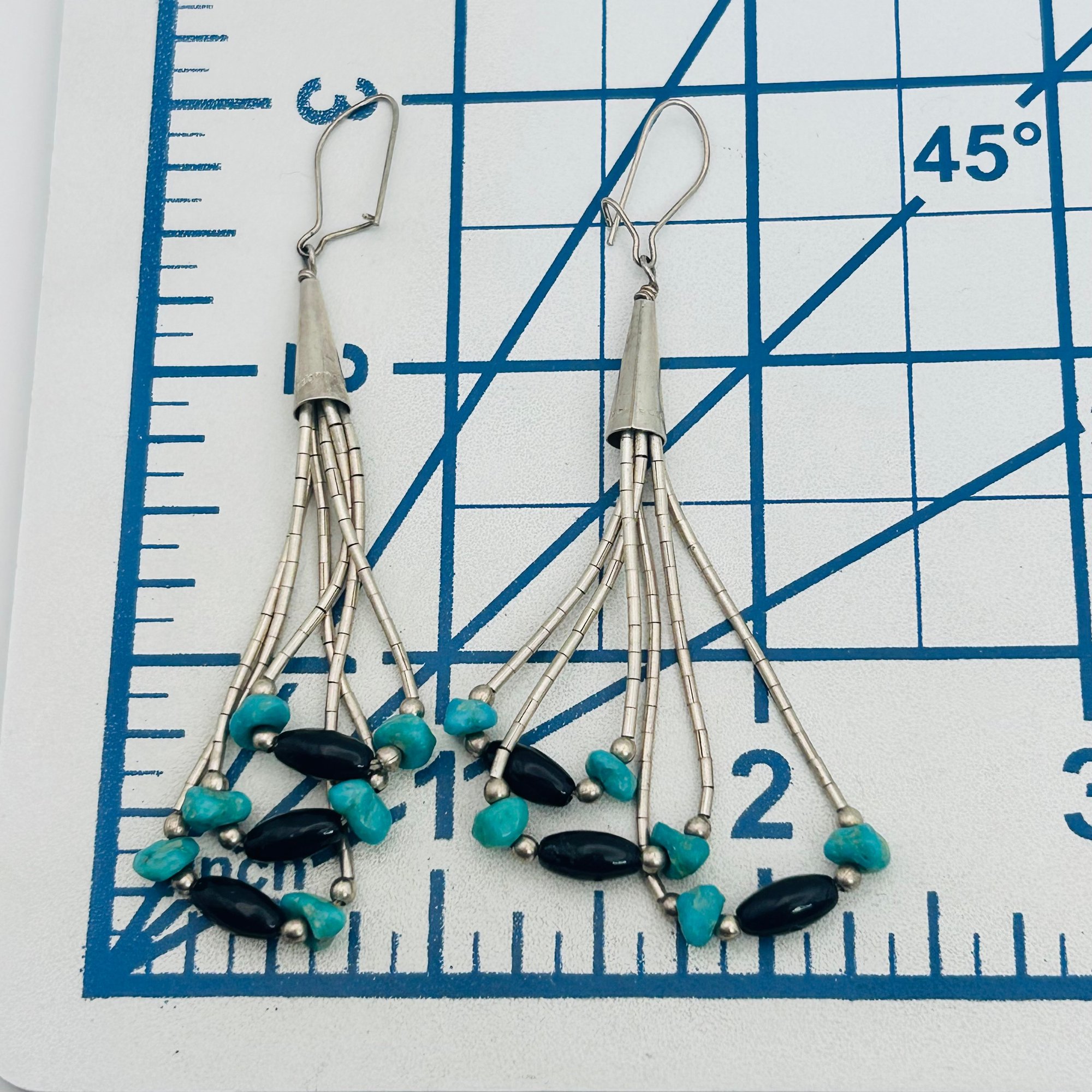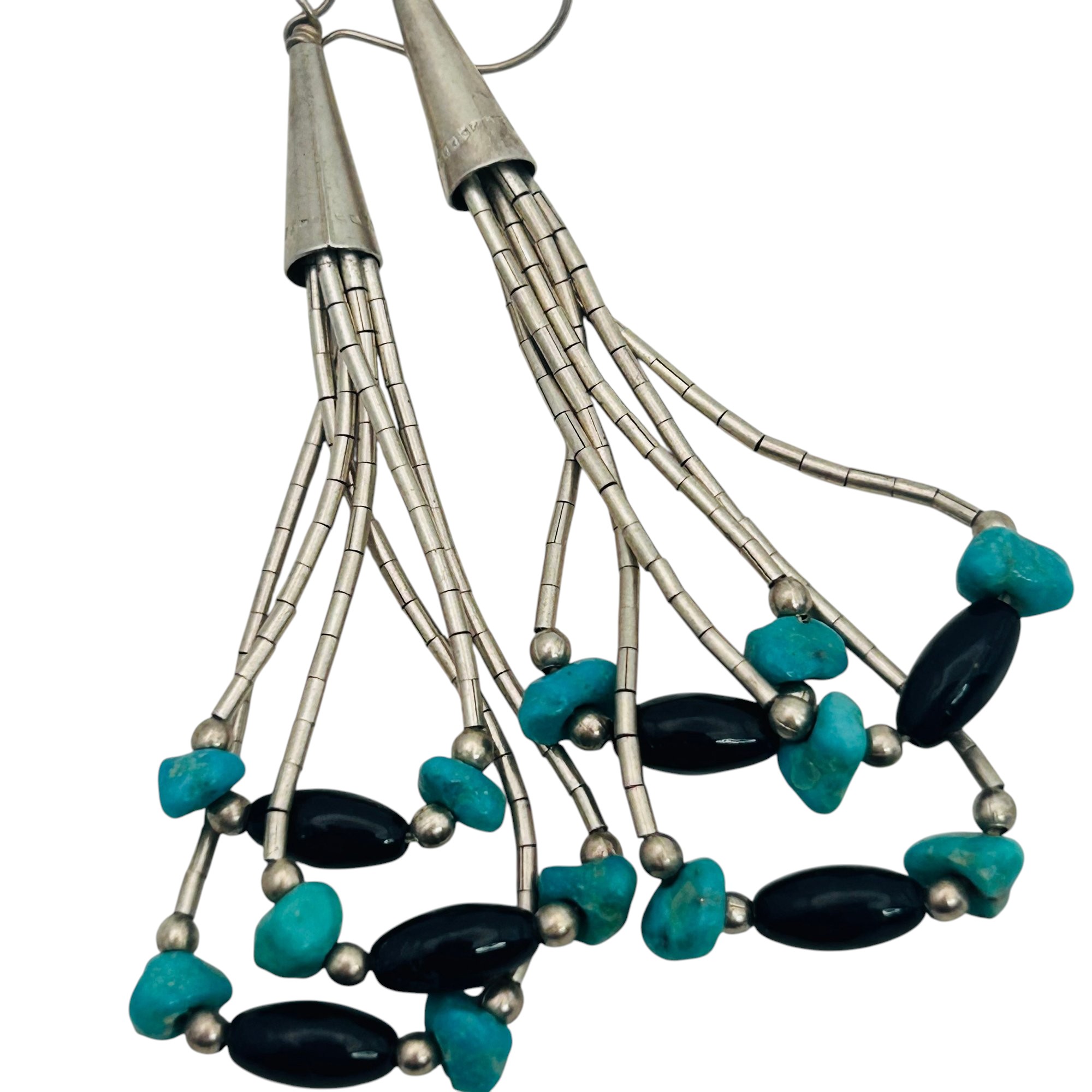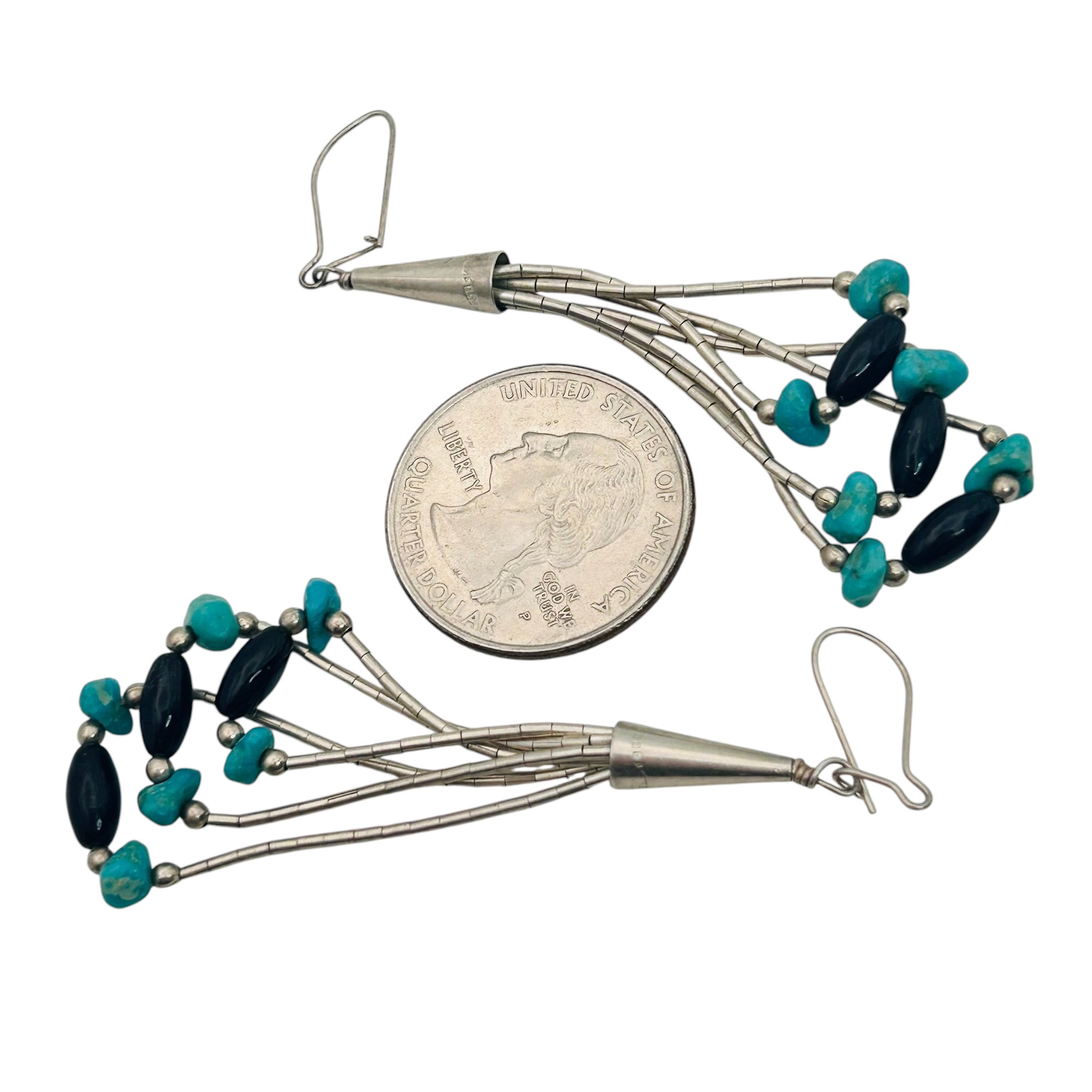 Native Sterling Turquoise Dangle Bead Earrings 5.33 G