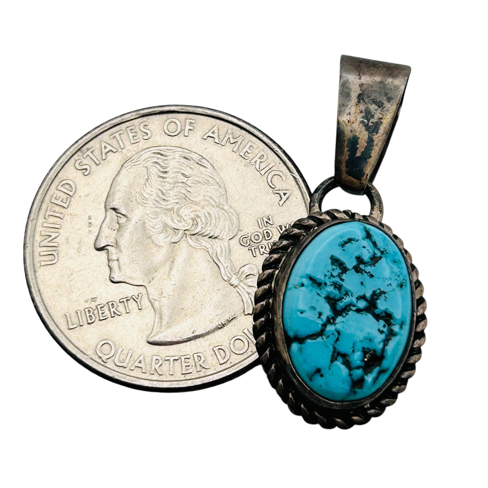 Navajo signed H turquoise Sterling pendant 2.95 g