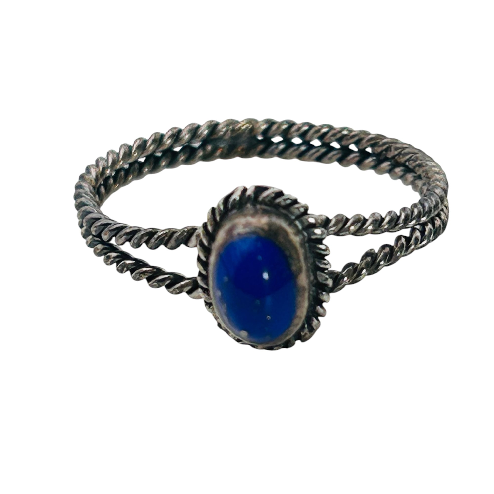 Southwest lapis lazuli Sterling ribbed band ring size 6 1.48