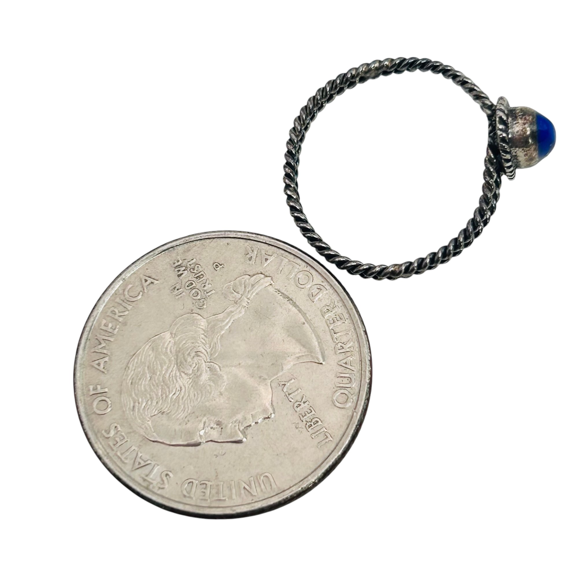 Southwest Lapis lazuli Sterling Ribbed Band Ring Size 6, 1.48