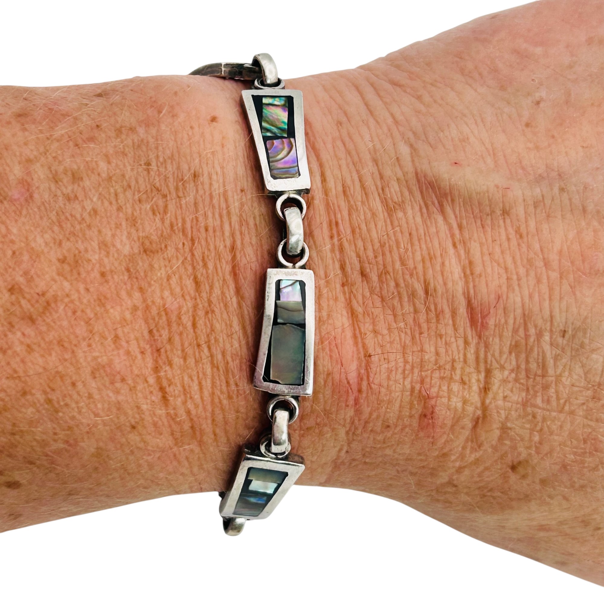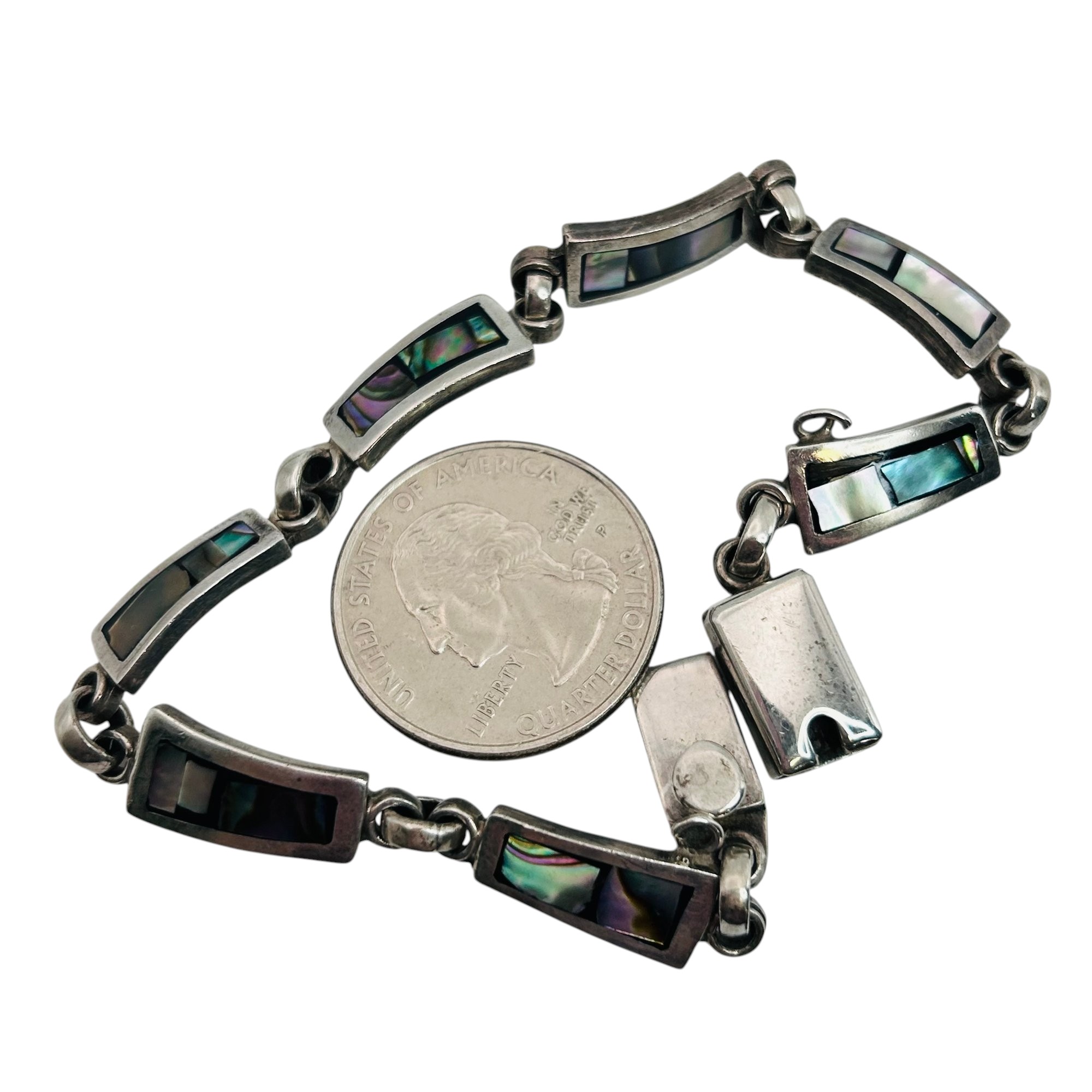 Taxco TU-13 Mexico 970 silver Abalone linked bracelet 19.66 g