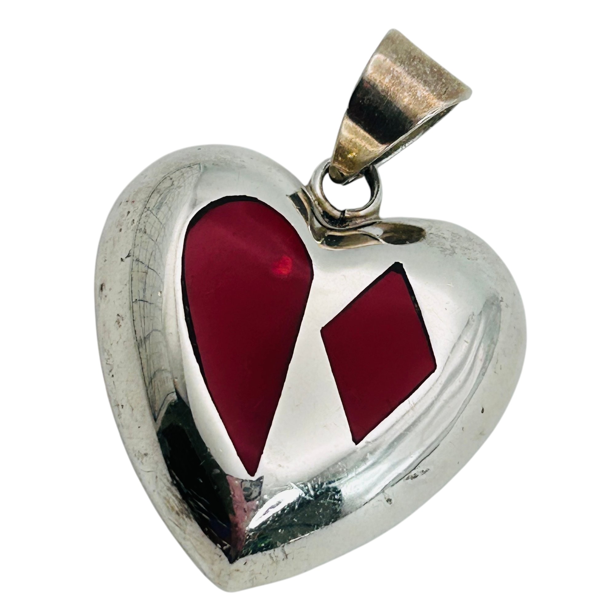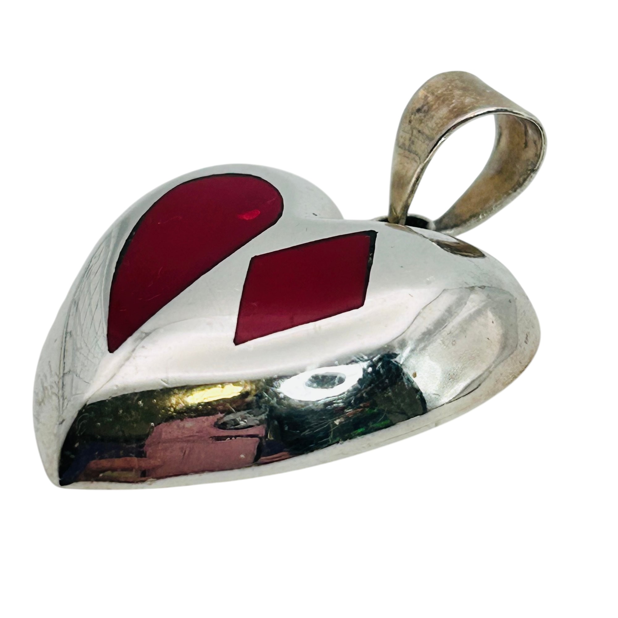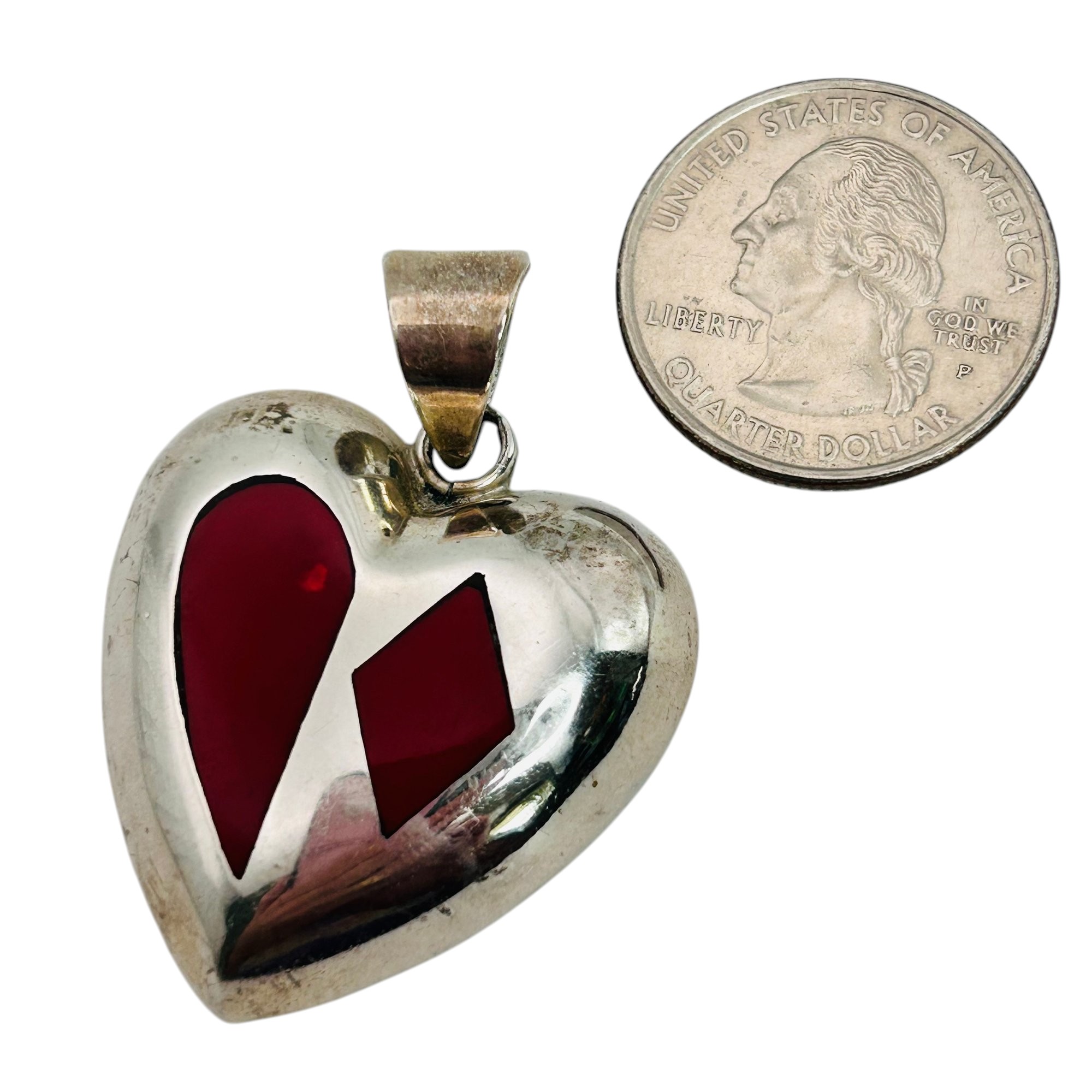 Taxco TM-86 Mexico Red Jasper Sterling heart pendant 15.17 g