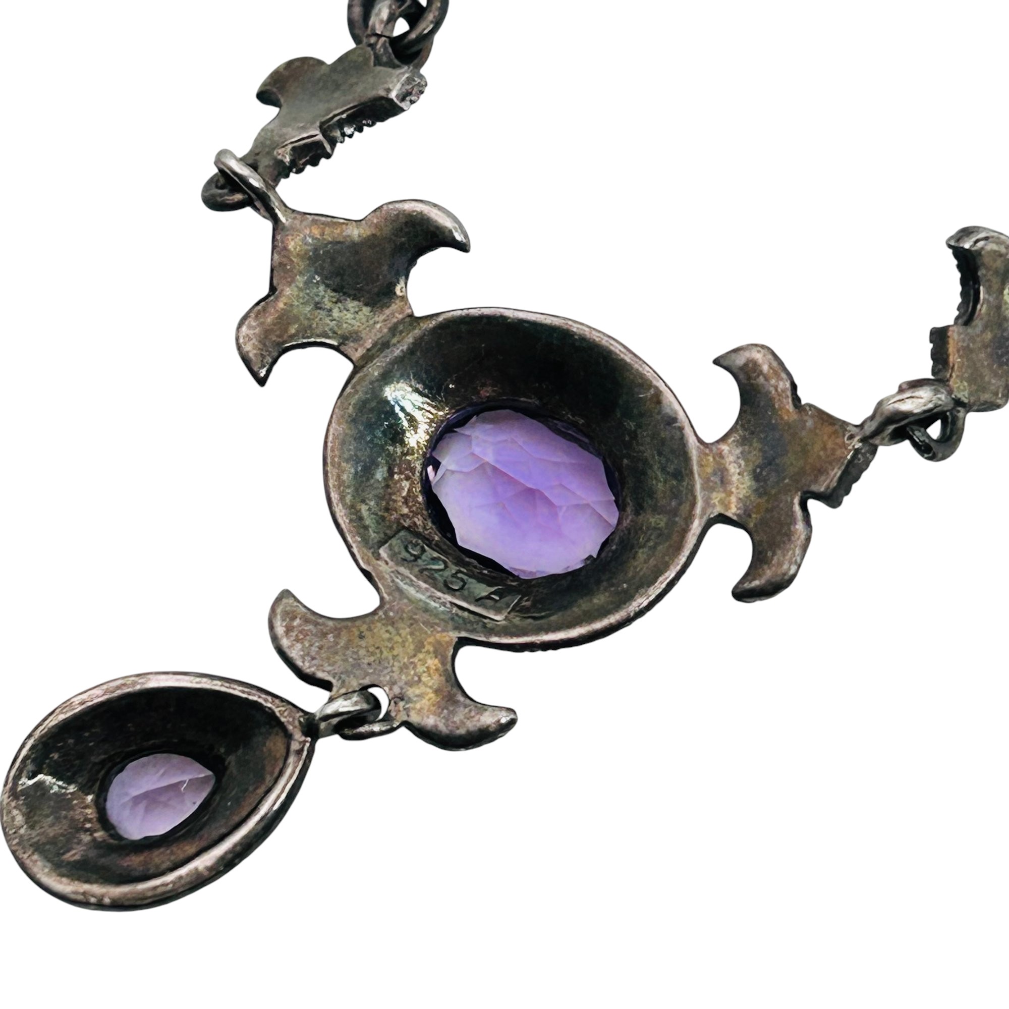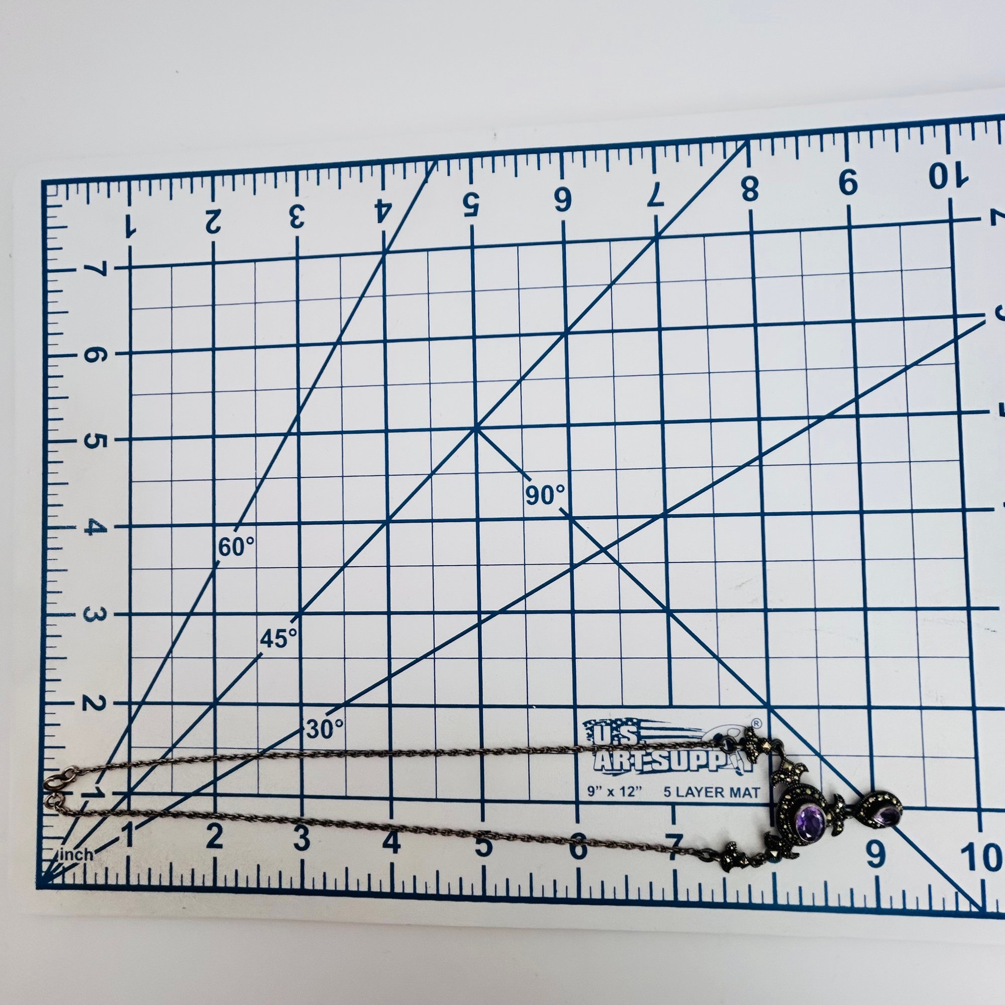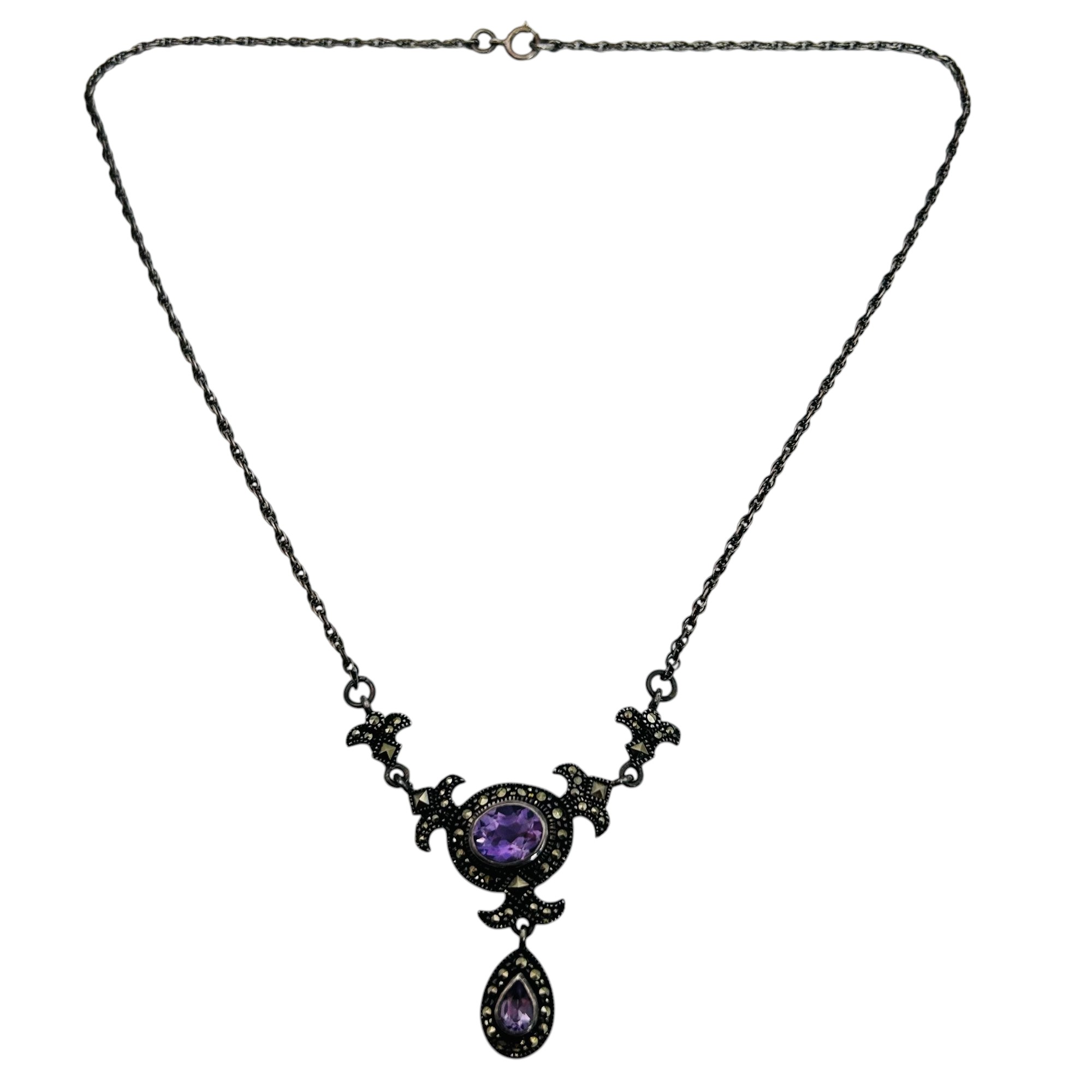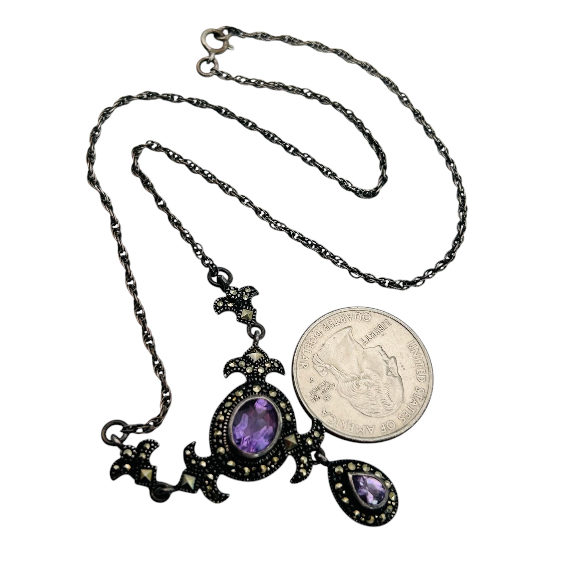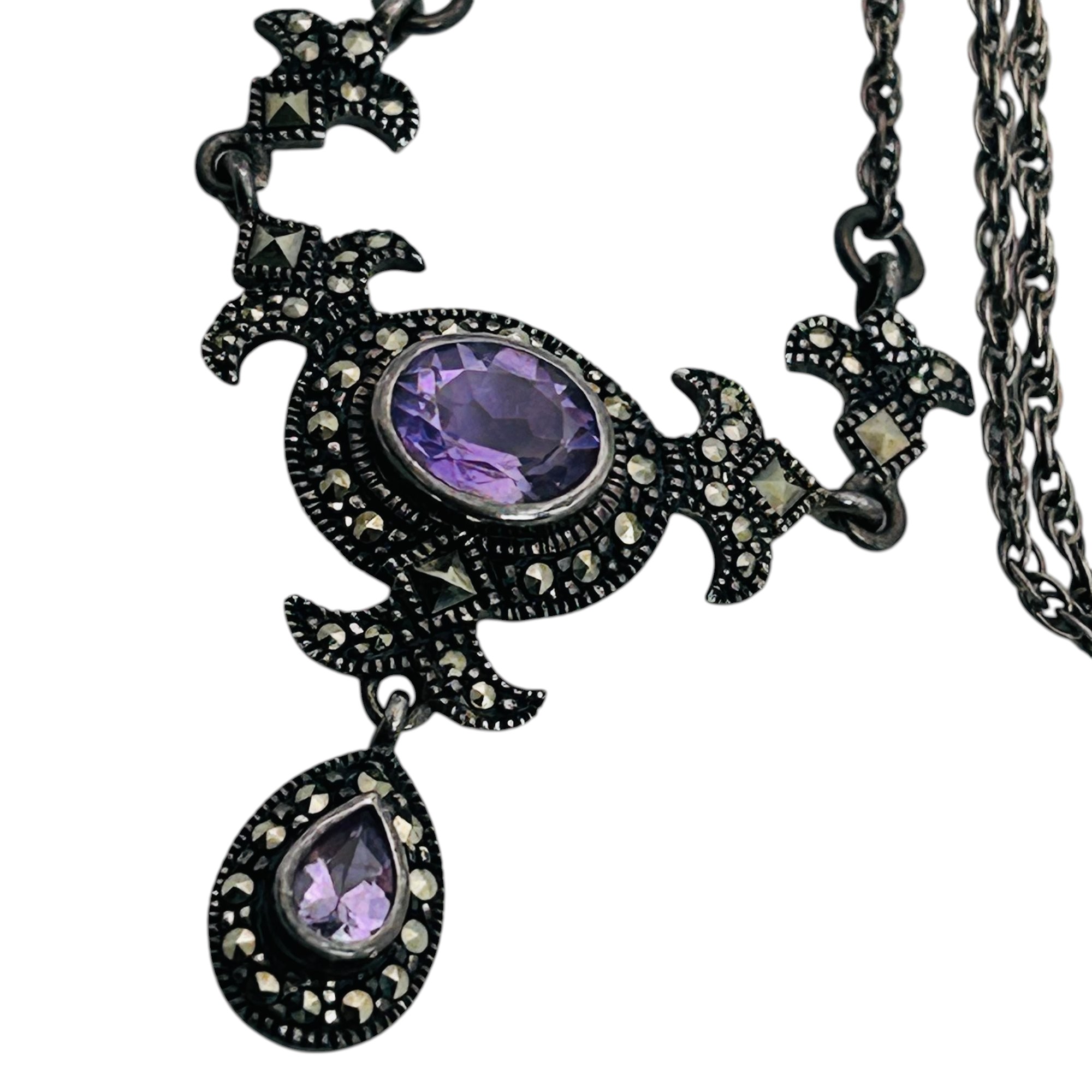 Amethyst marcasite sterling cable chain necklace 7.85 g