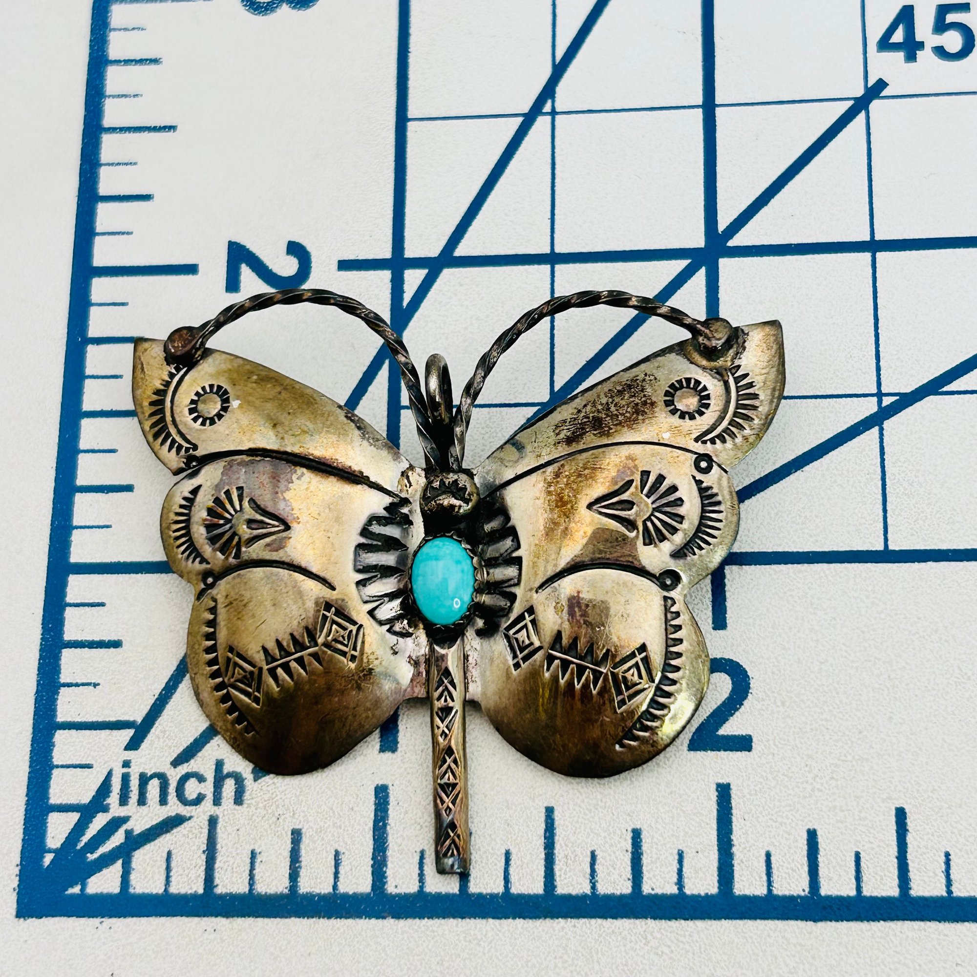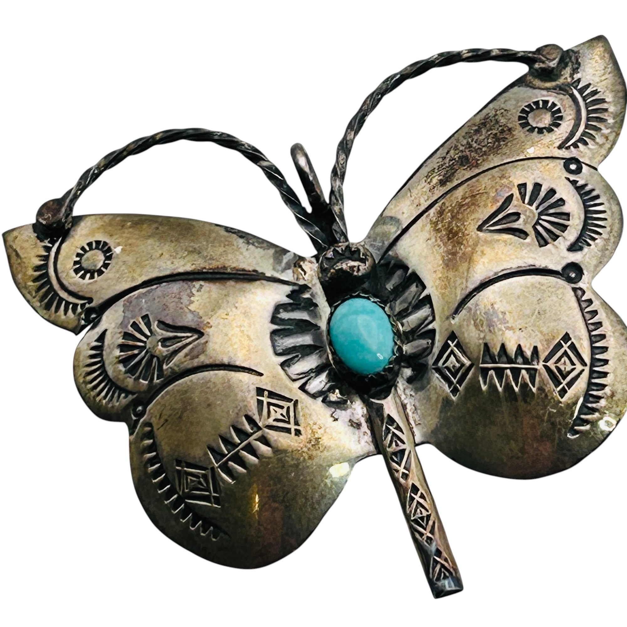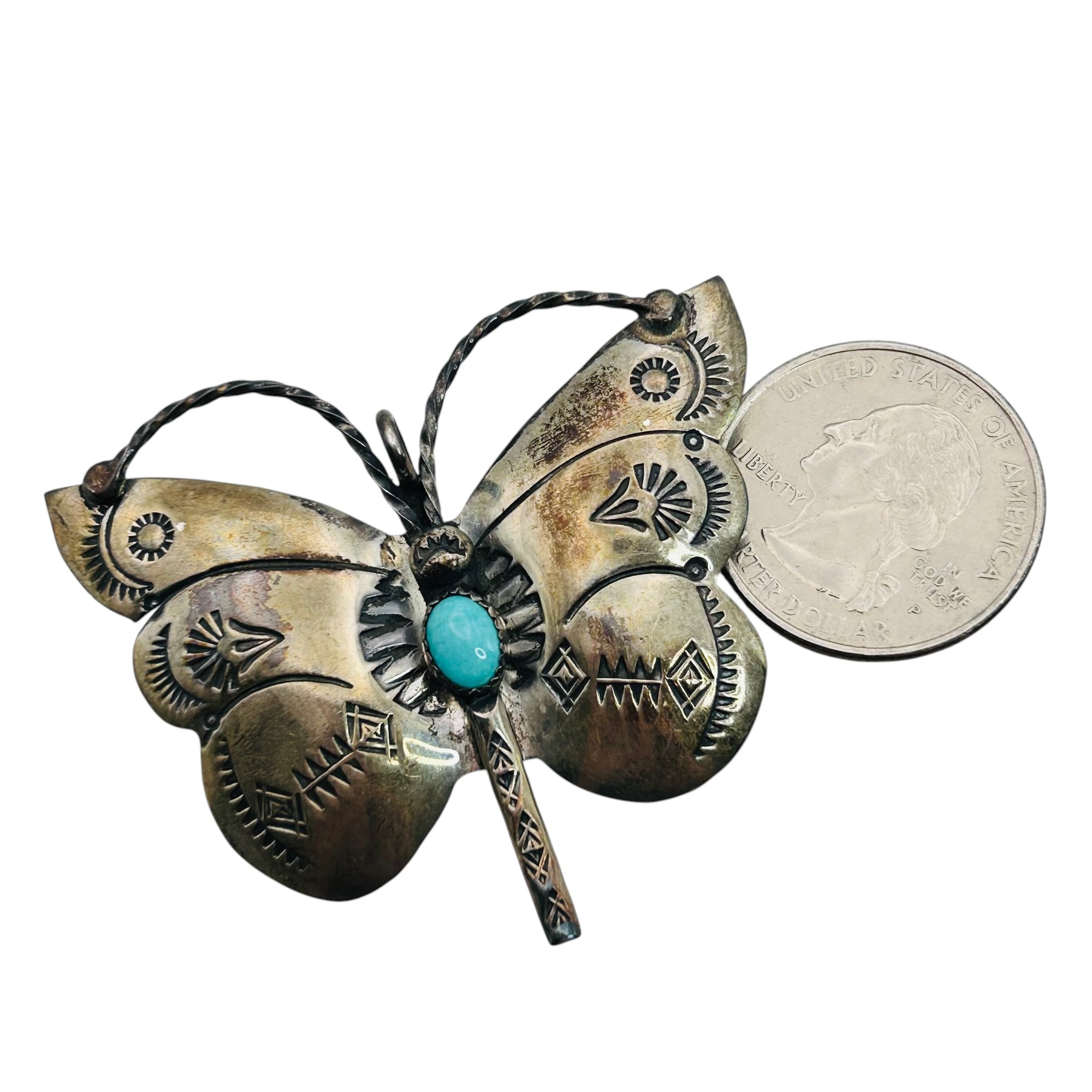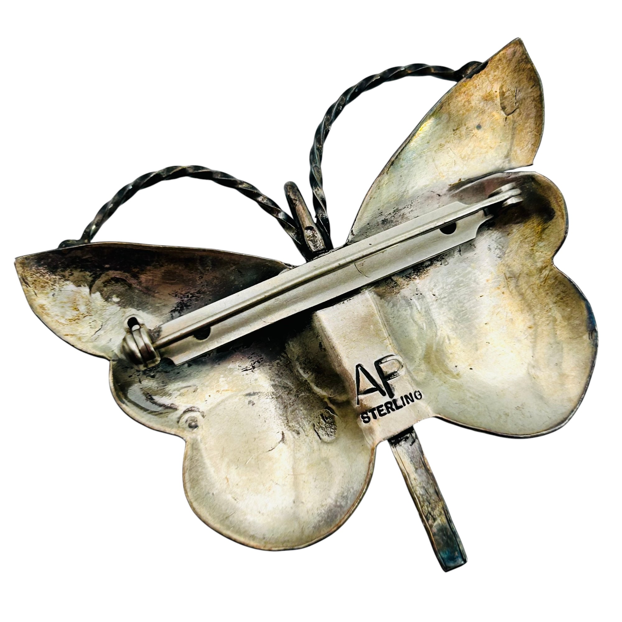 Navajo Signed AP Sterling Butterfly Brooch 10 G