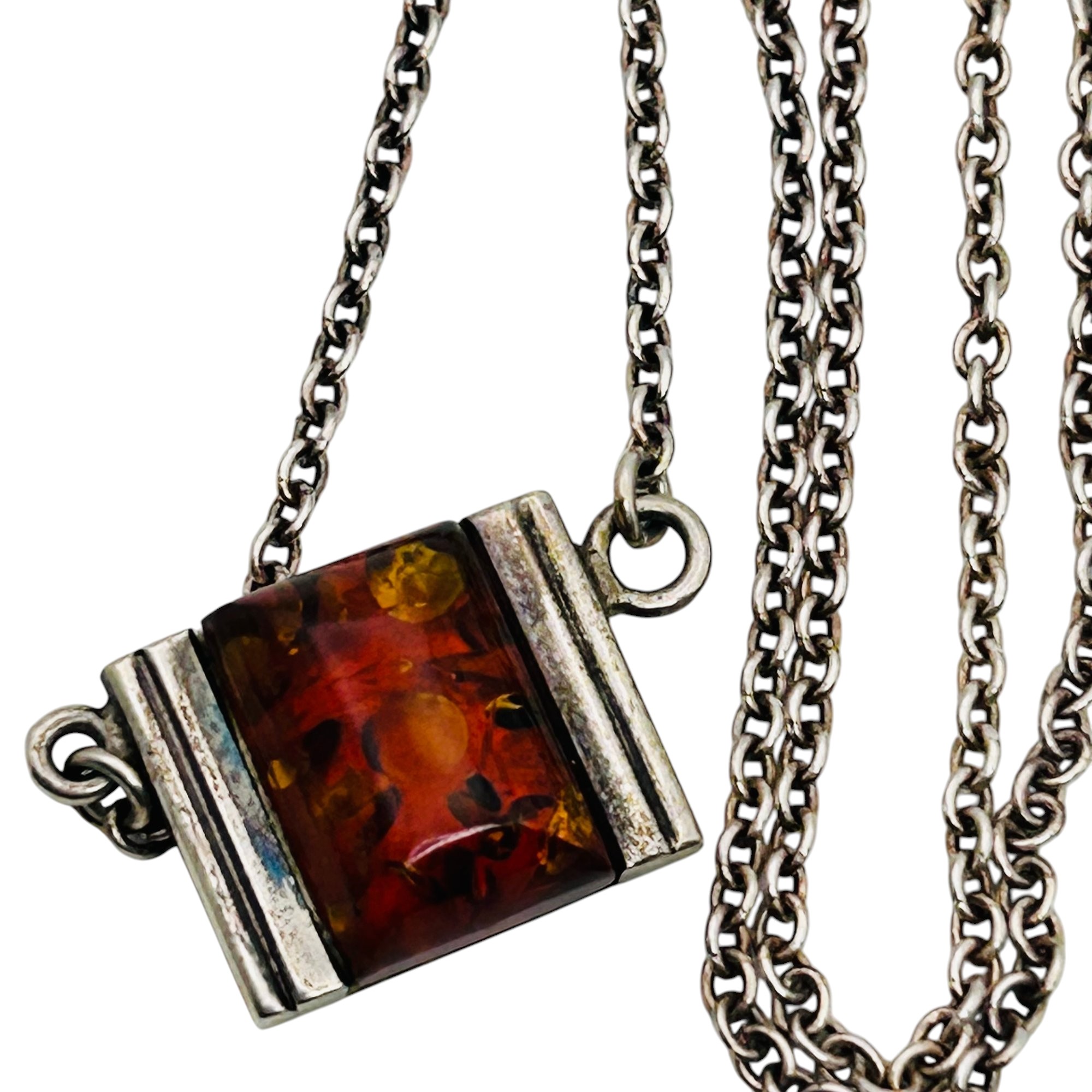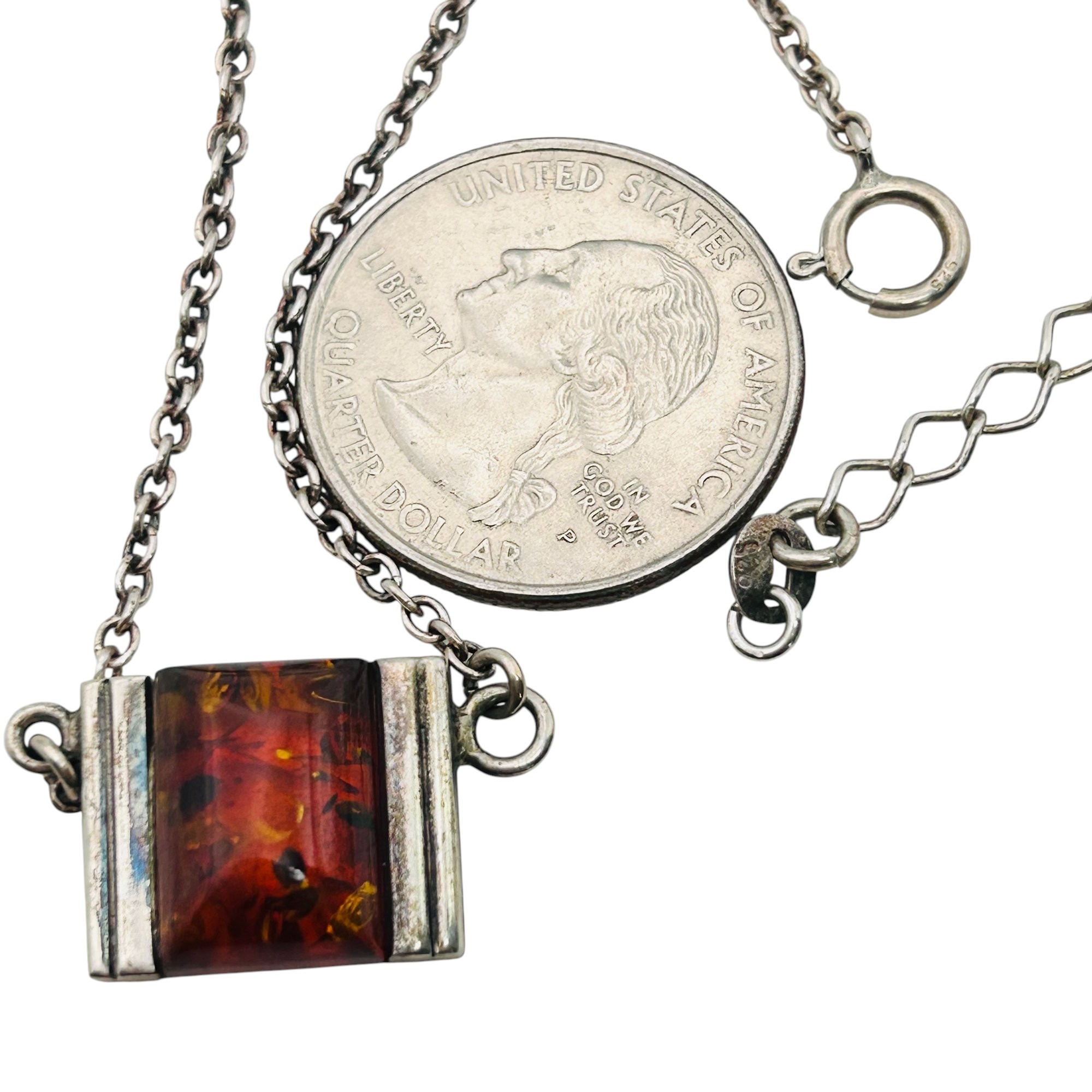 Amber Sterling pendant sterling chain necklace adjustable 8g