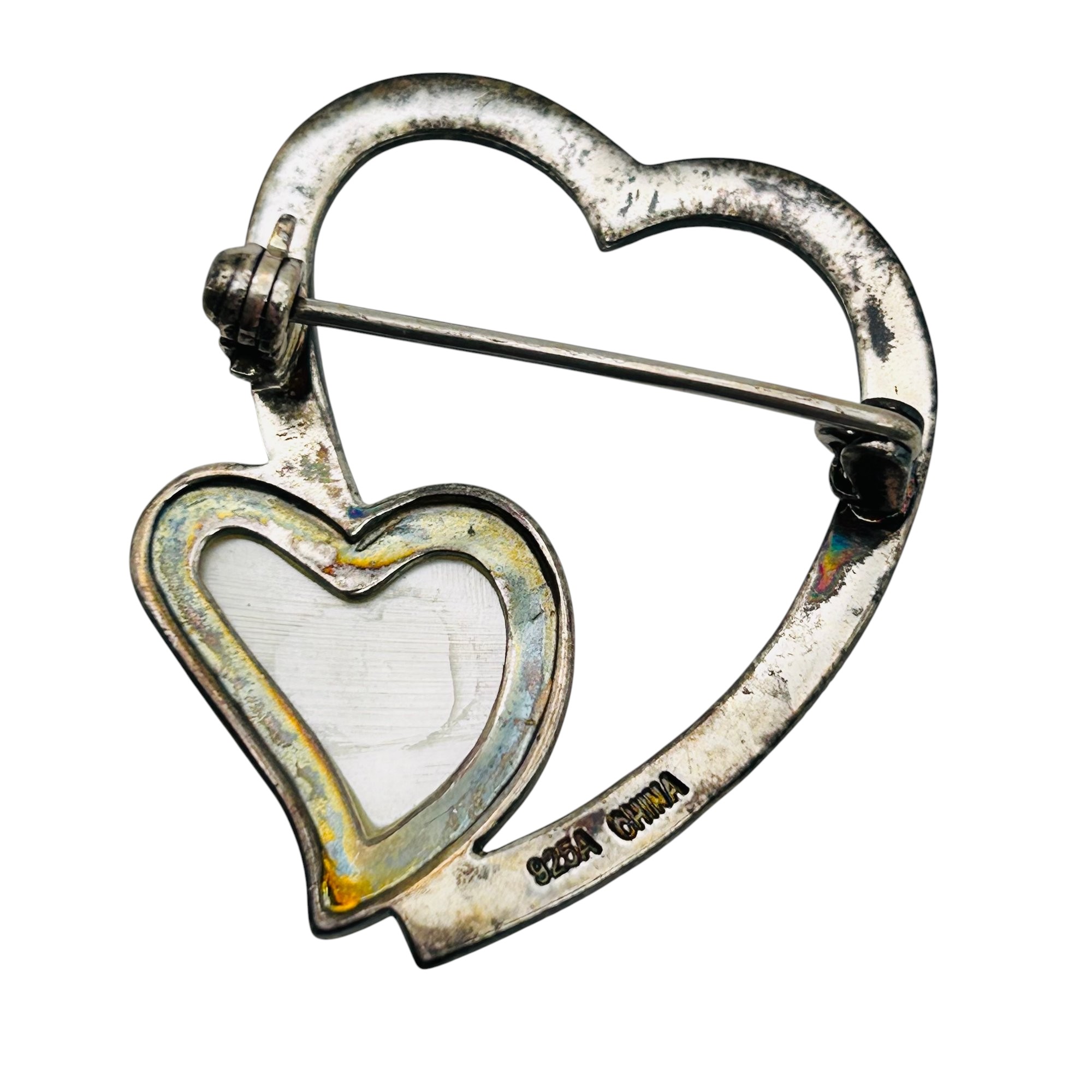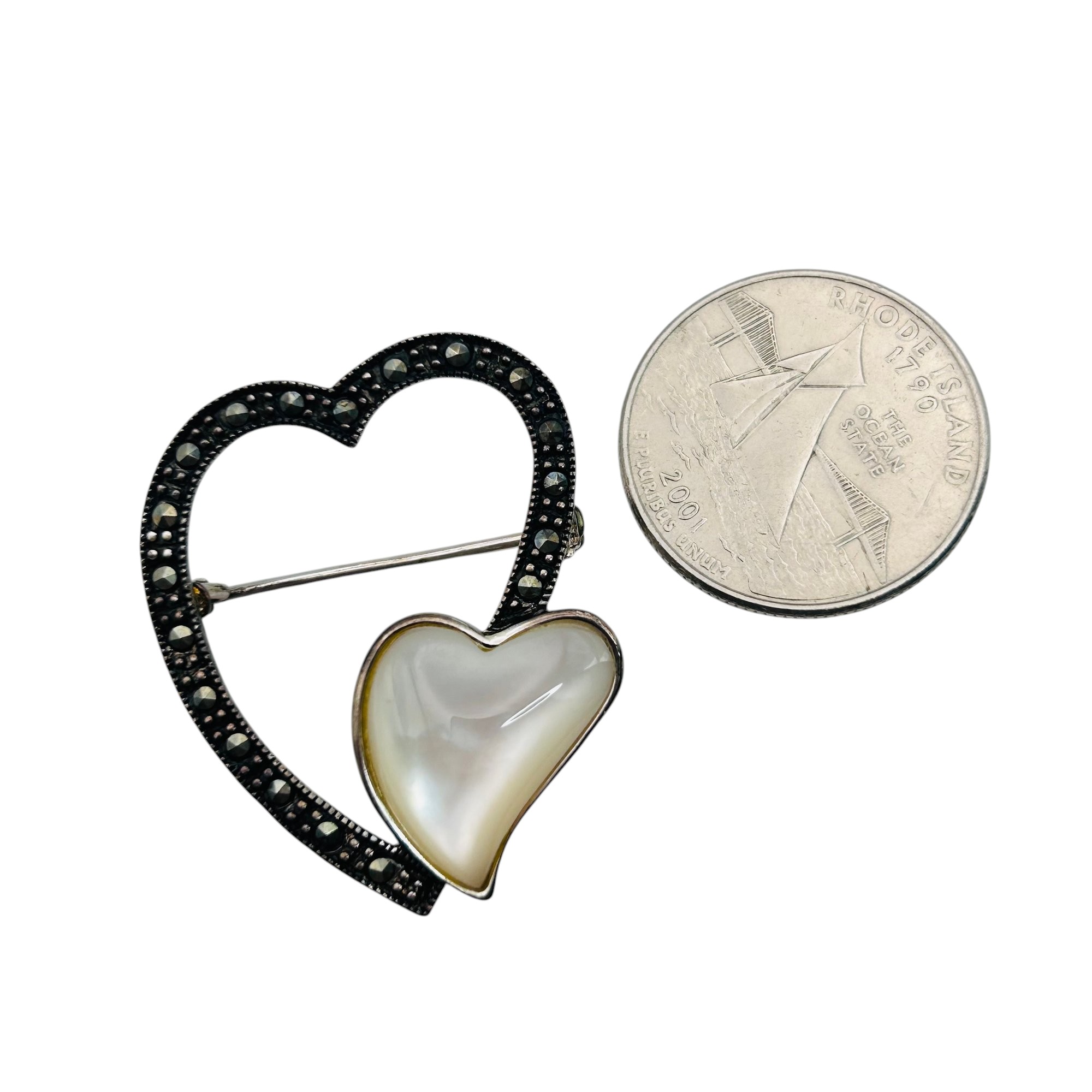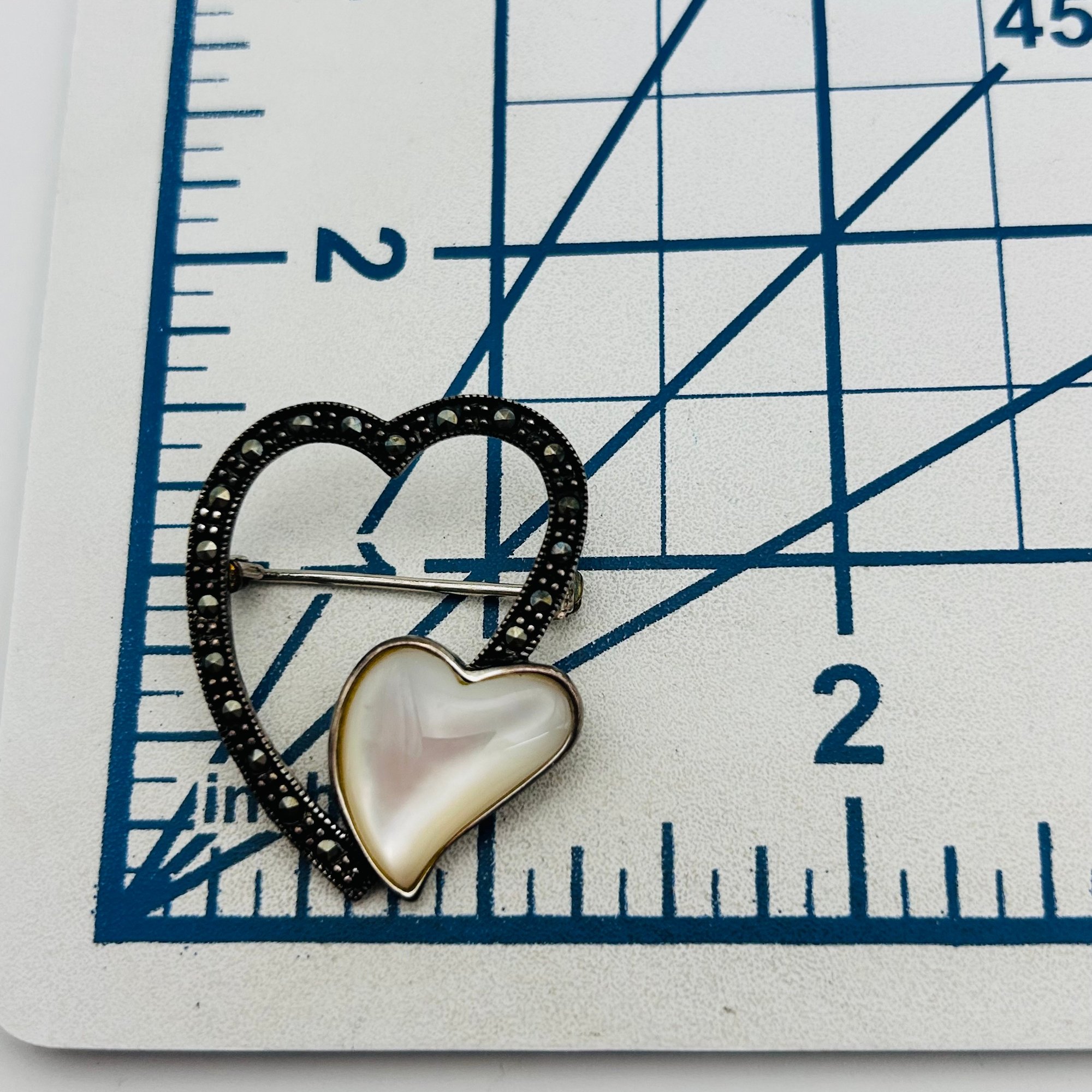 MARCASITE mother of Pearl Sterling heart brooch 5.26