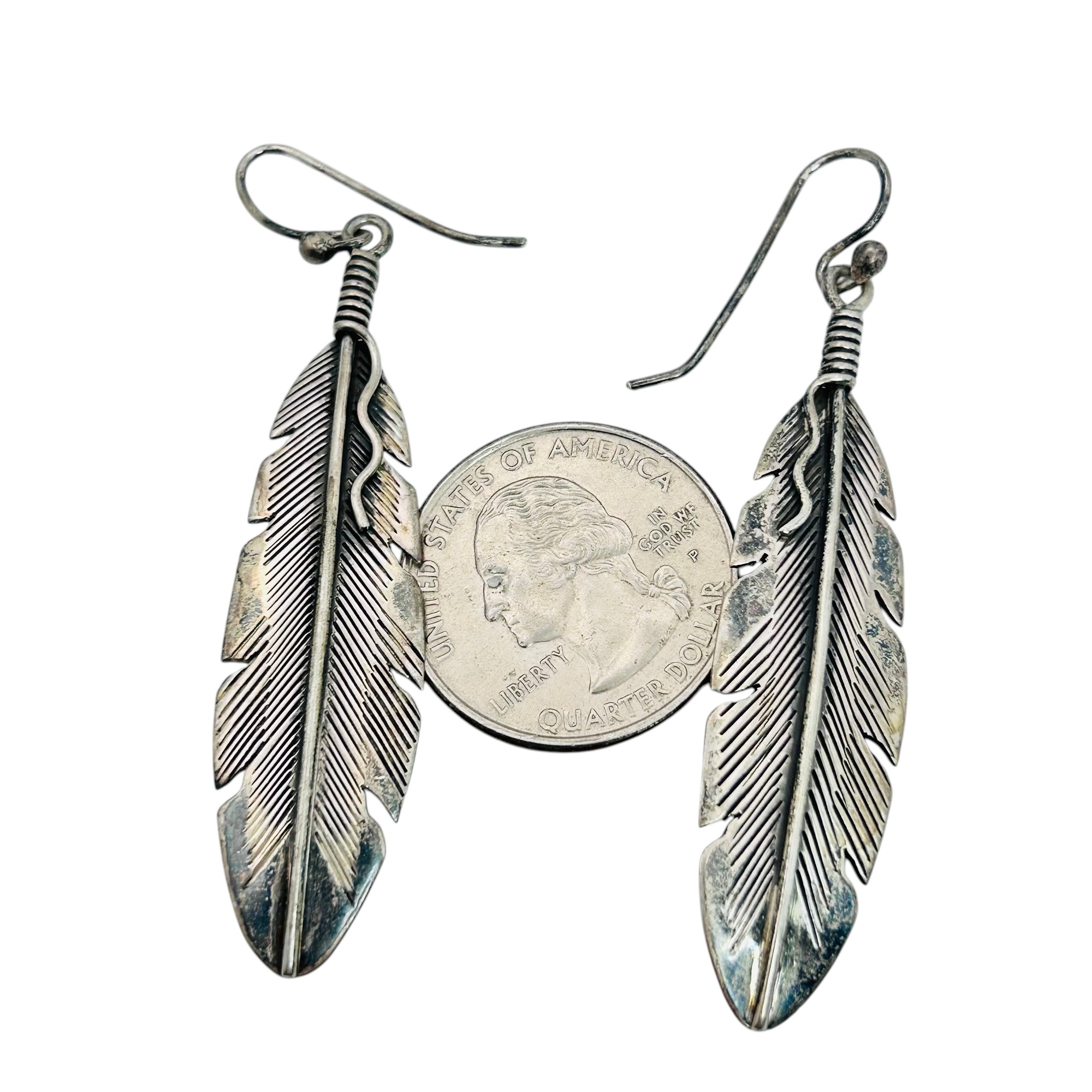 ELGIN TOM Sterling Feather Dangle Earrings 9.48 G