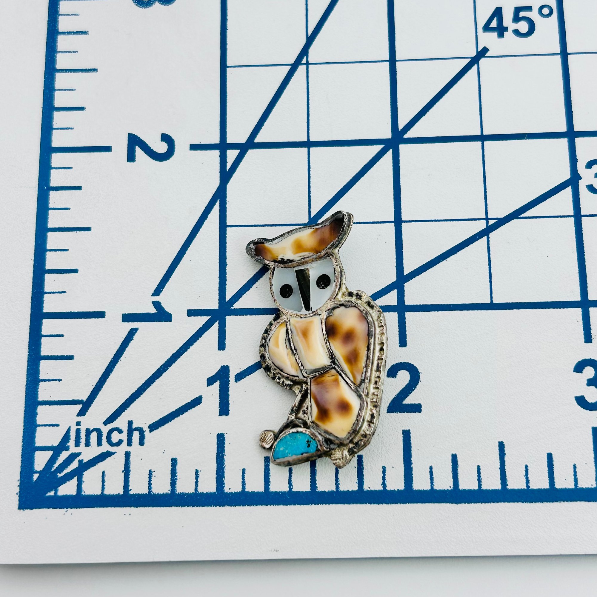 Zuni Navajo Sterling Vintage Inlay Stone Owl Brooch 4.92 G