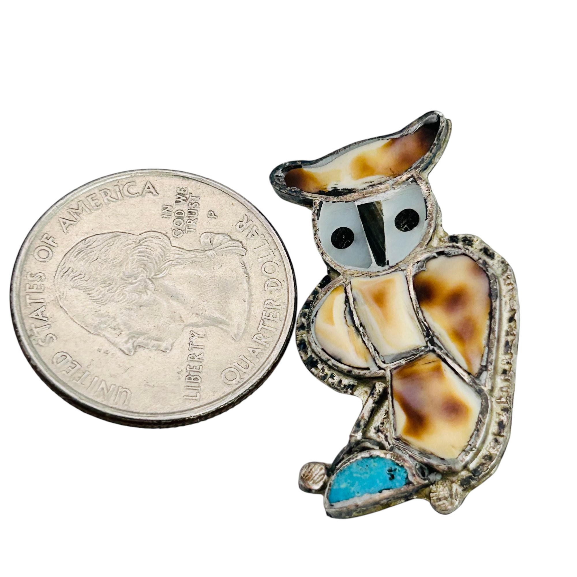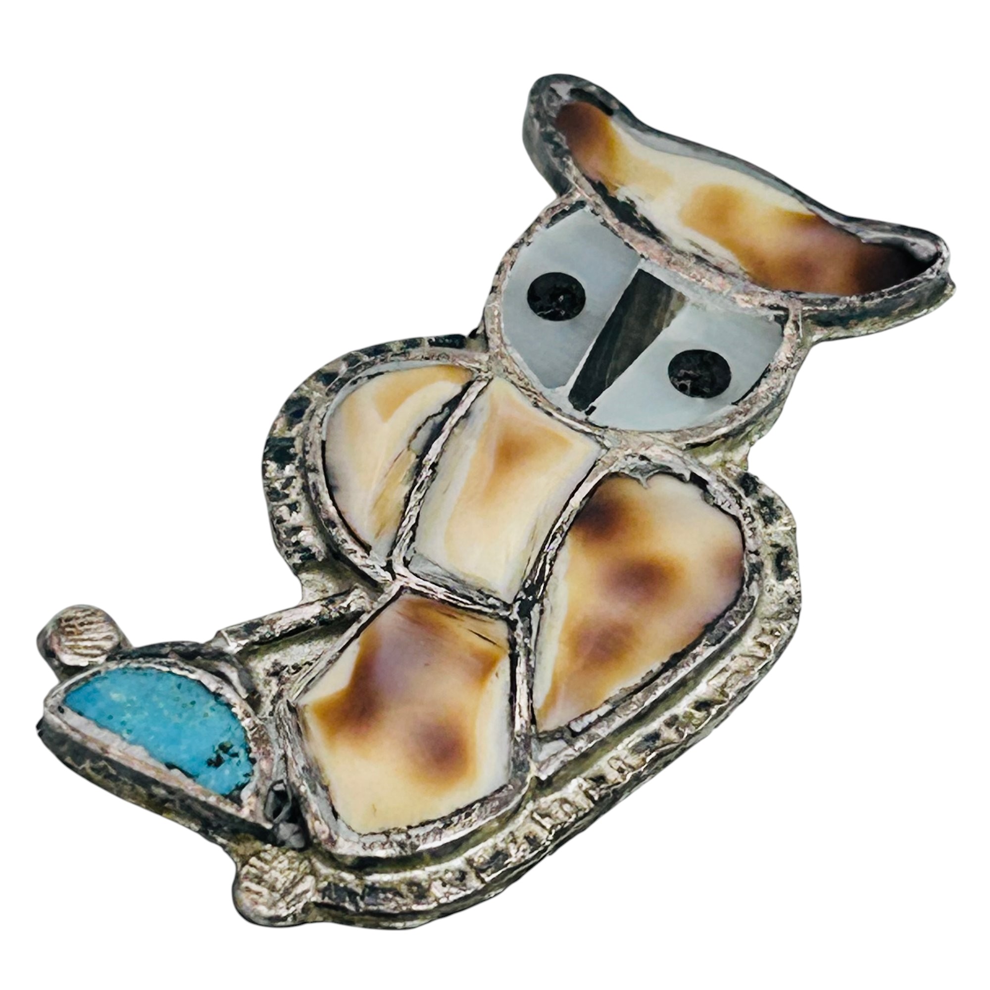 Zuni Navajo Sterling vintage inlay stone owl brooch 4.92 g