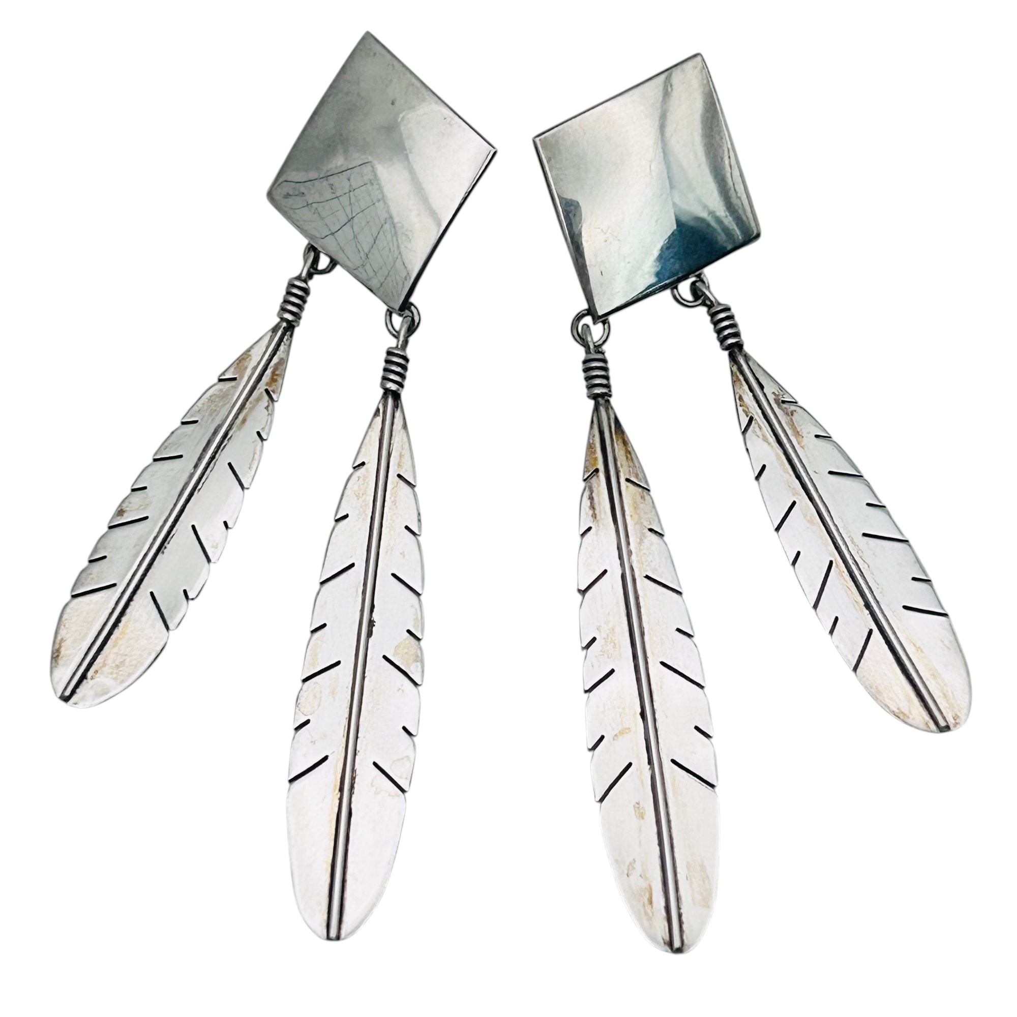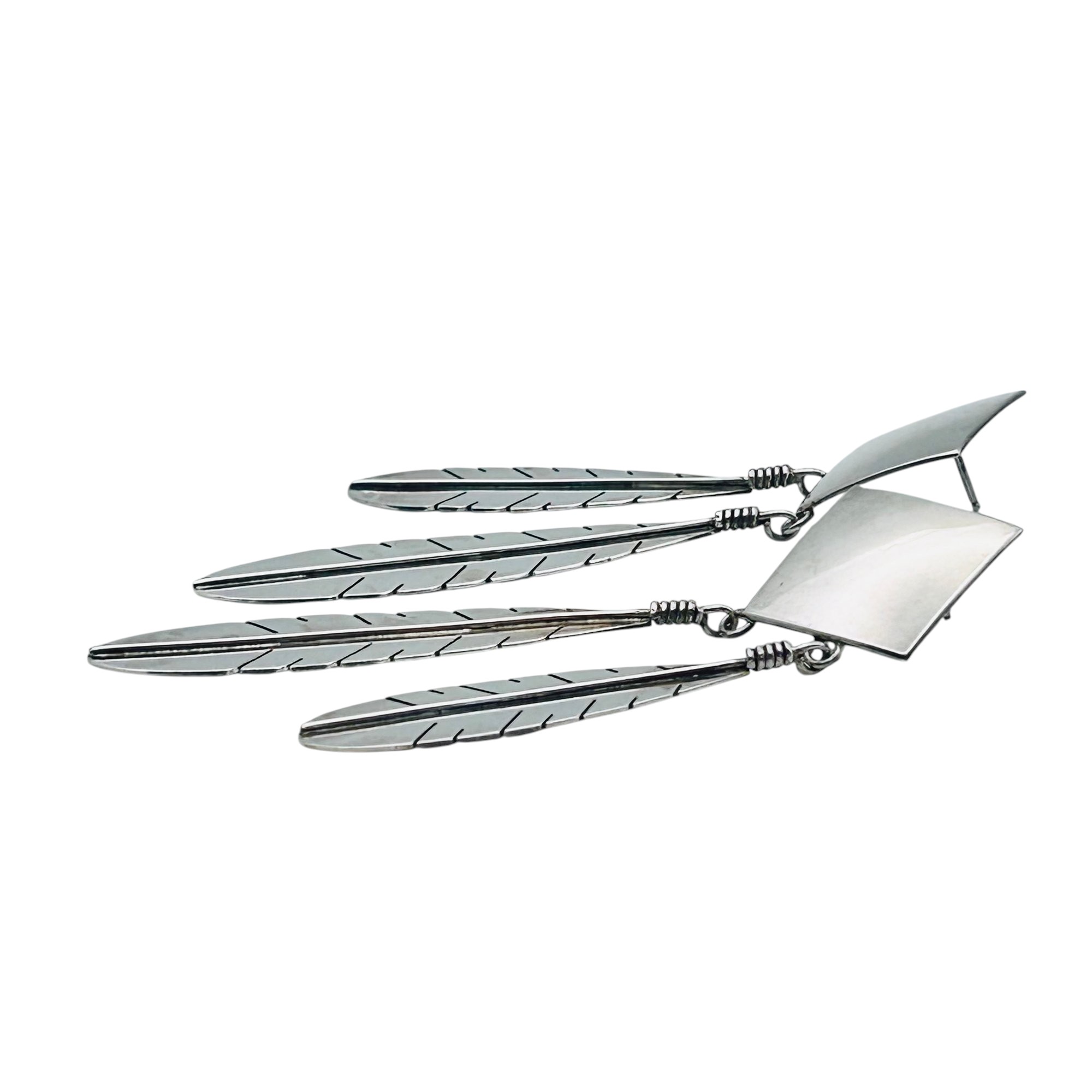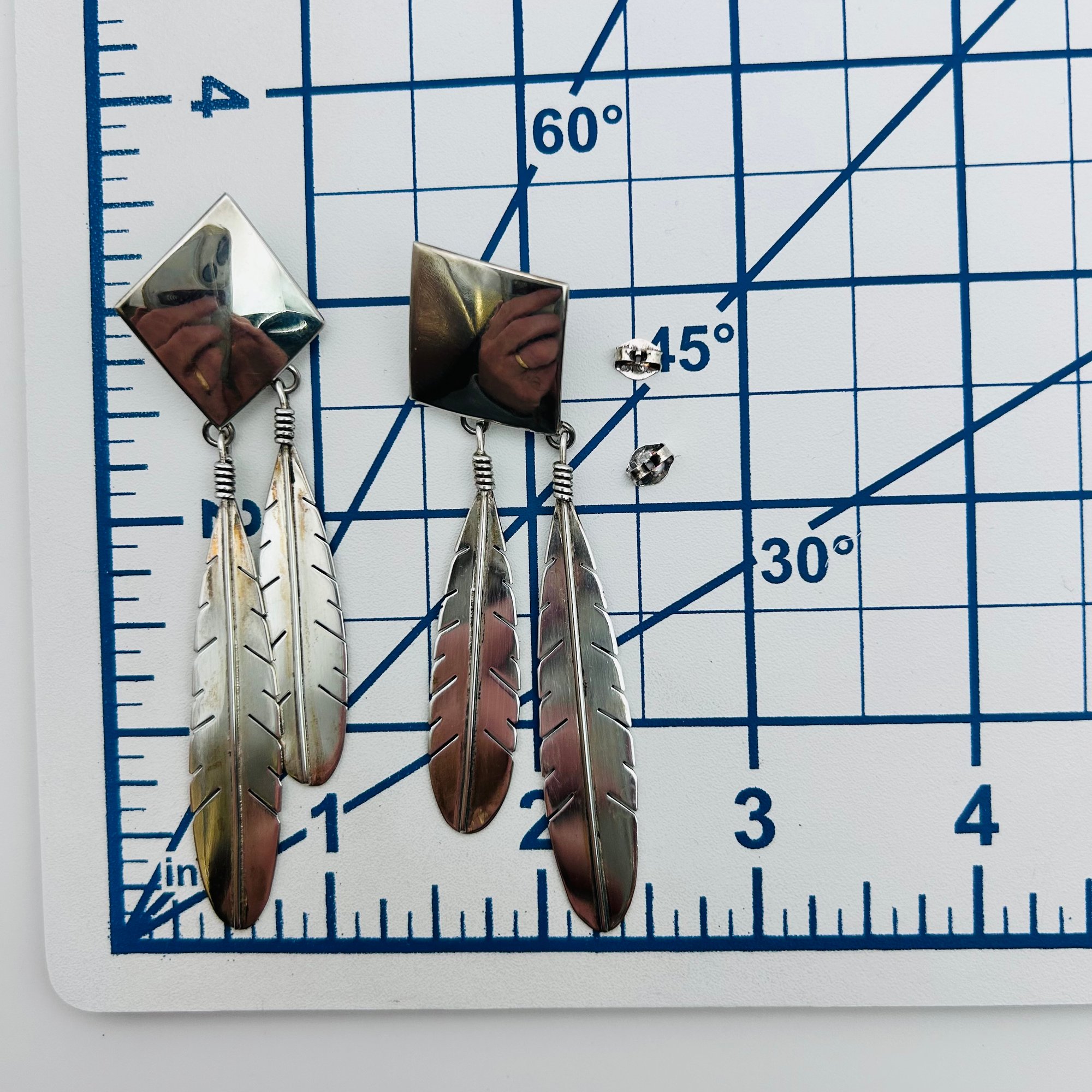 Native Sterling Pushback Dangle Feather Earring 16.86 G