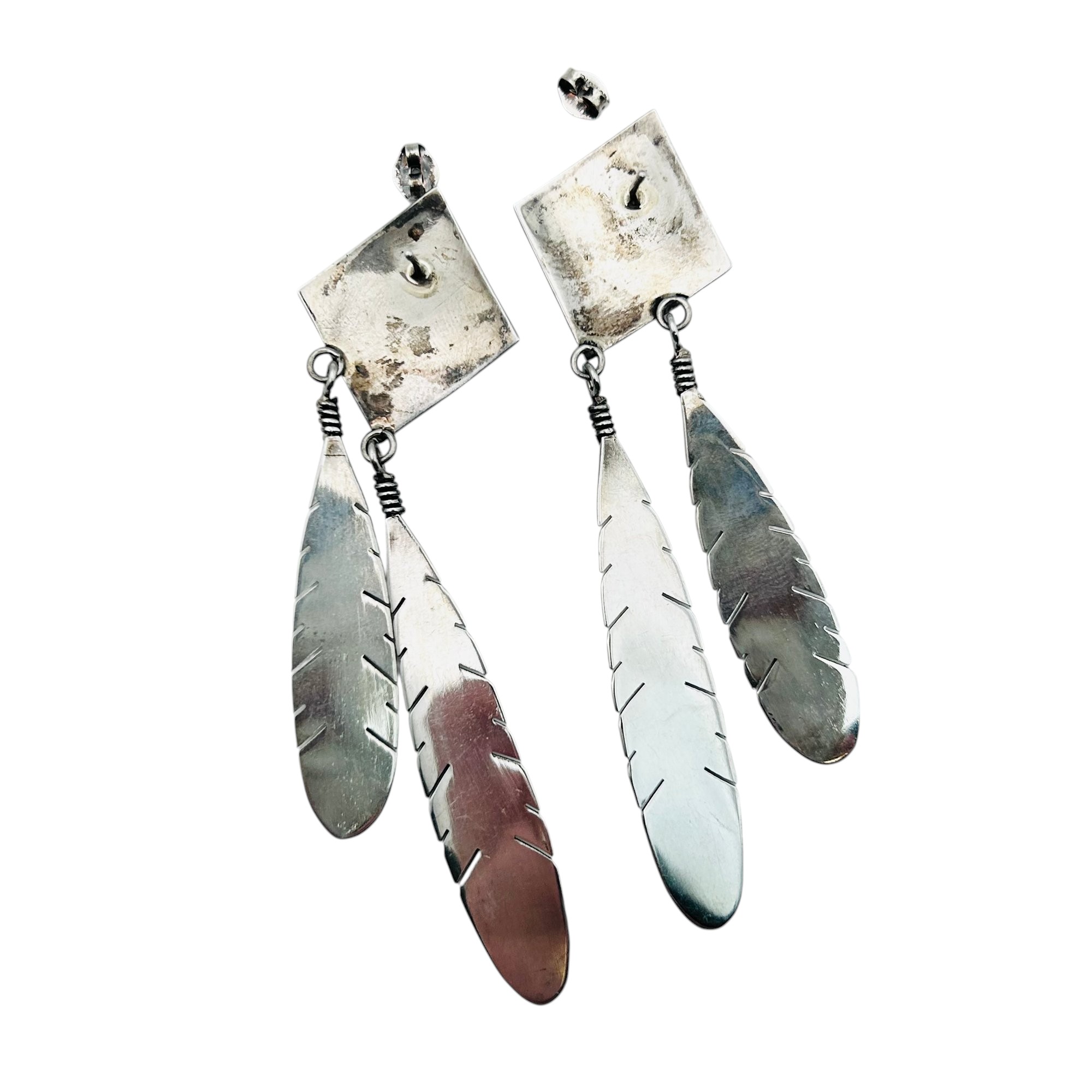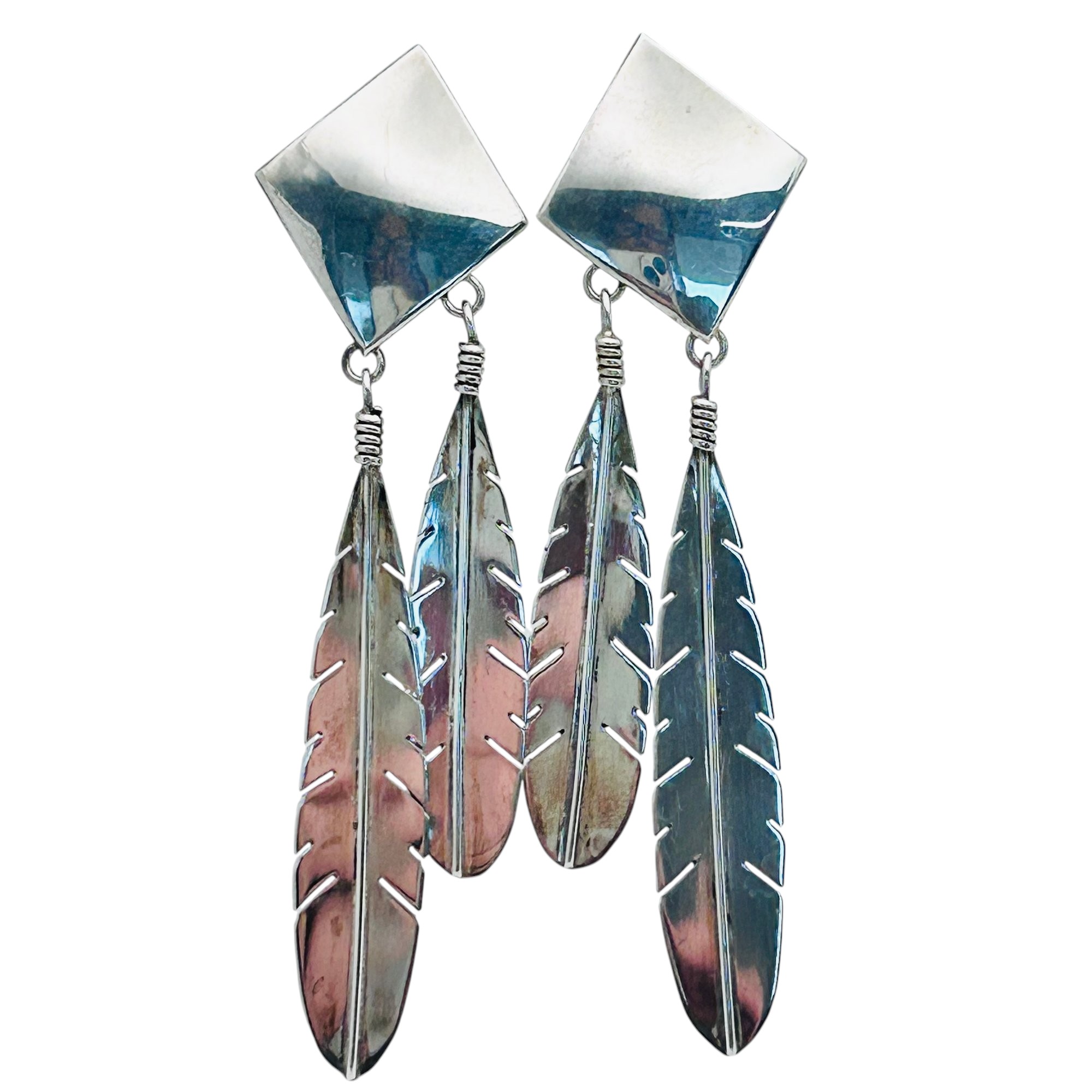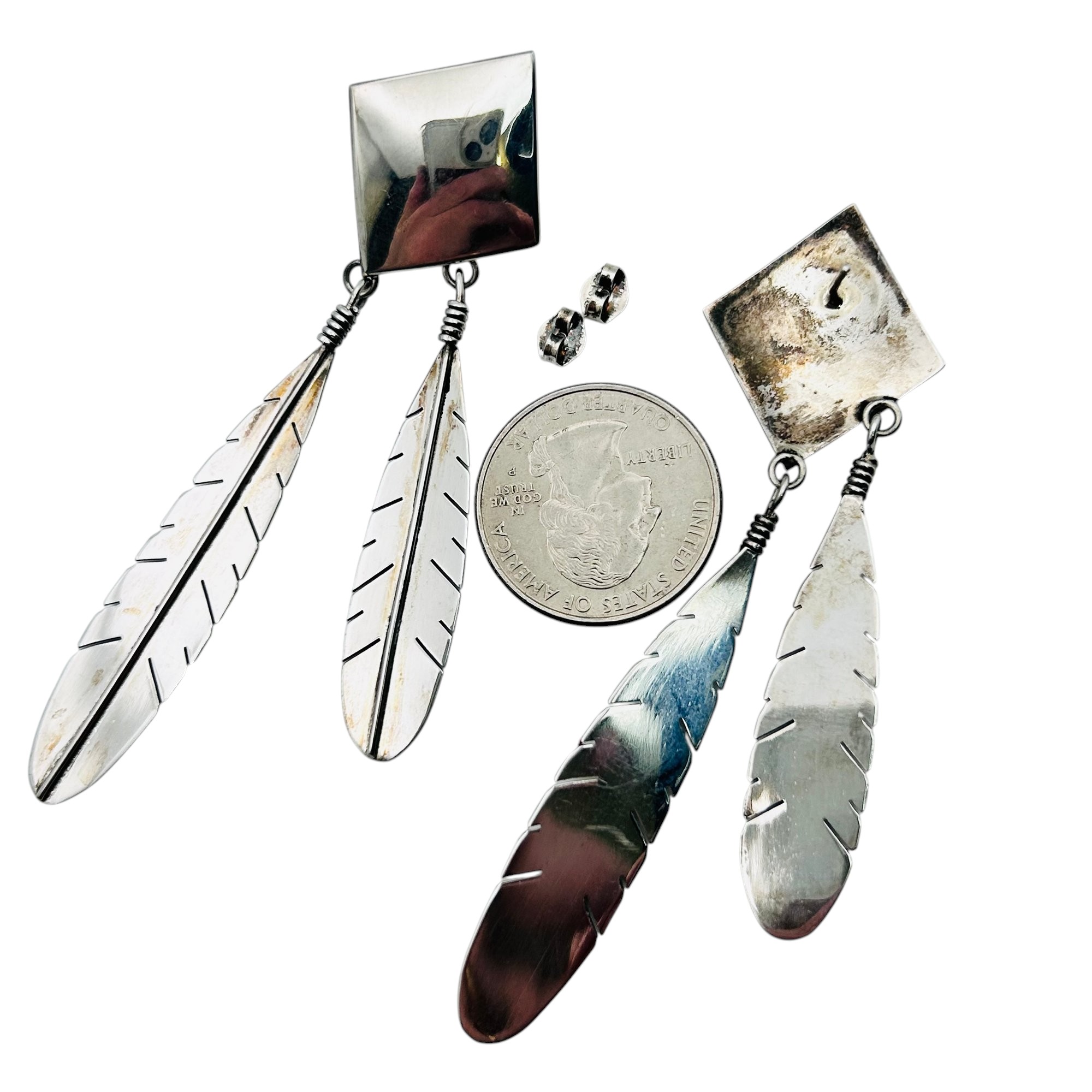 Native Sterling Pushback Dangle Feather Earring 16.86 G