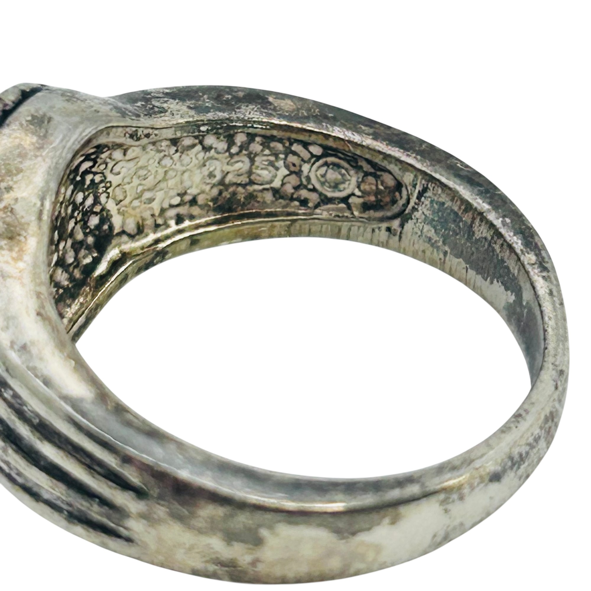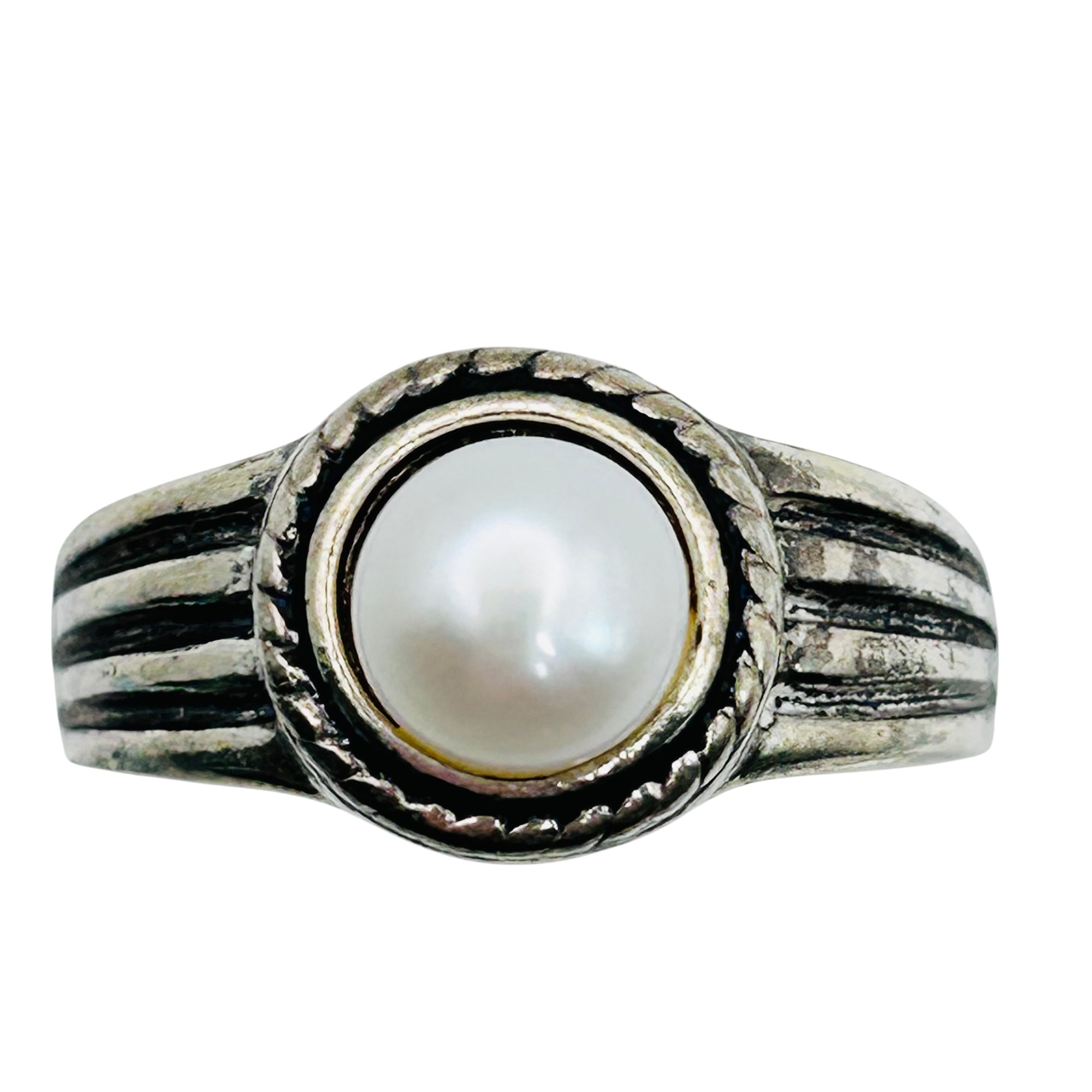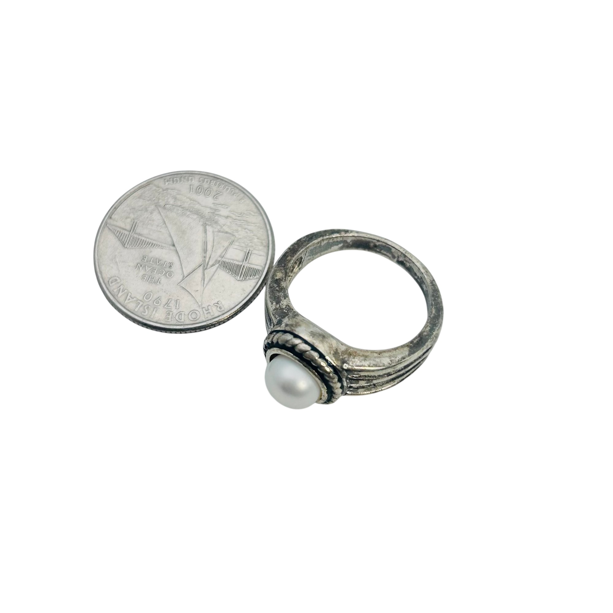 Single pearl sterling lined band Bezel set size 8 8.43 g