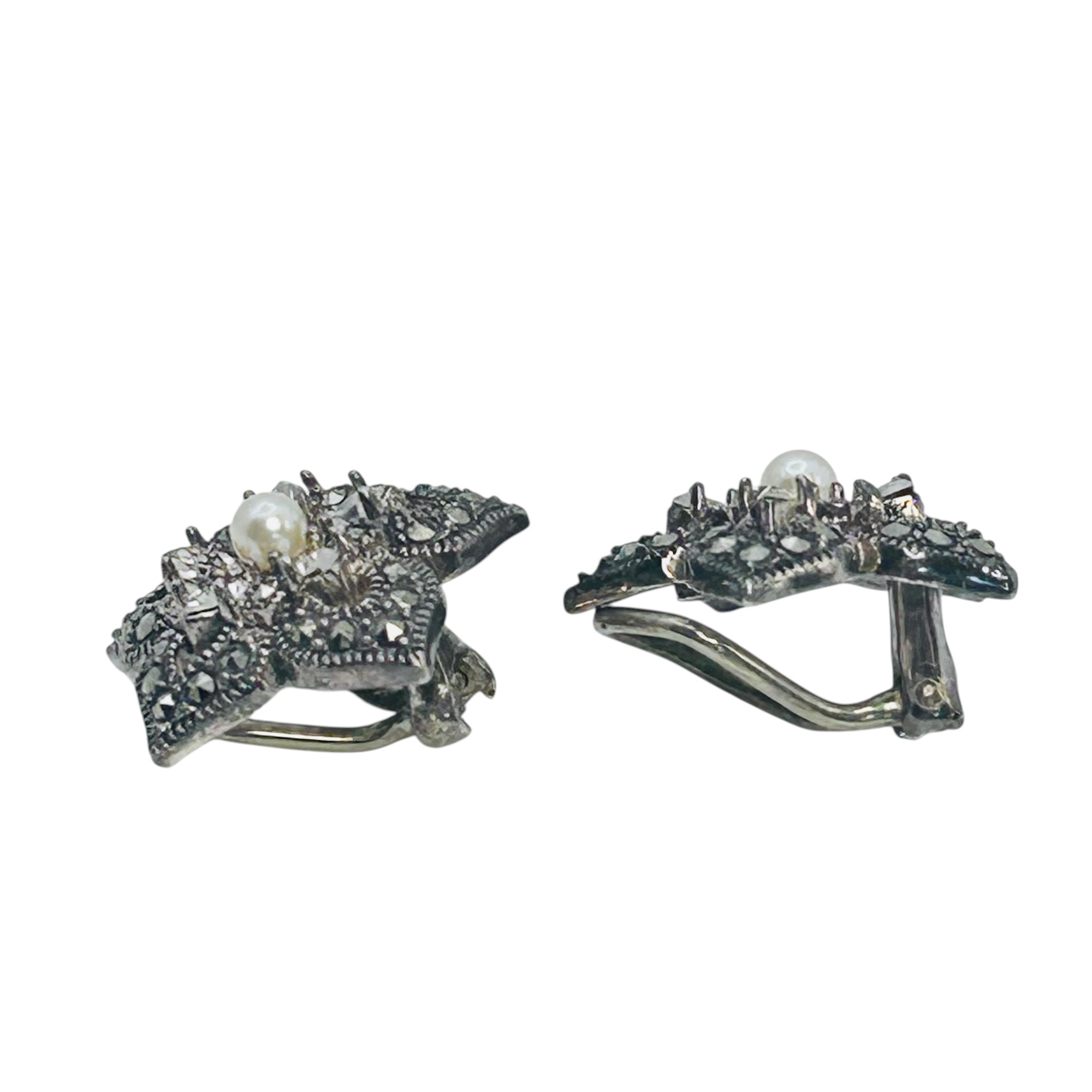 Judith Jack MARCASITE Sterling Clip On Earrings 8.36 G