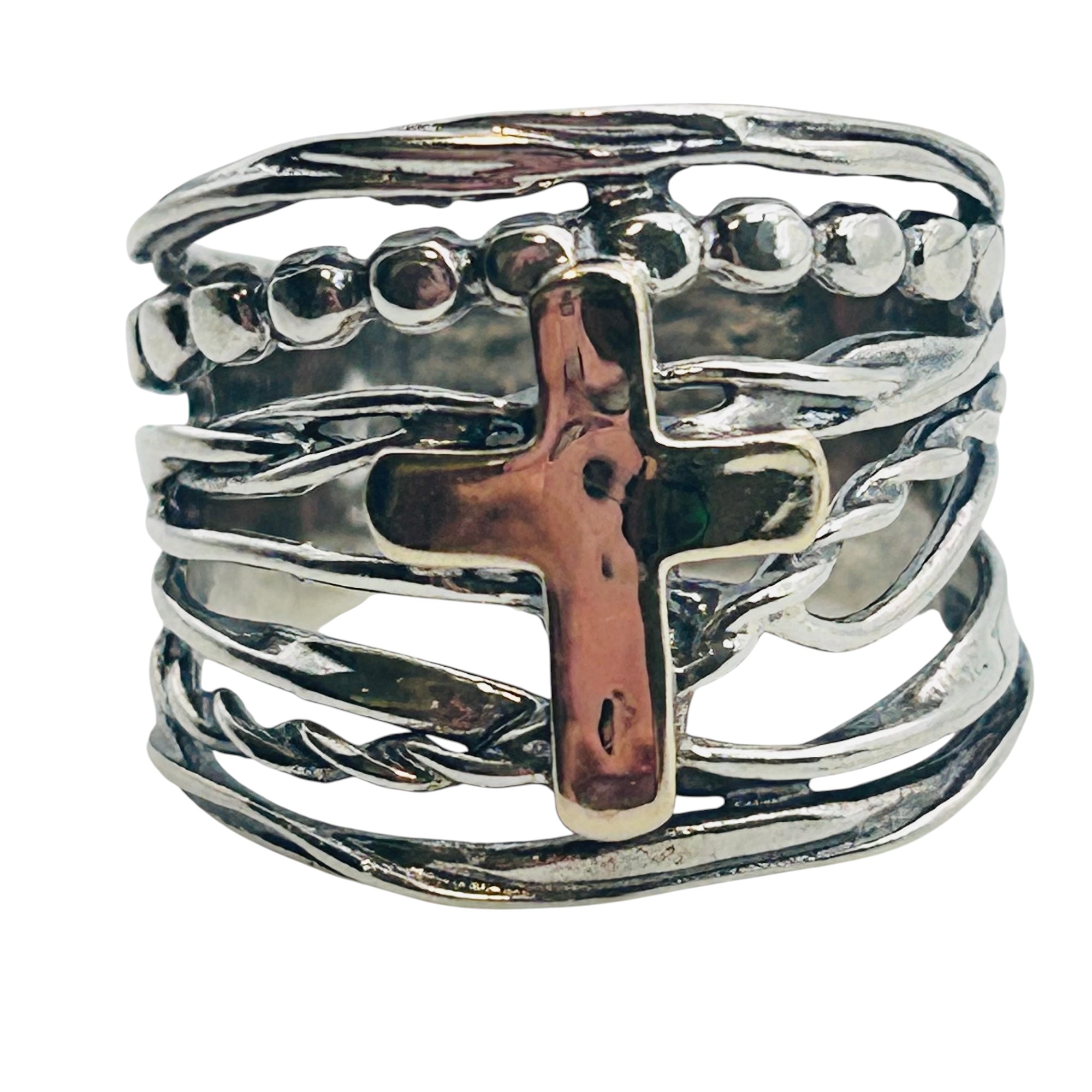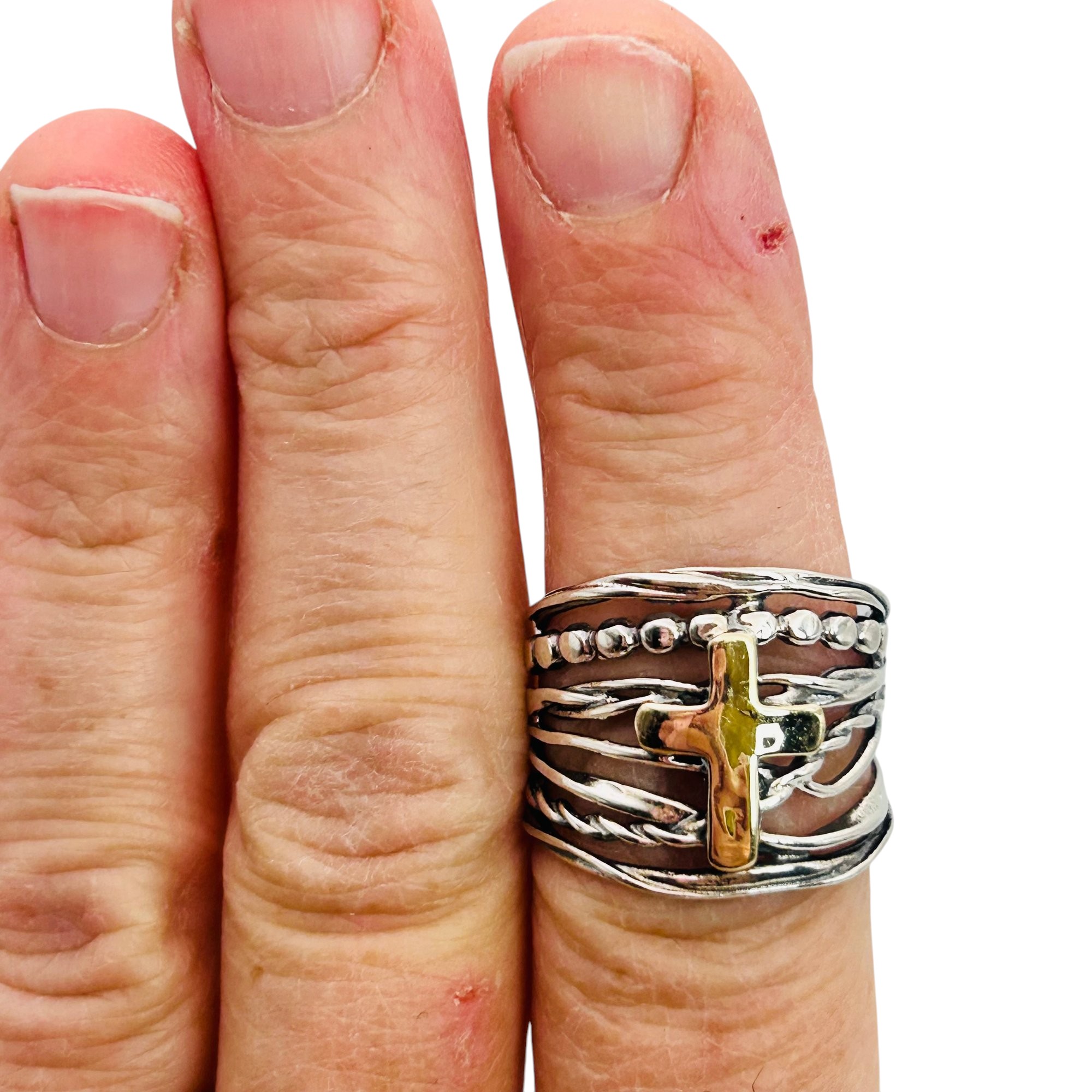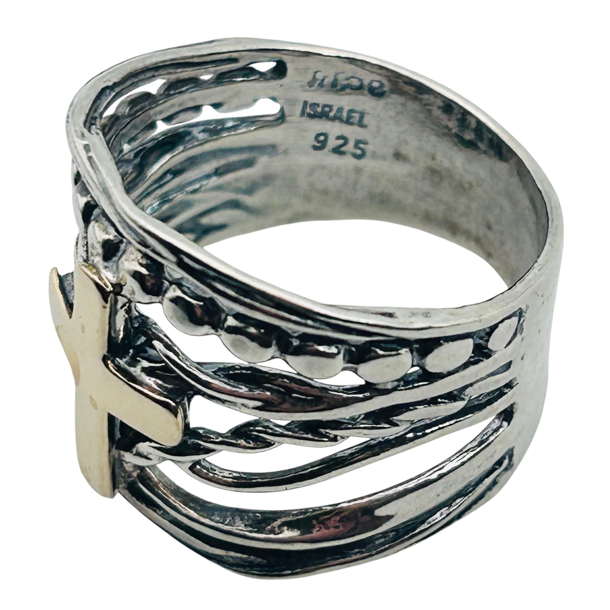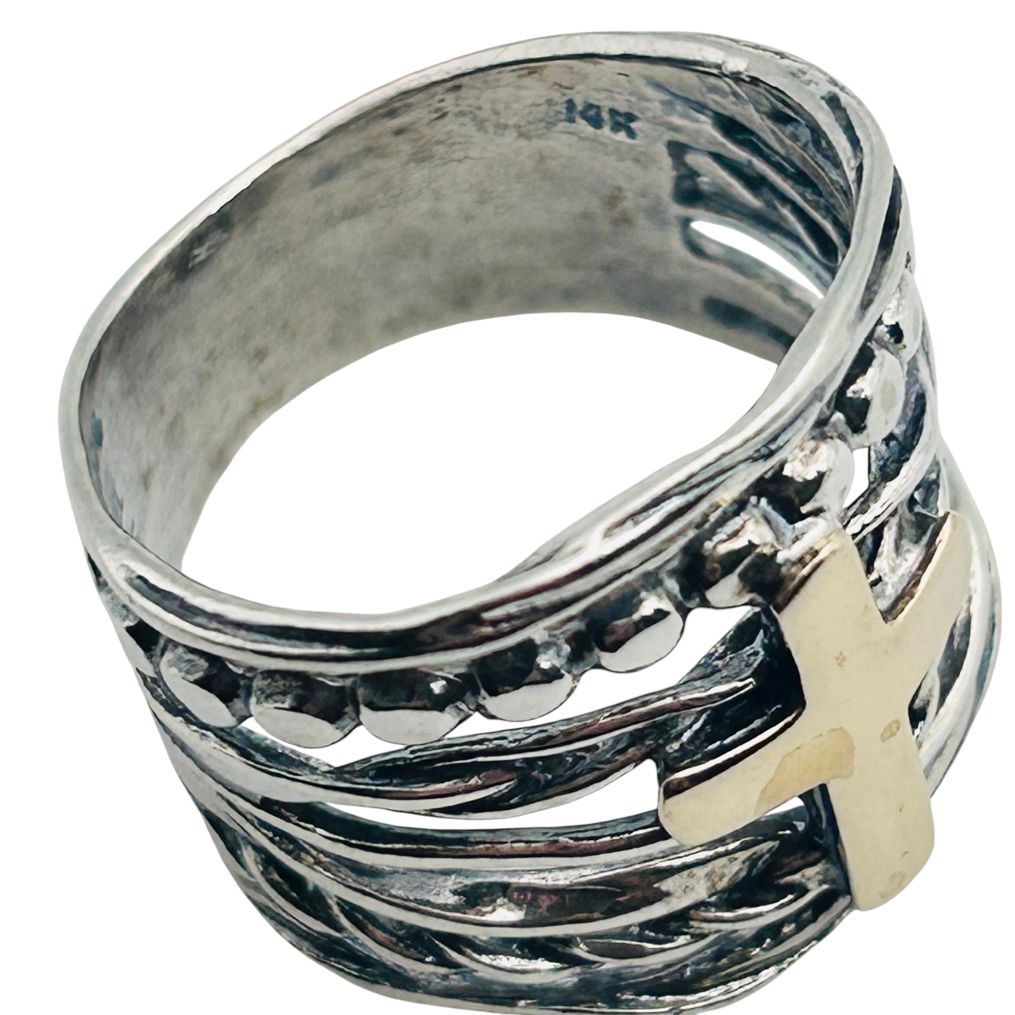 DIDAE Israel 14 K gold cross sterling wrap ring size 9 6.44 g