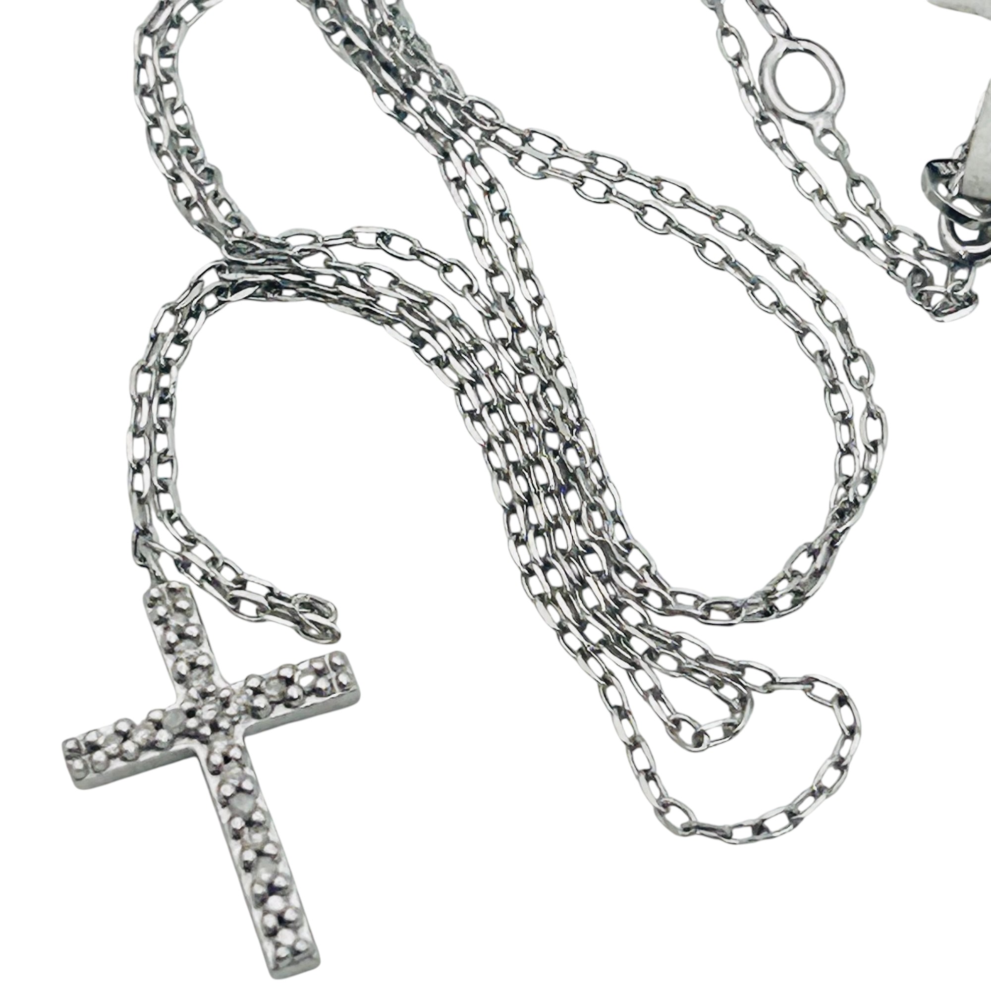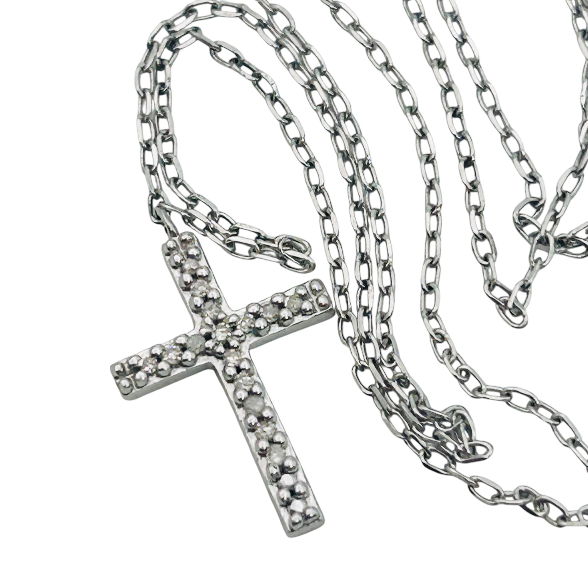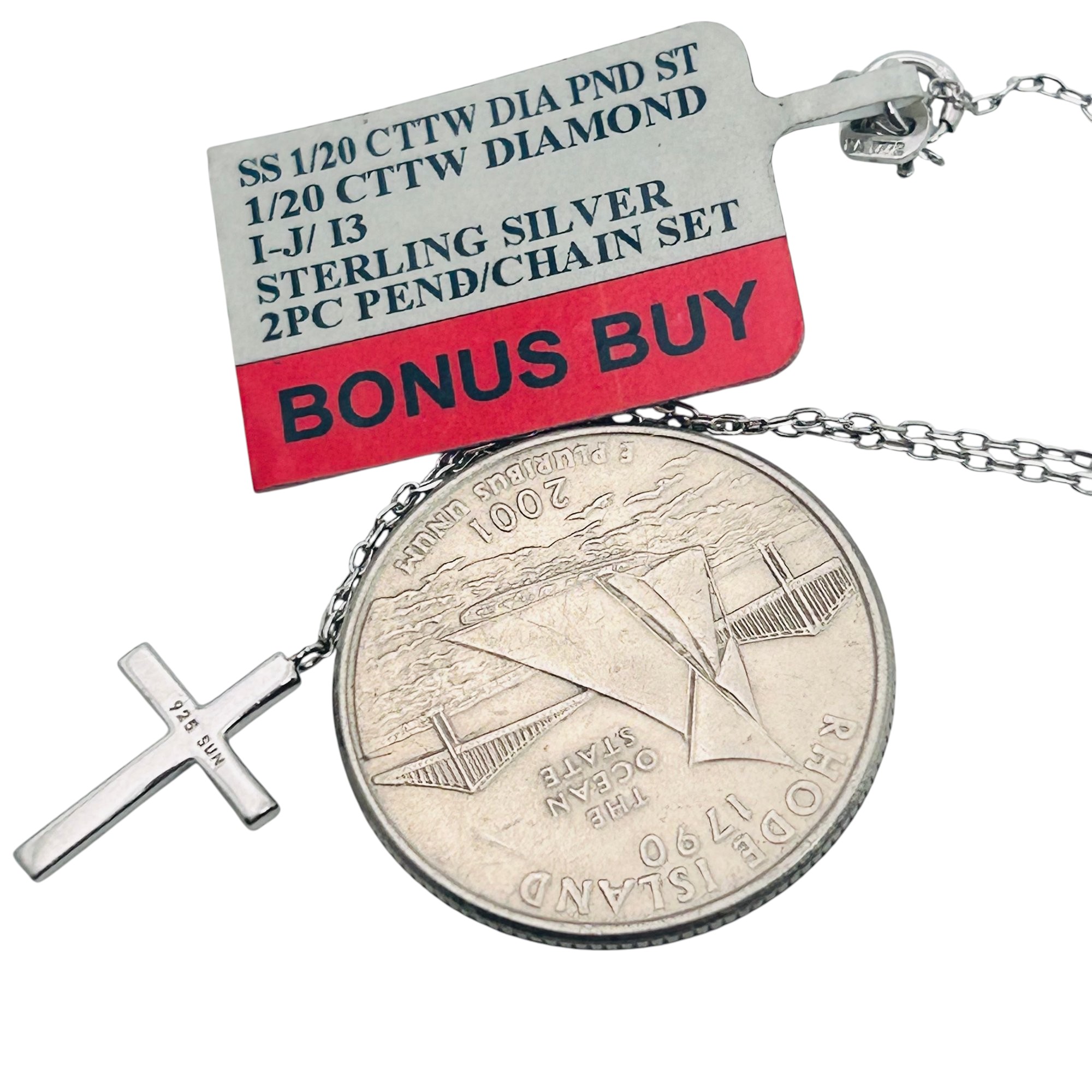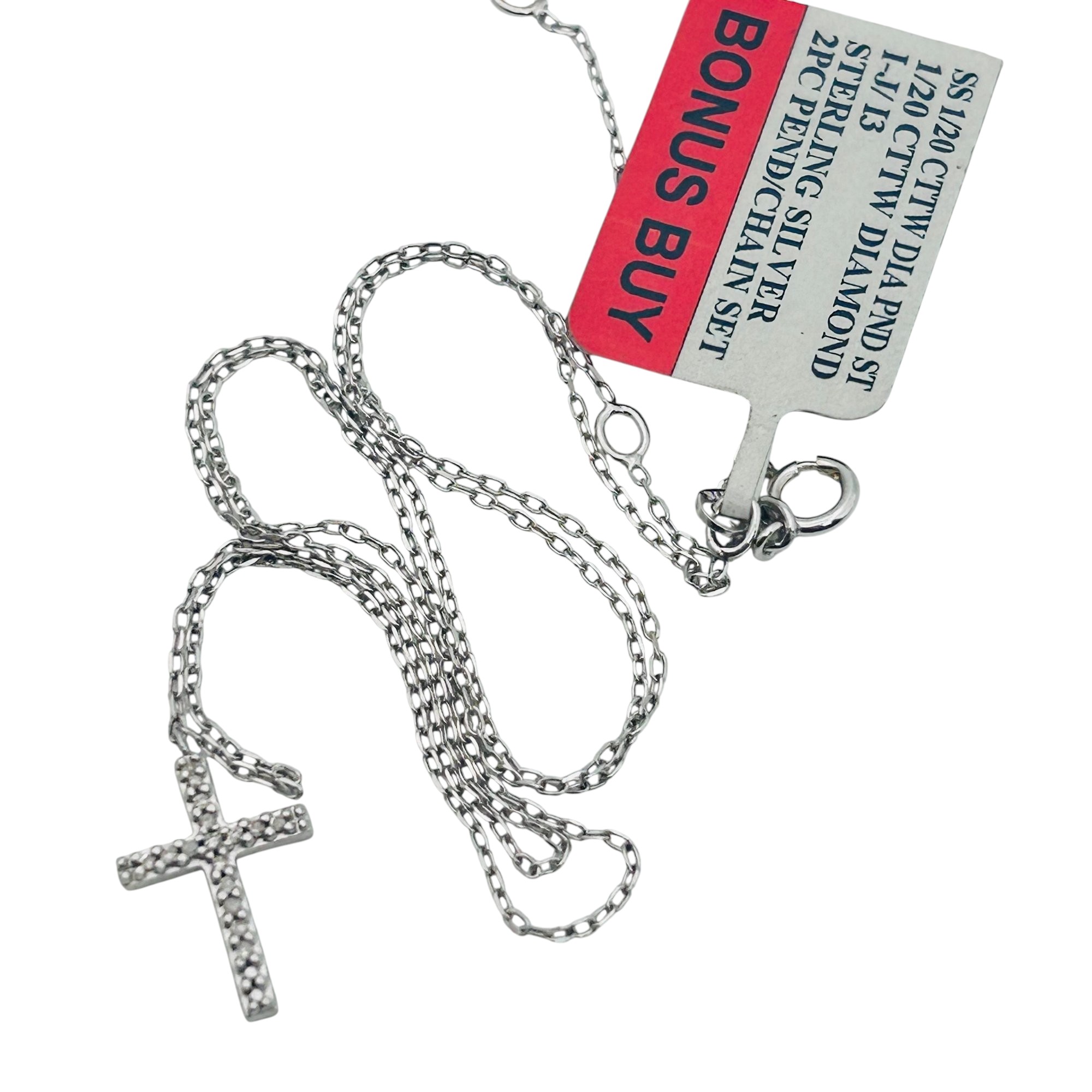 1/20 CTTW diamond cross Sterling pendant cable chain necklace 1.5 g