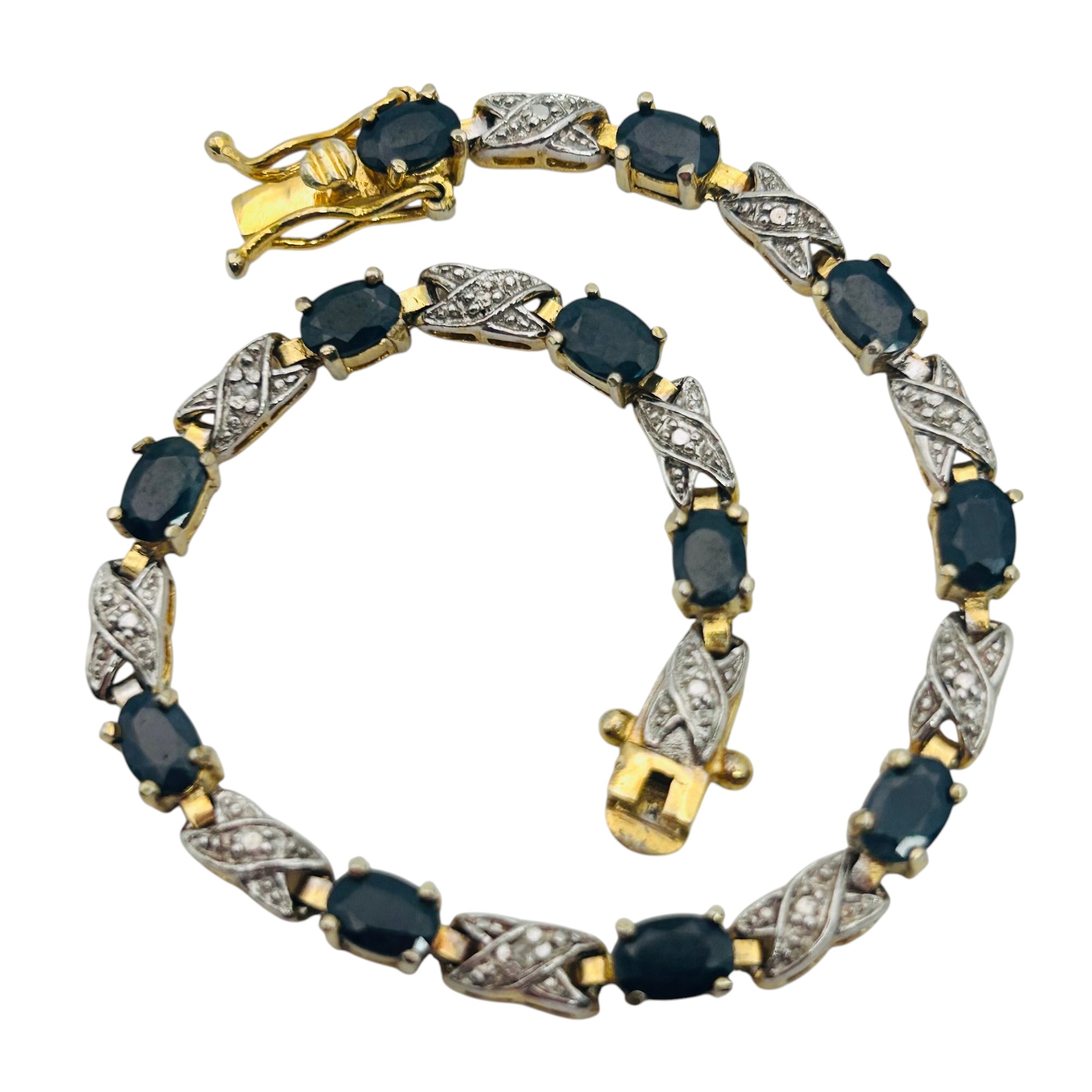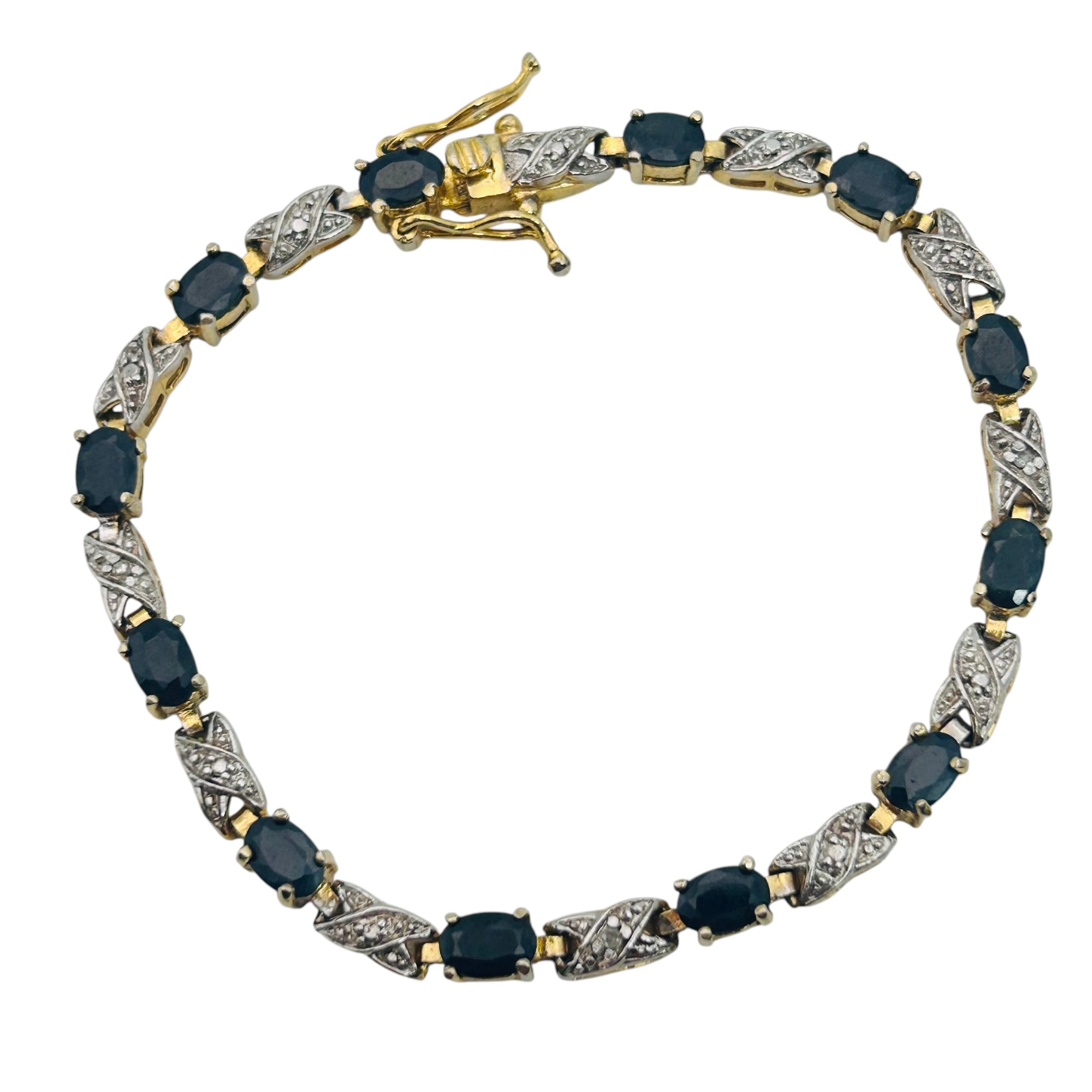 Sapphire diamond Sterling tennis bracelet 11.4 g
