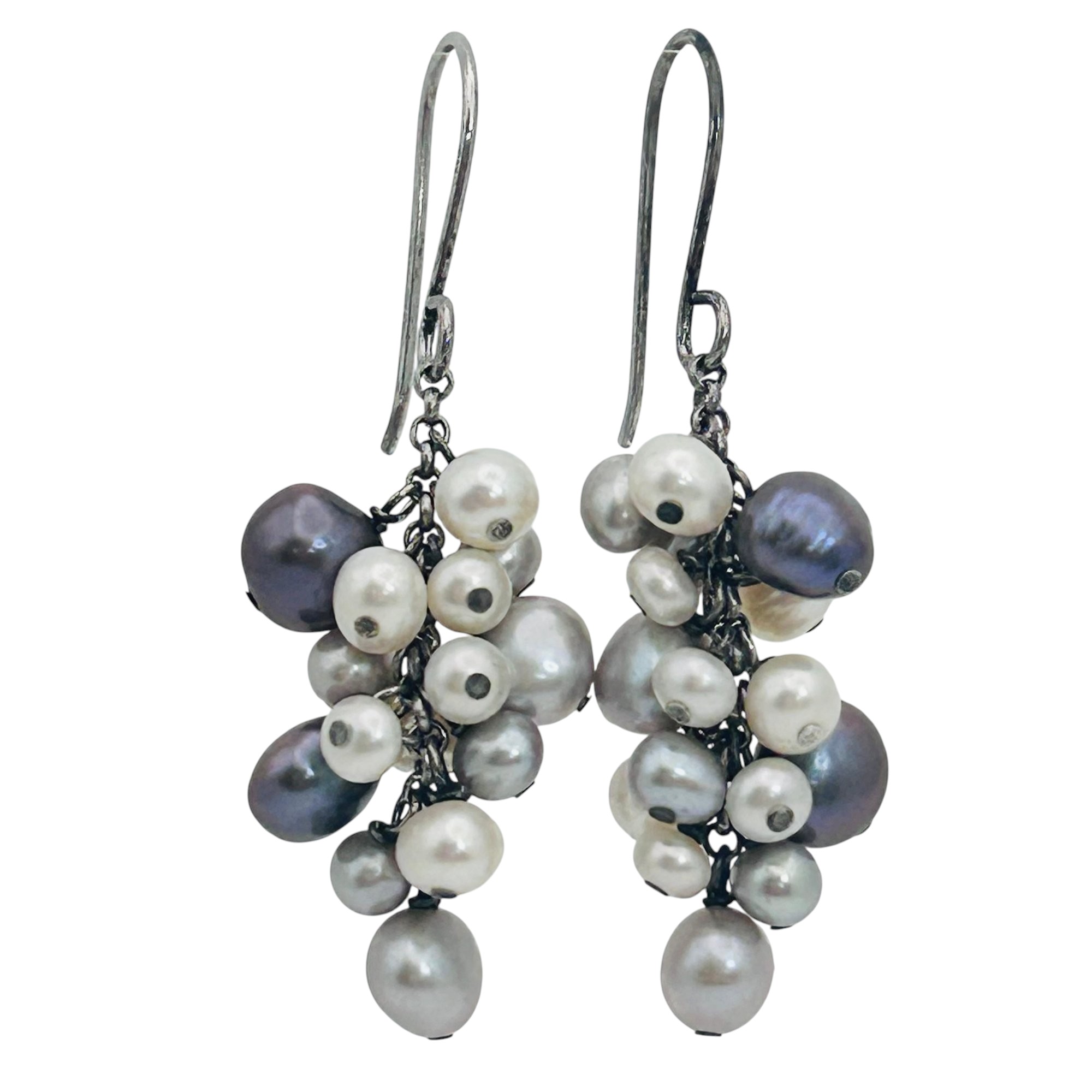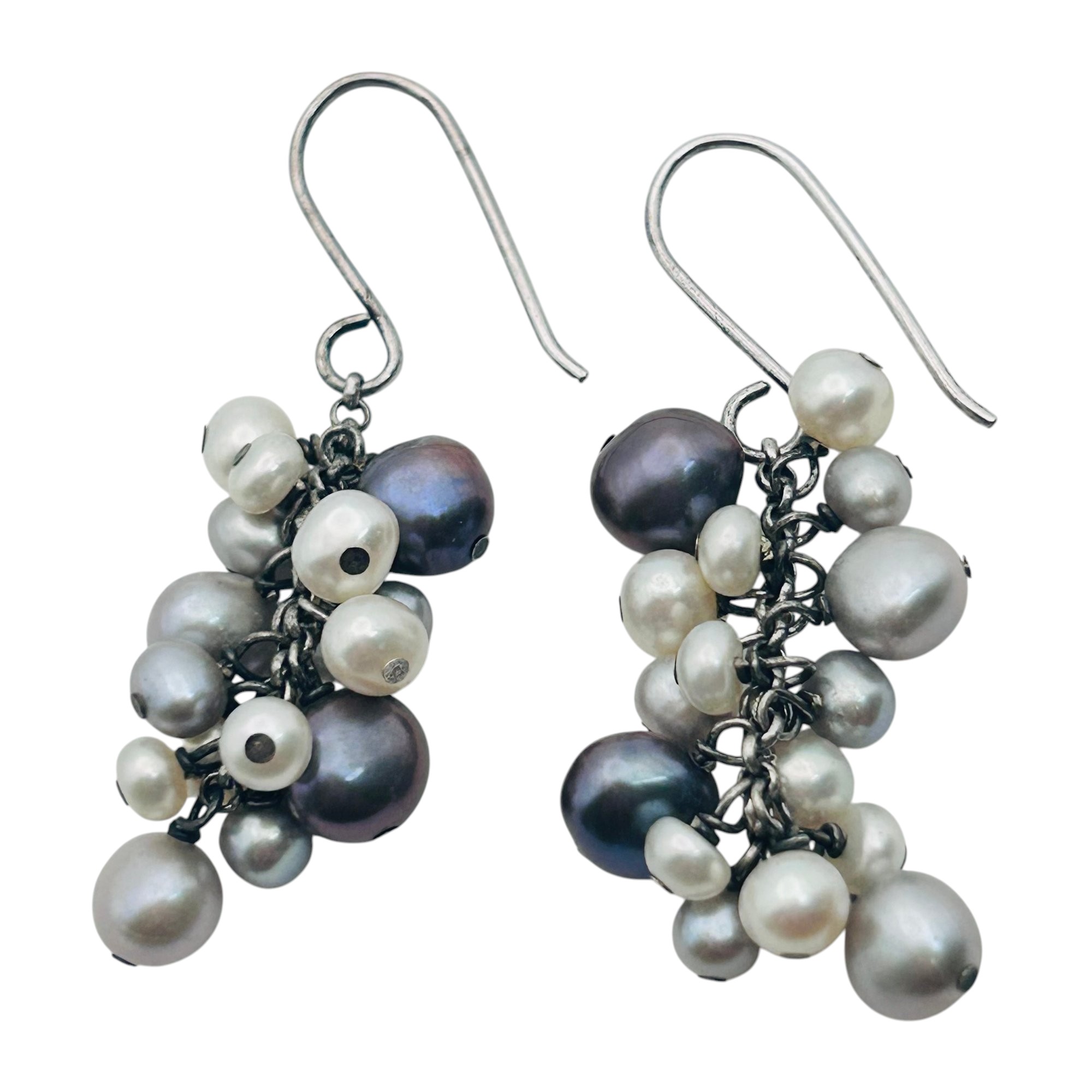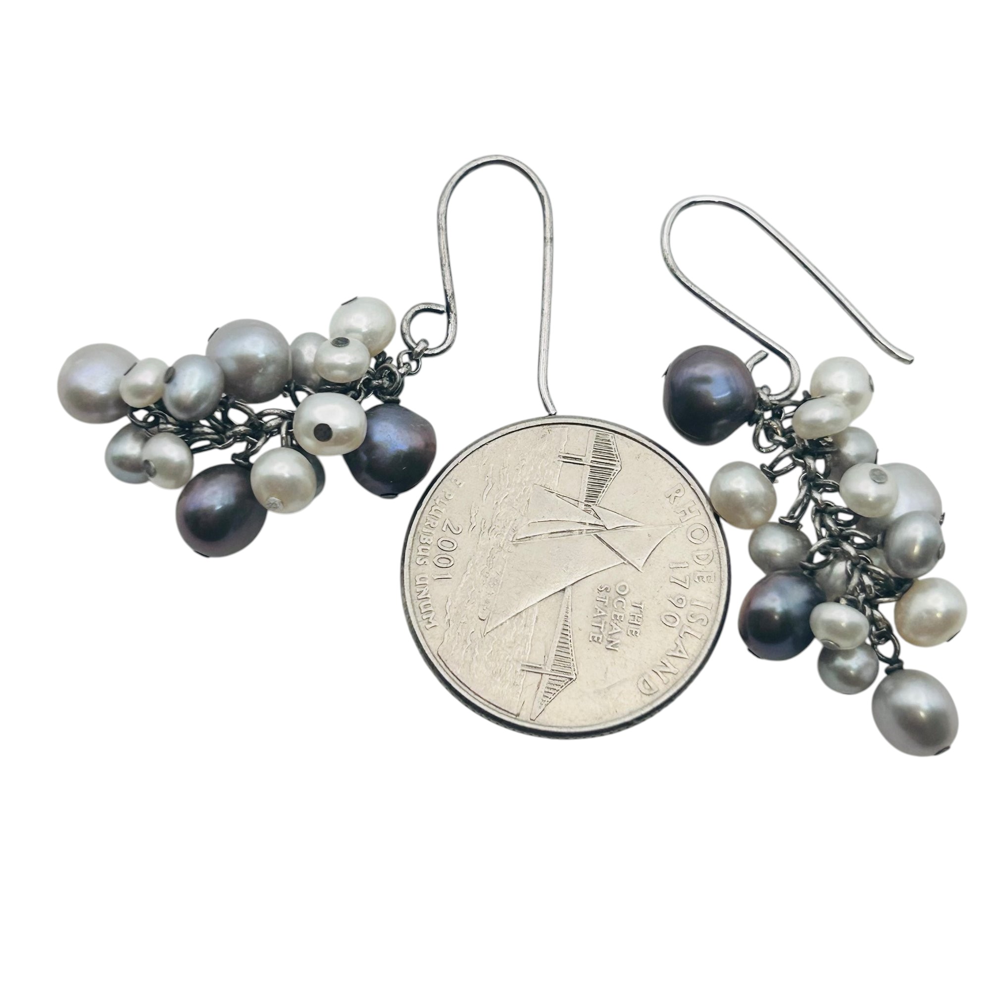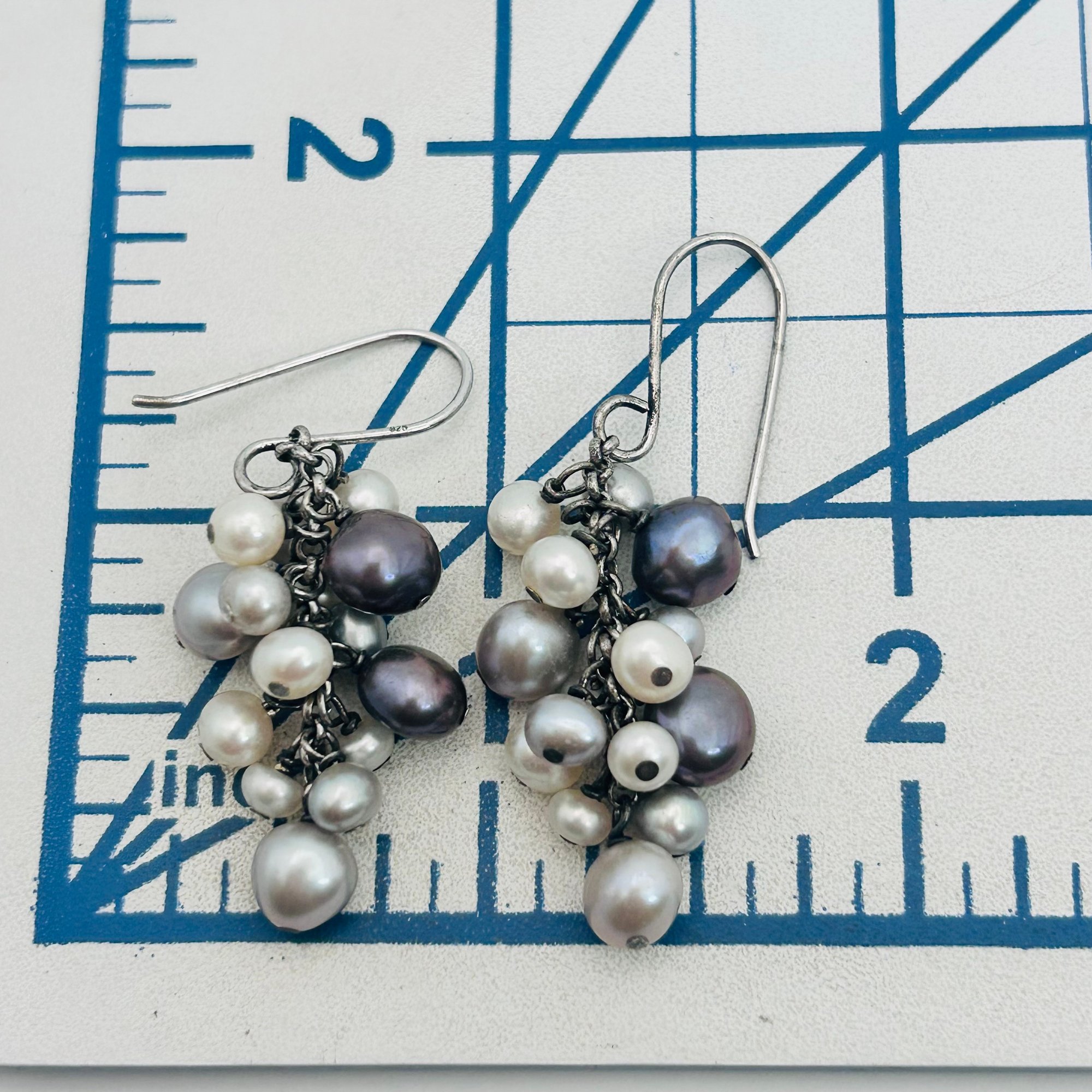 Pearl Cluster Sterling Dangle Earring 7.65 G