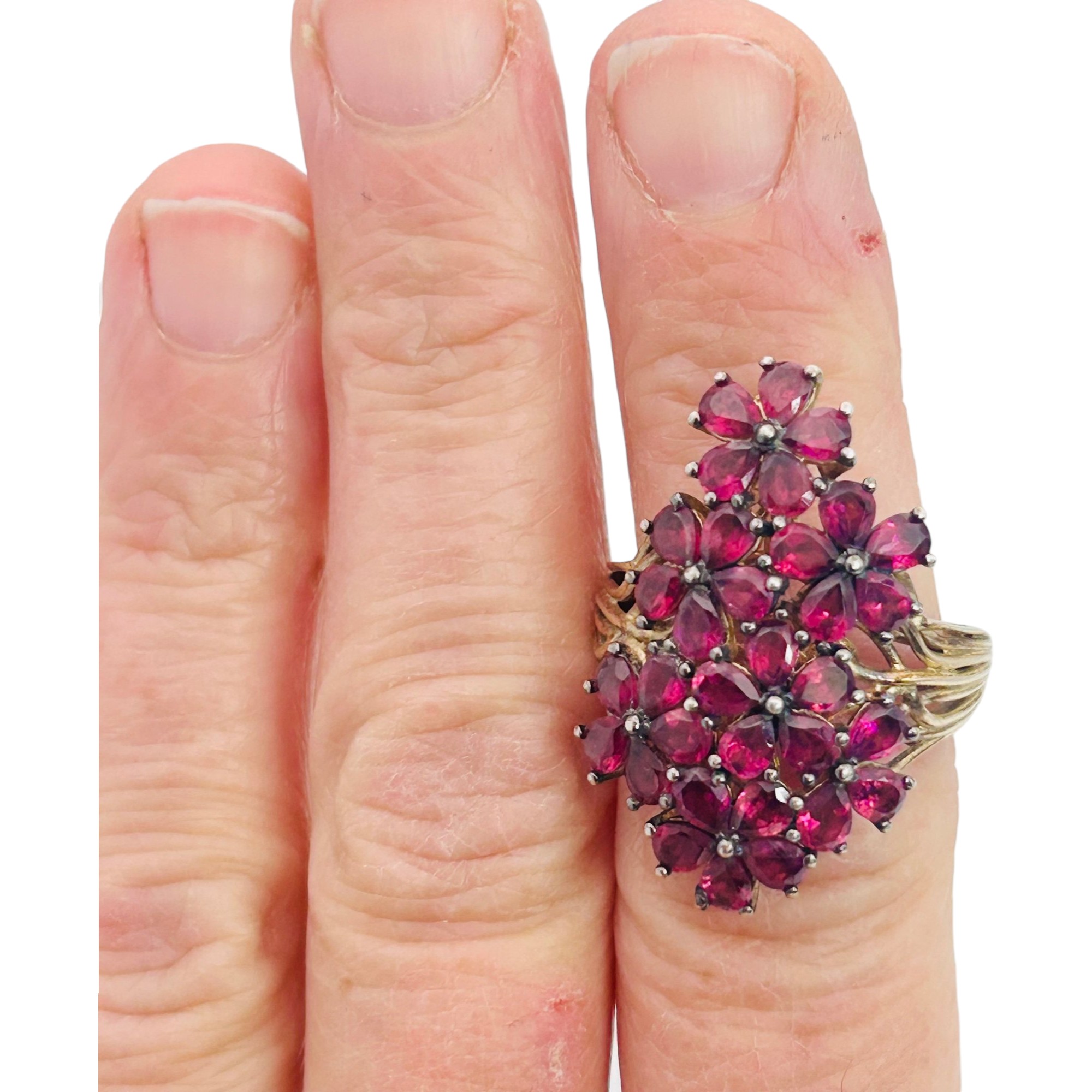 Rhodalite Sterling cluster ring size 9 7.5 g