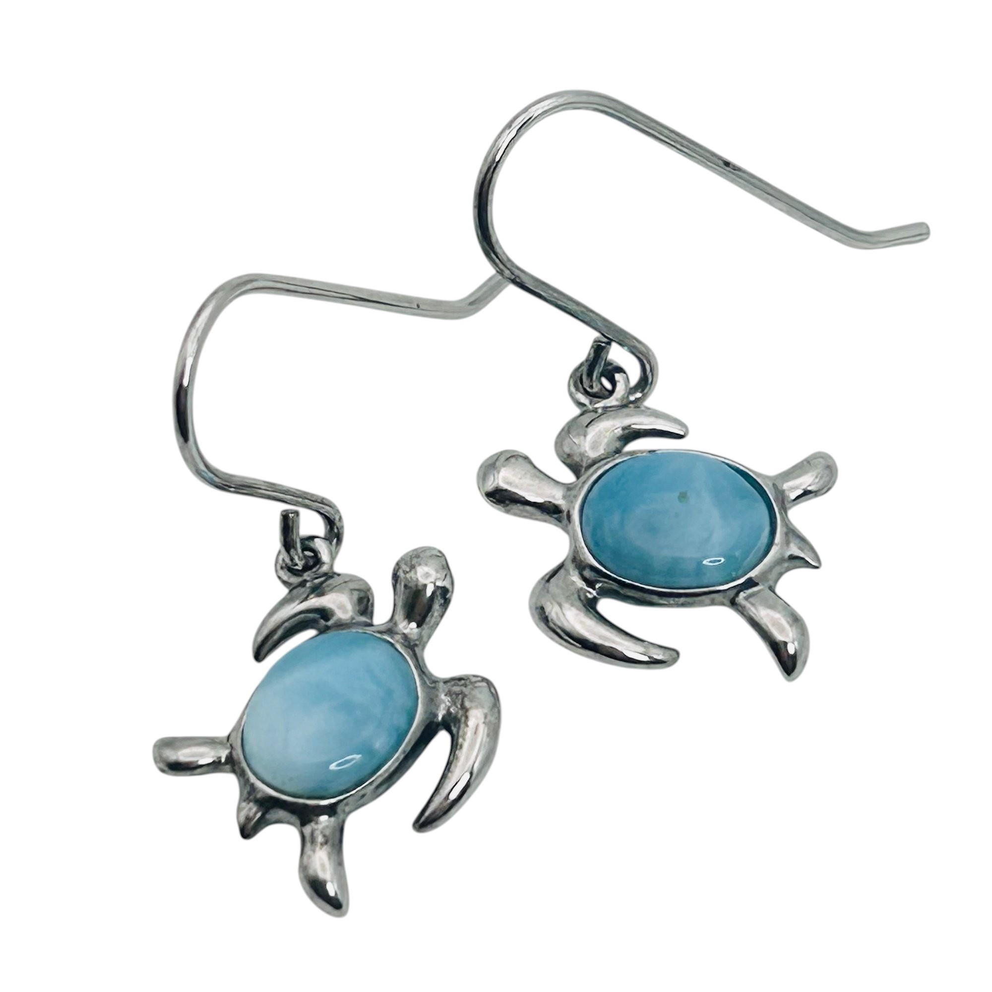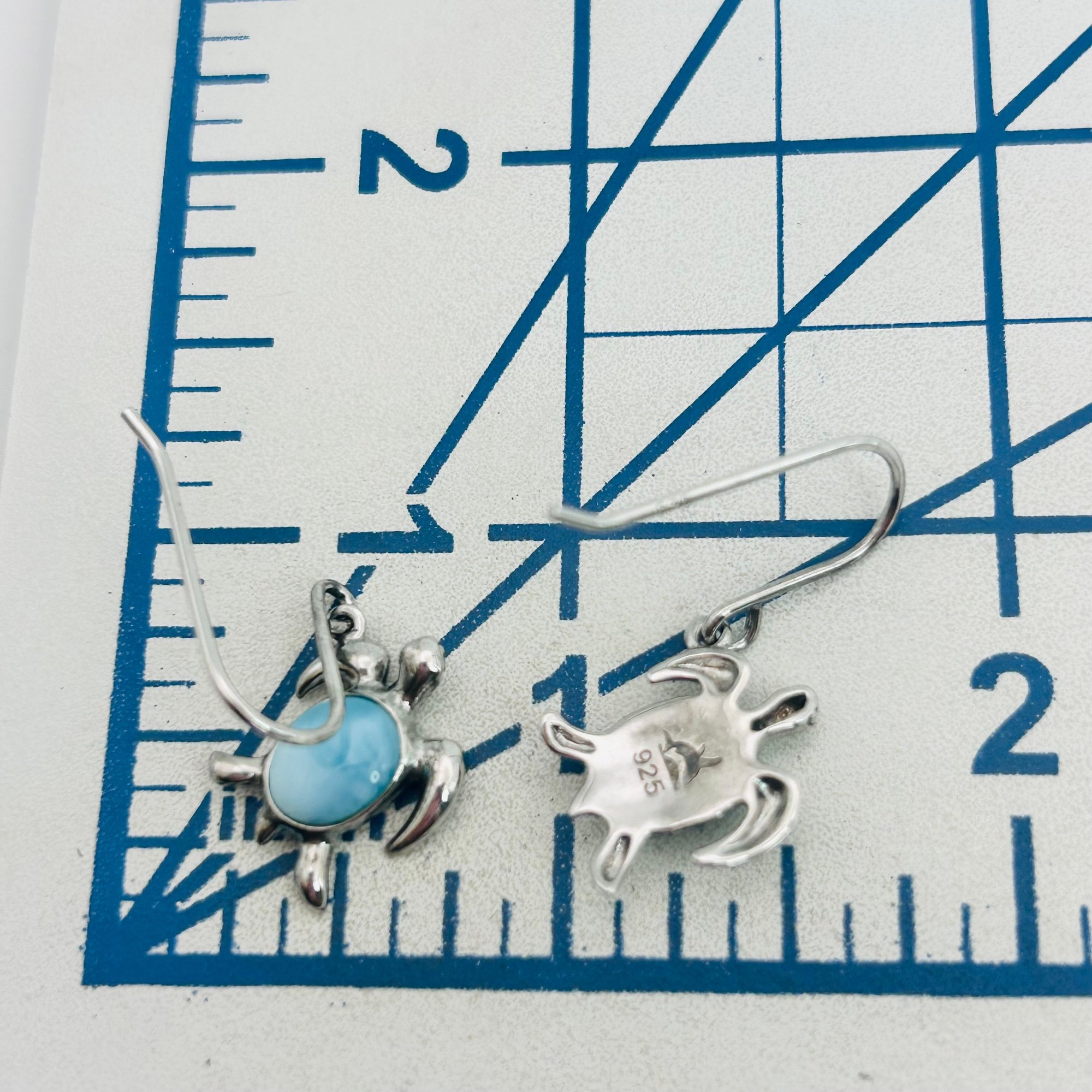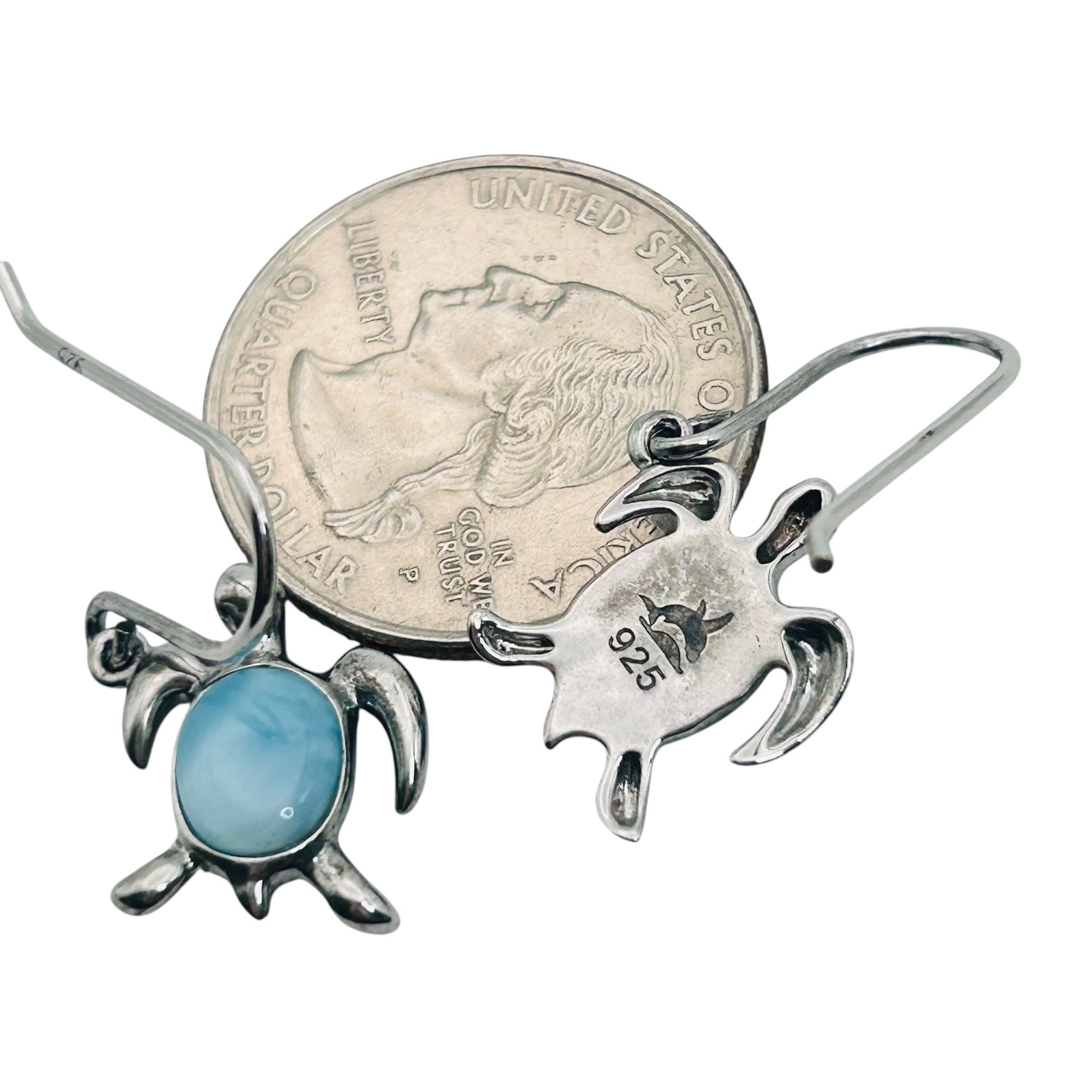 Hawaiian alamea honu Larimar Sterling turtle dangle earring 3.44 g