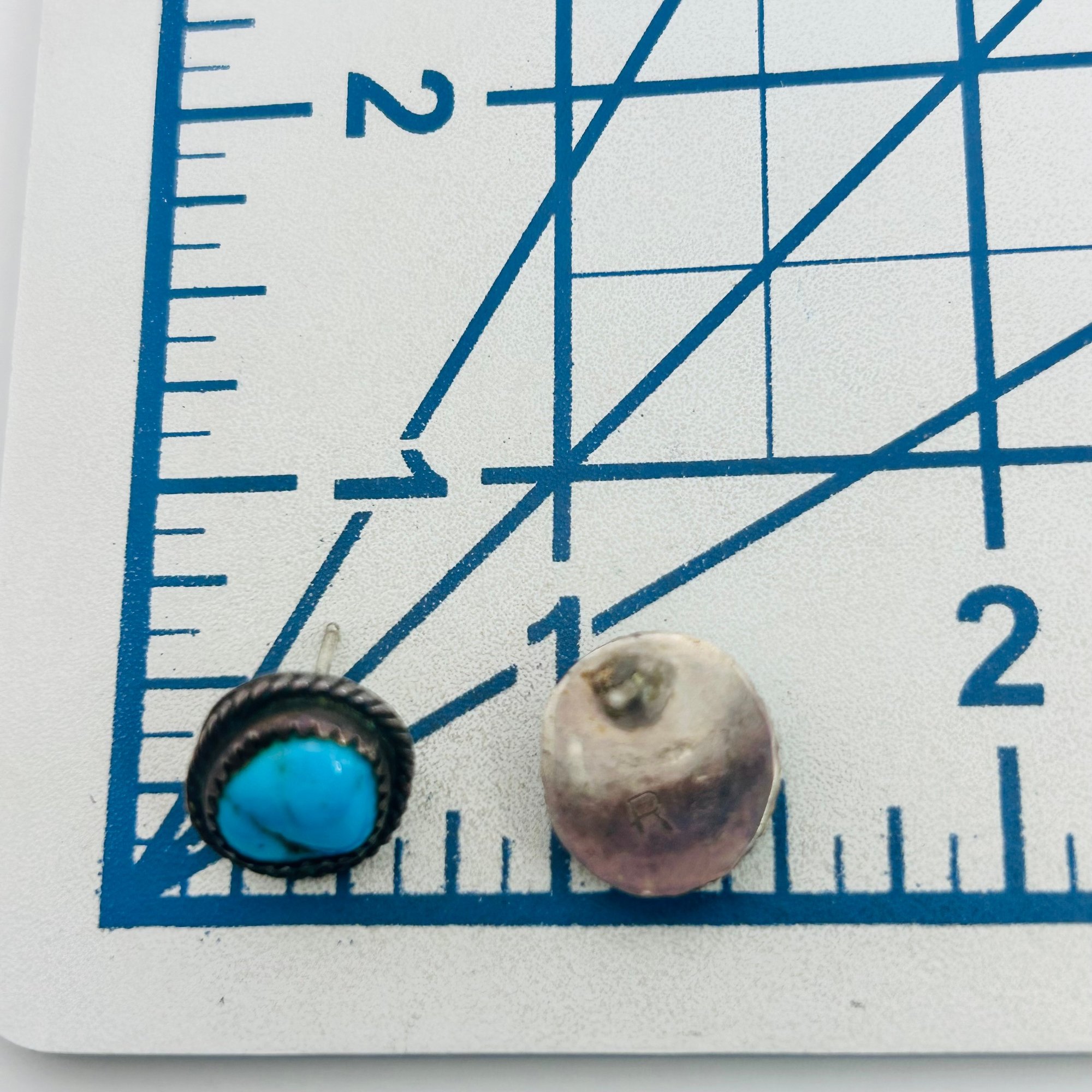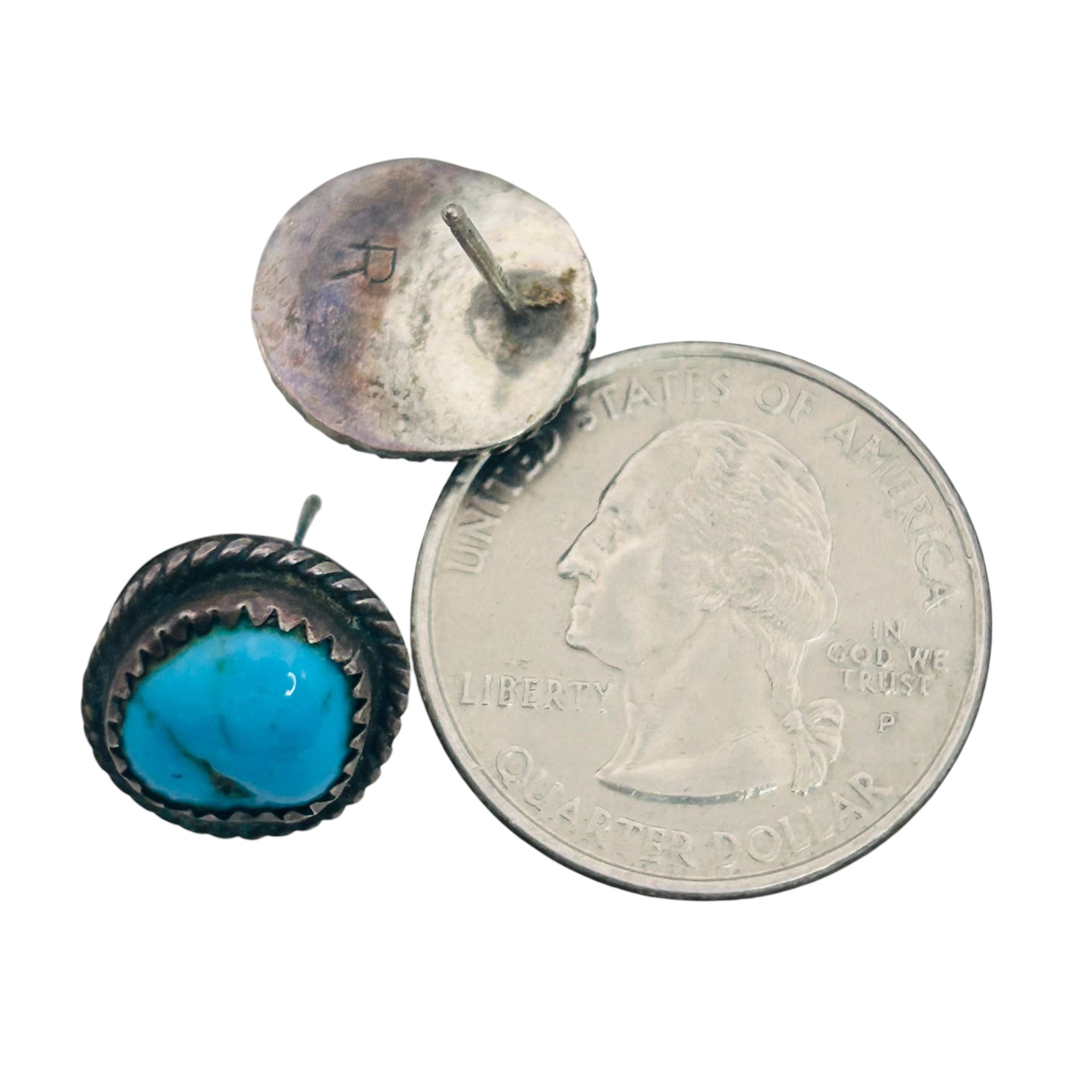 Navajo signed our Sterling turquoise stud back earrings 3.78 g