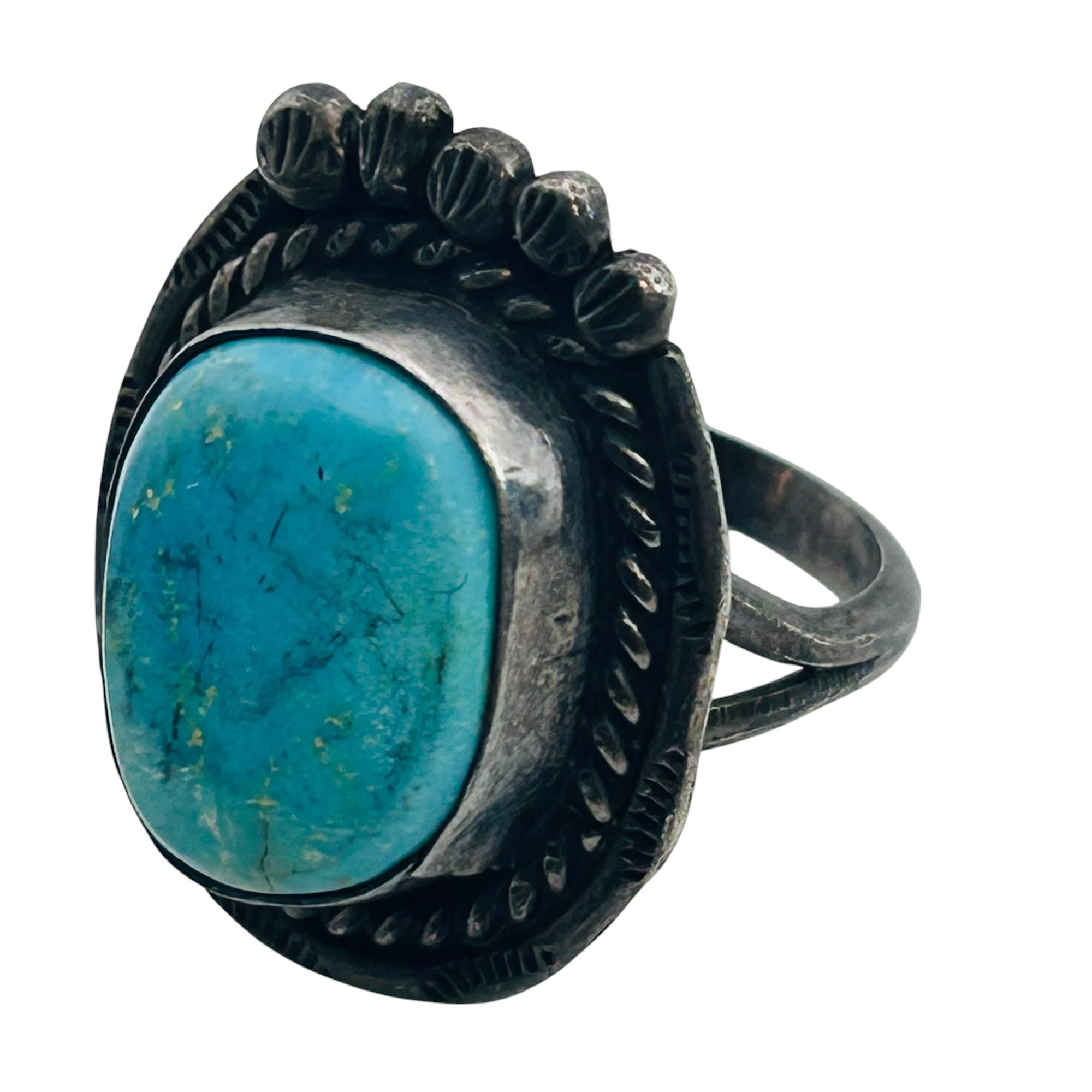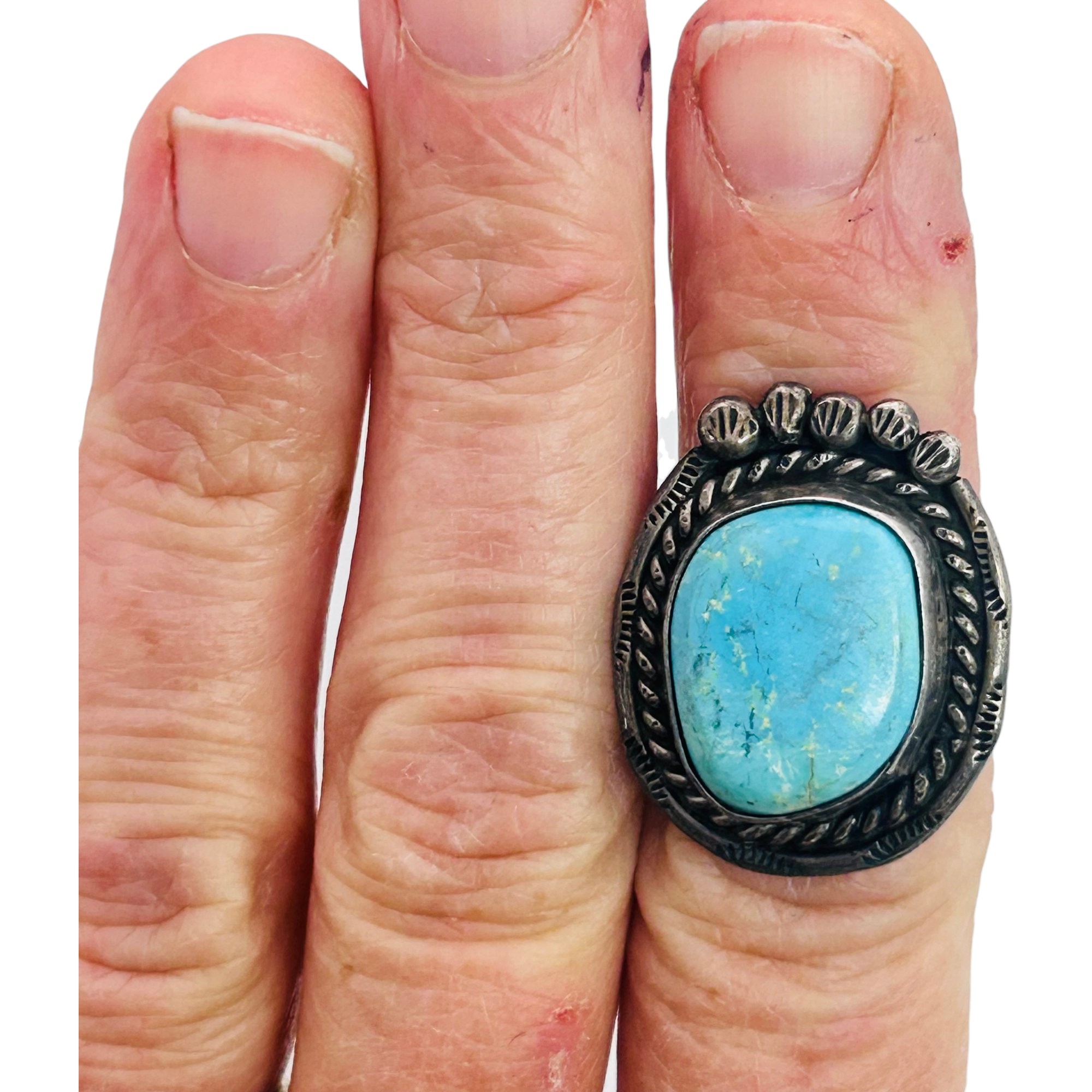 Navajo signed turquoise Sterling ring size 7.5 8.44g