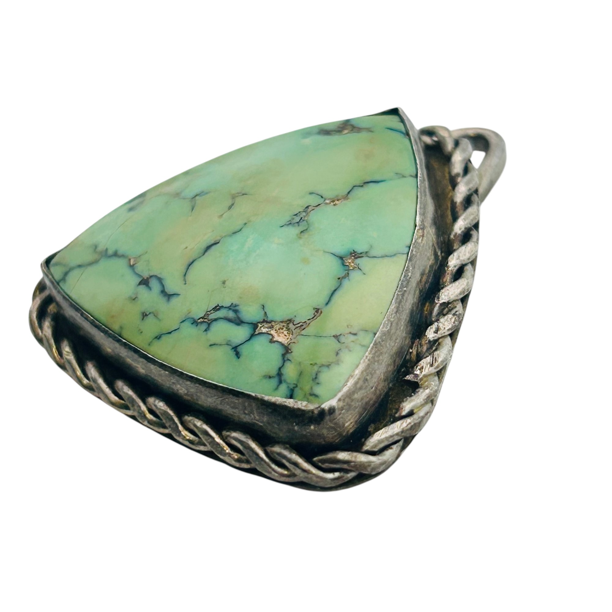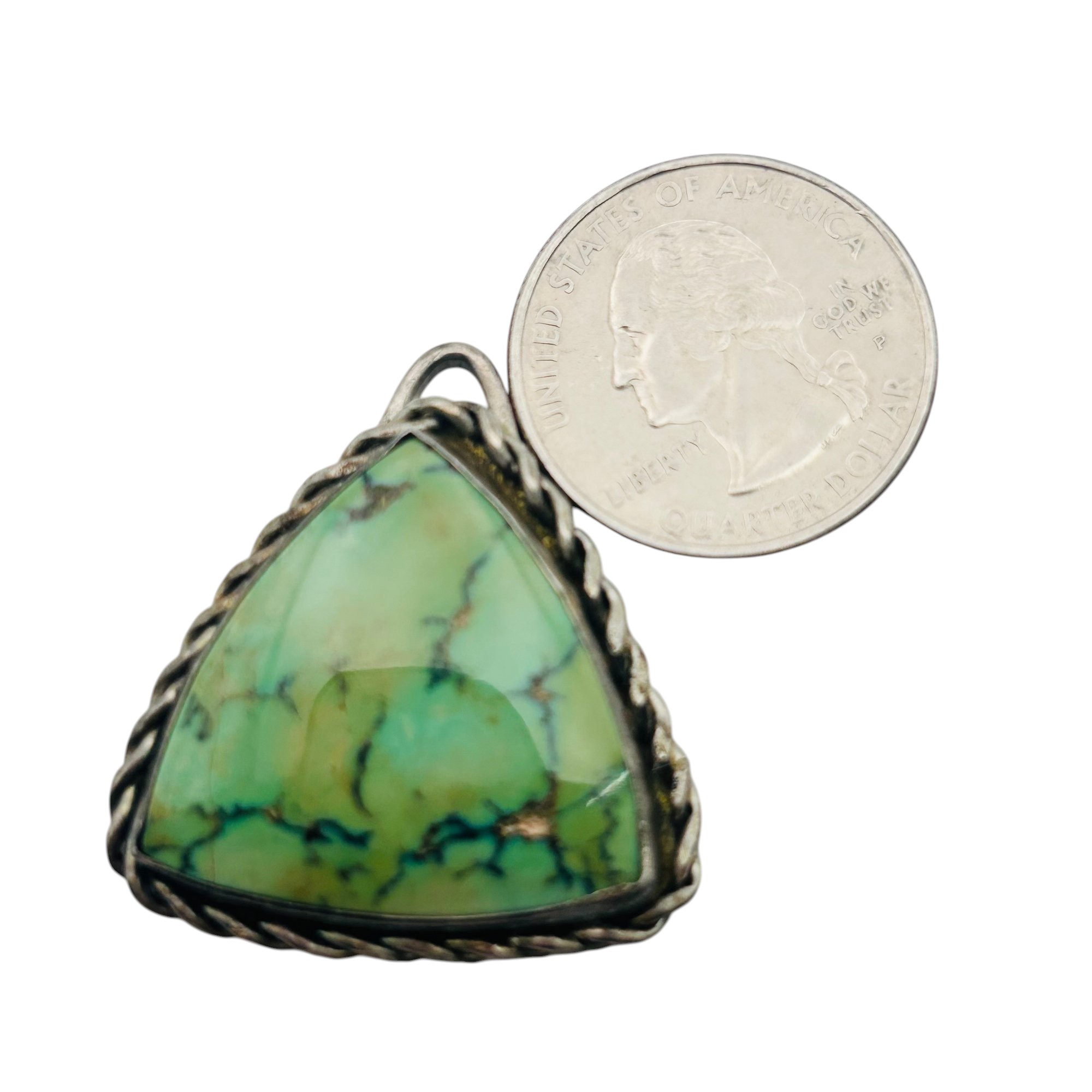 Southwest Sterling Green Turquoise Triangular Pendant 11.19