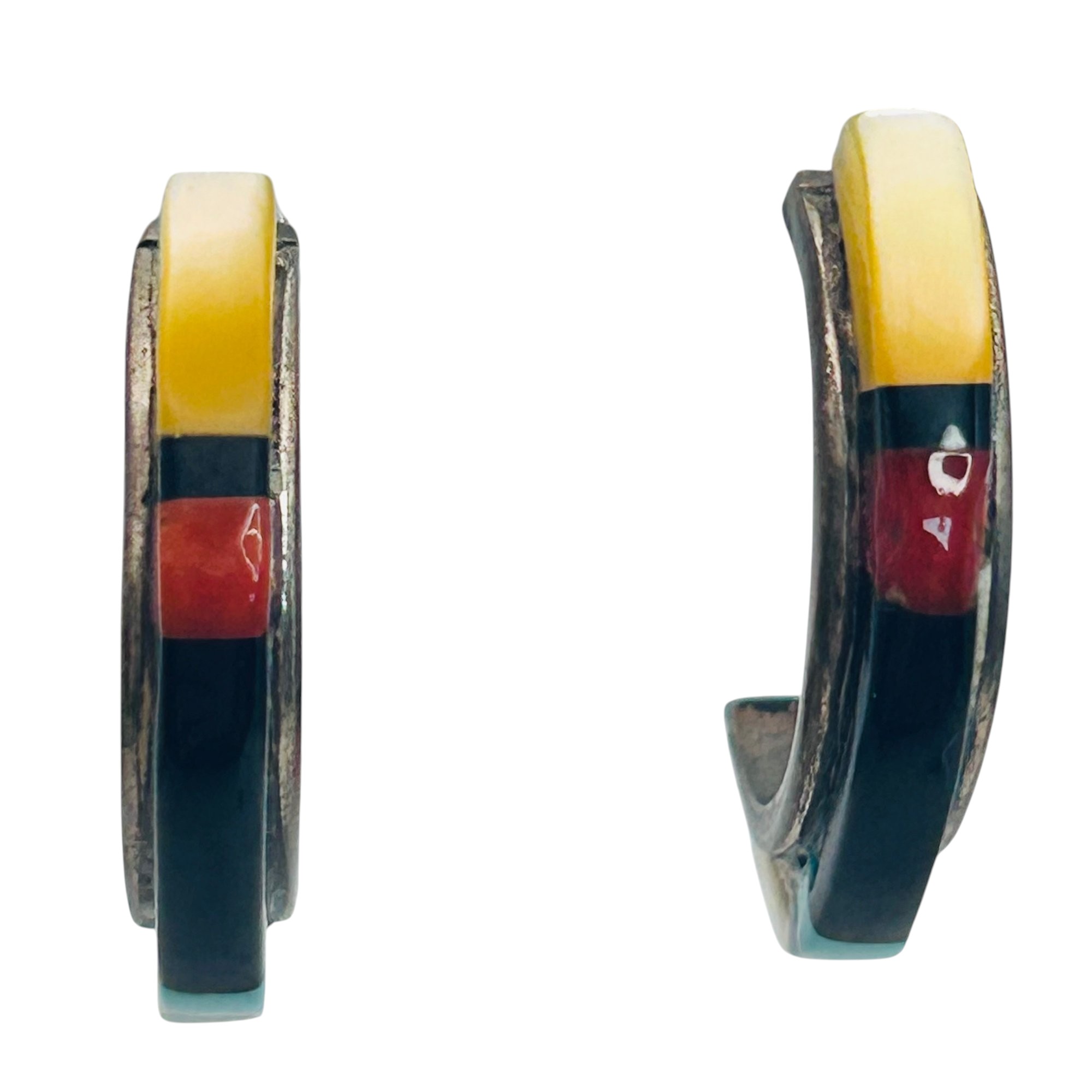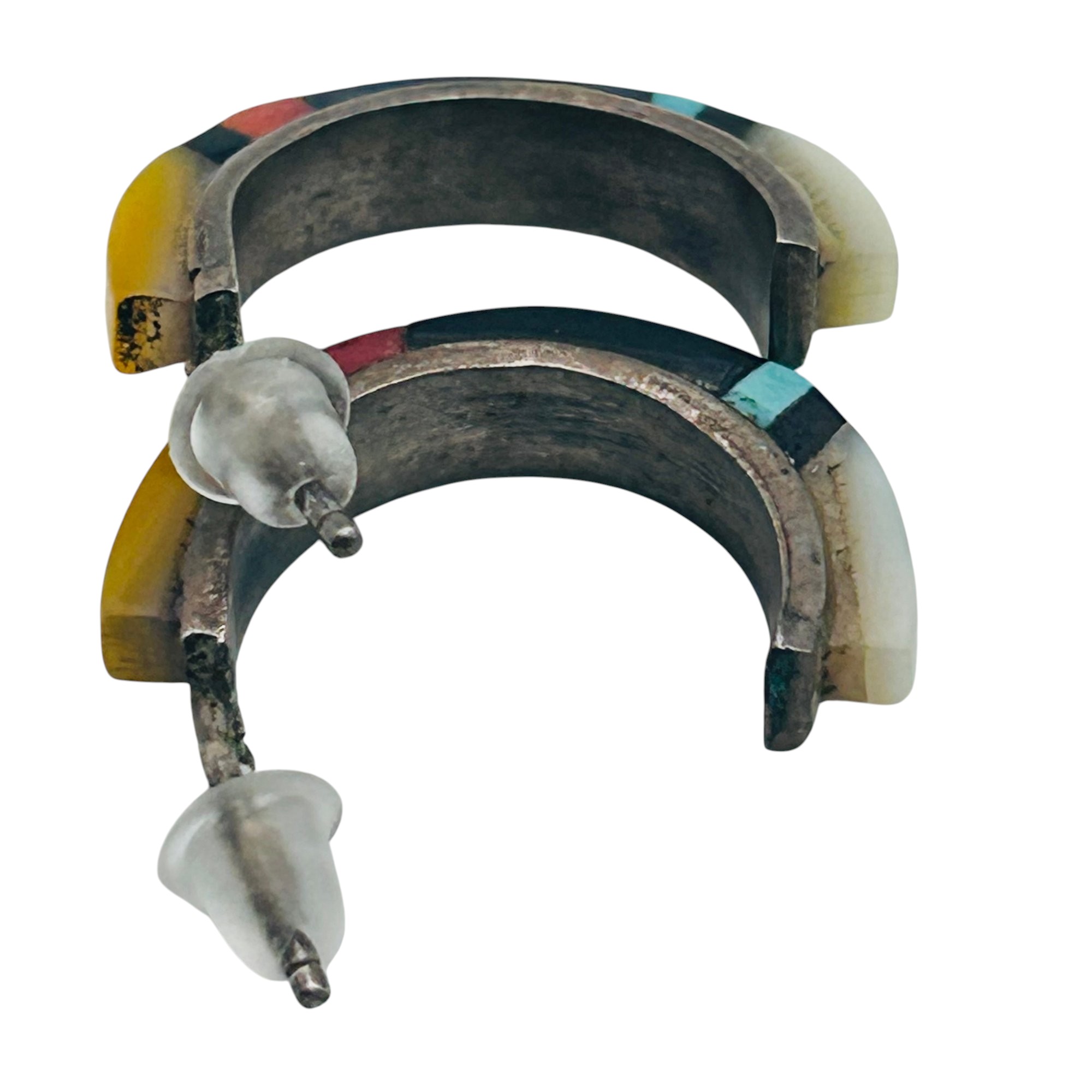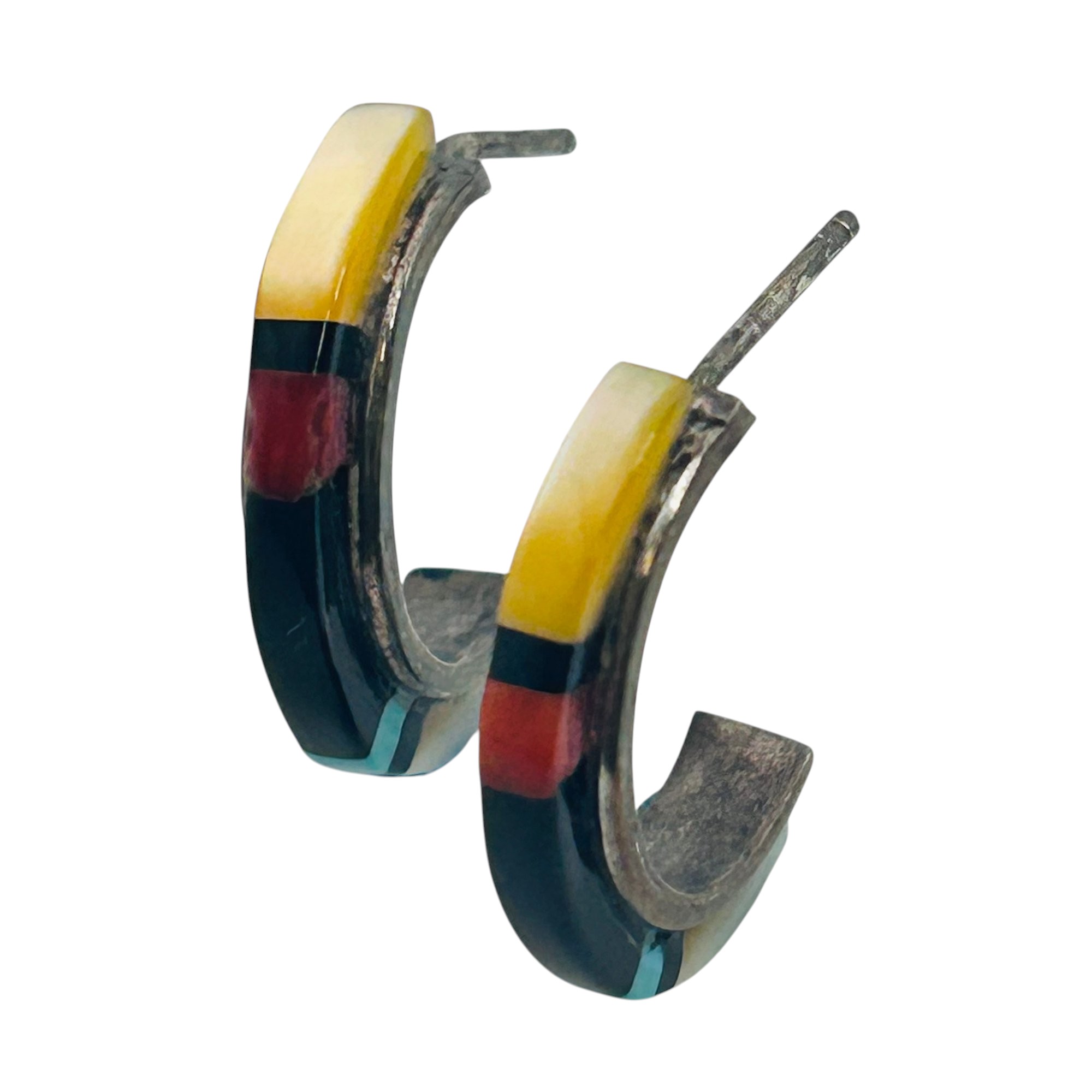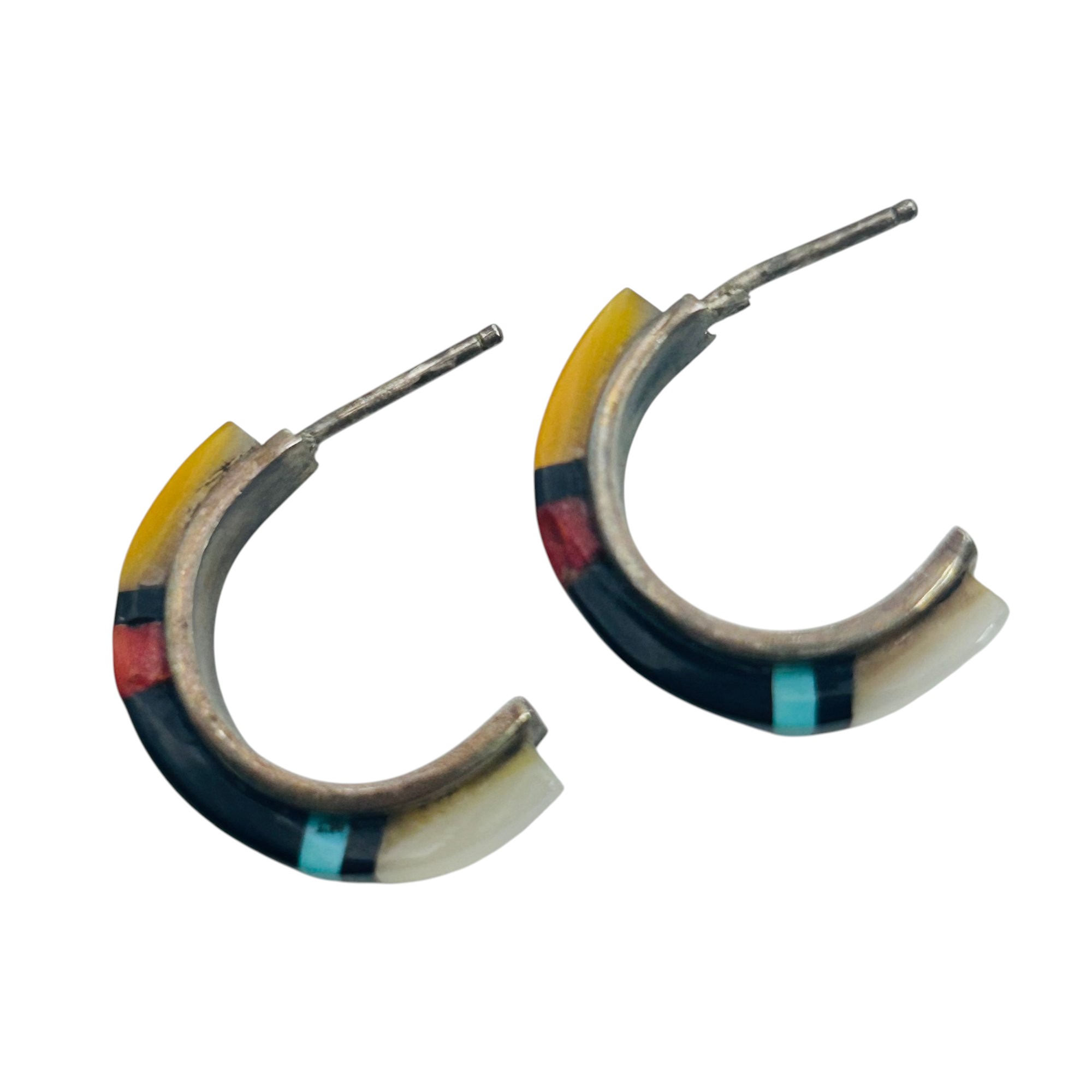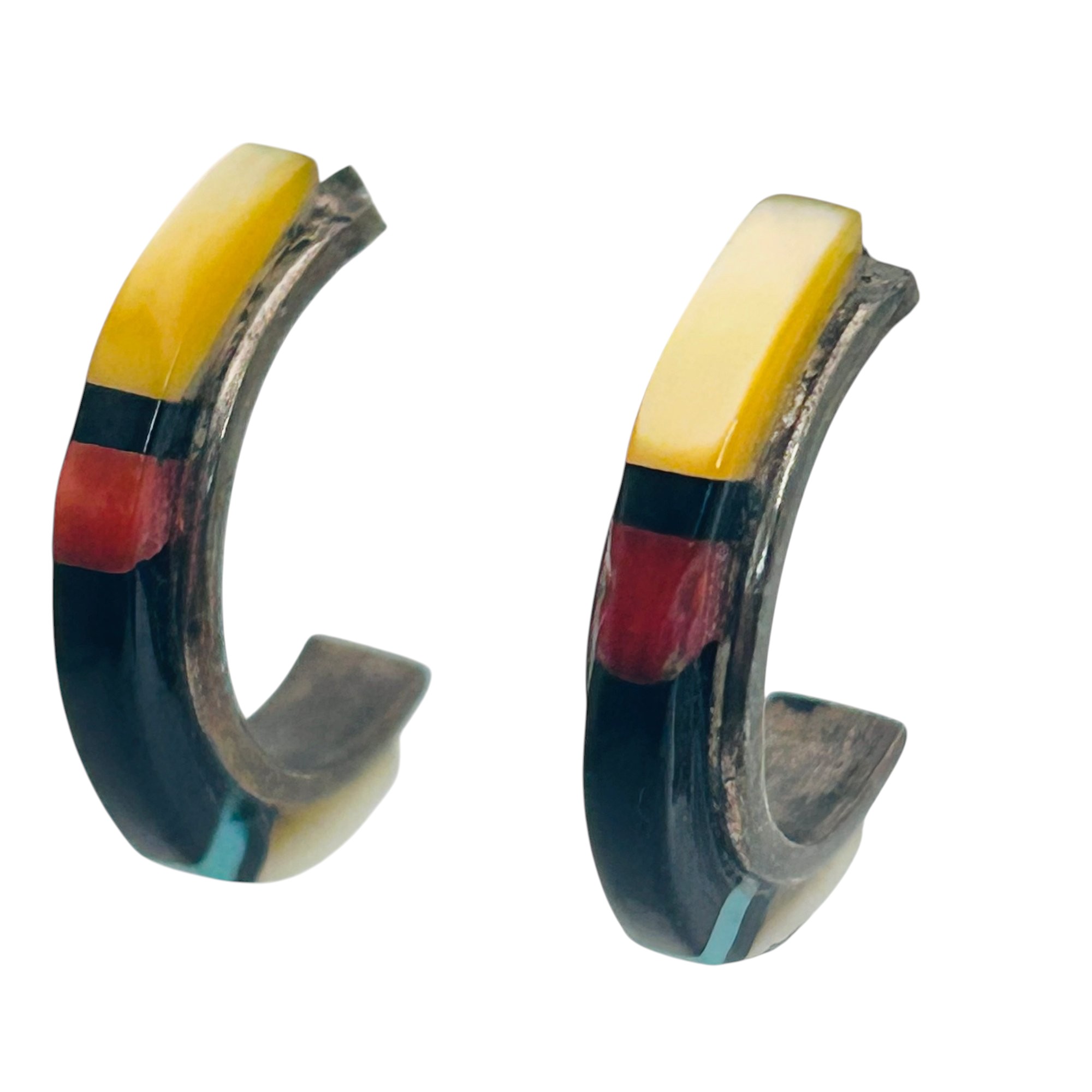 Native Sterling Gemstone C Hoop Earrings 2.68 G