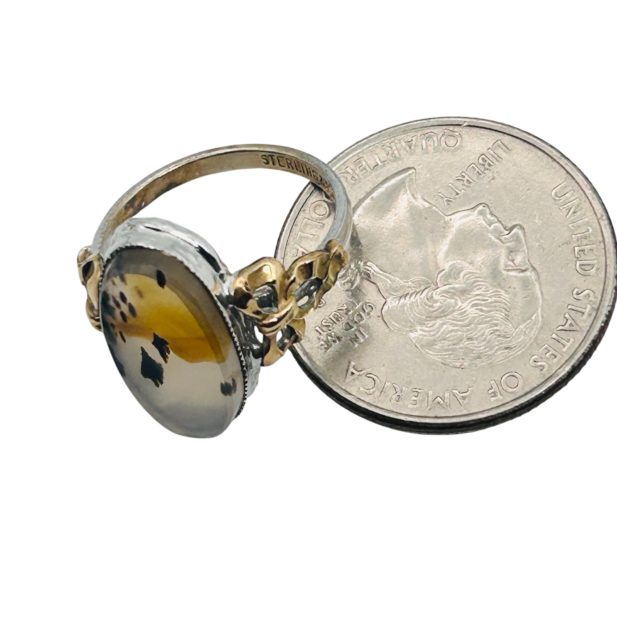 Clark and comb 10k gf sterling agate statement ring size 6 2.88 g