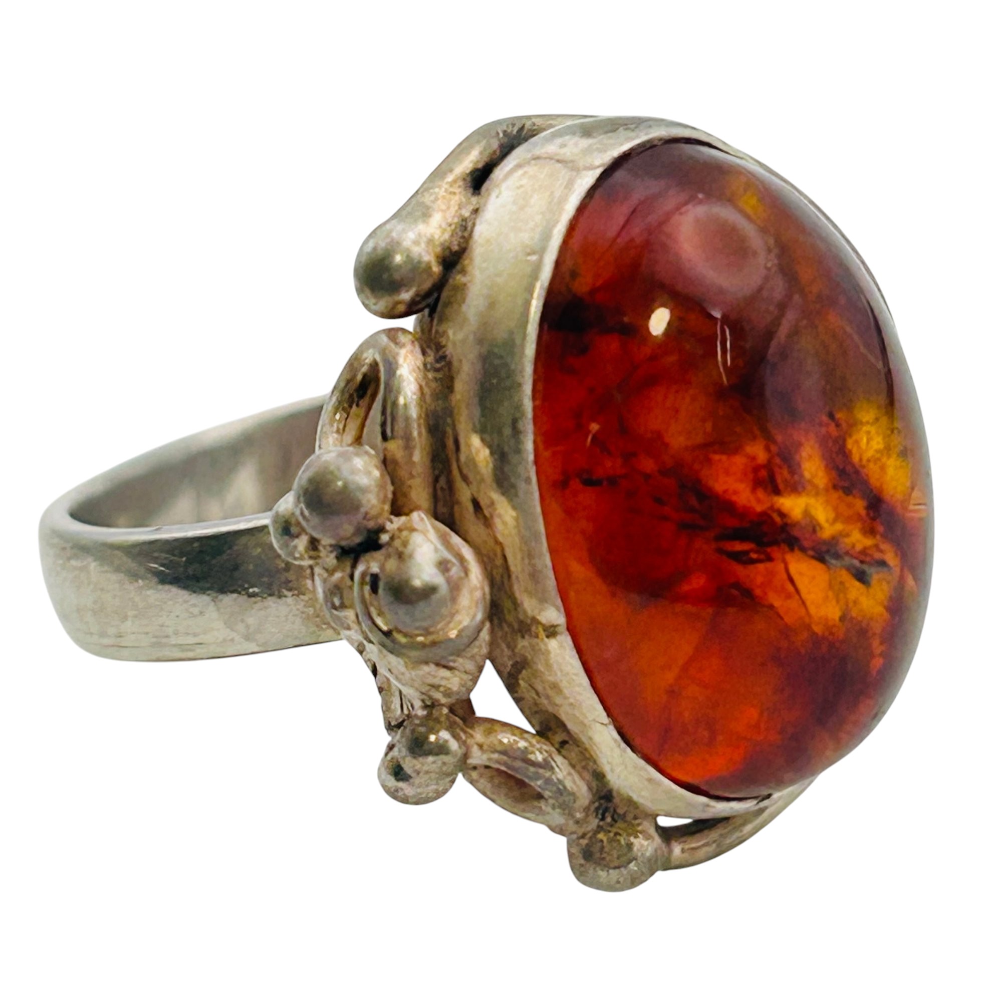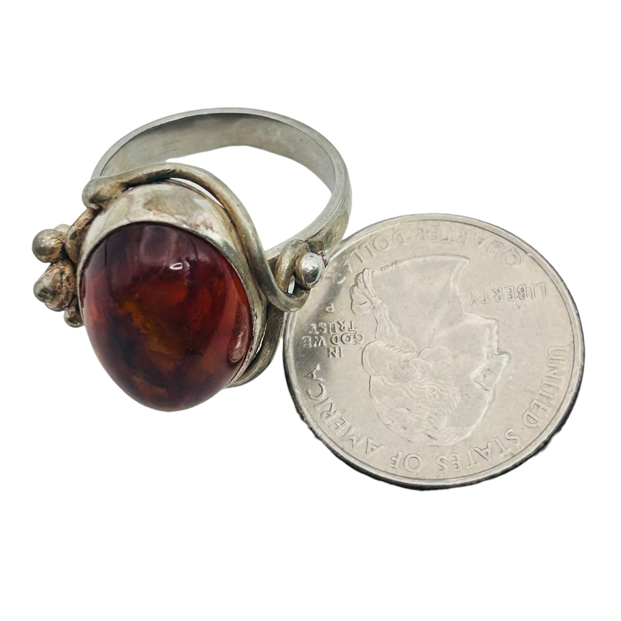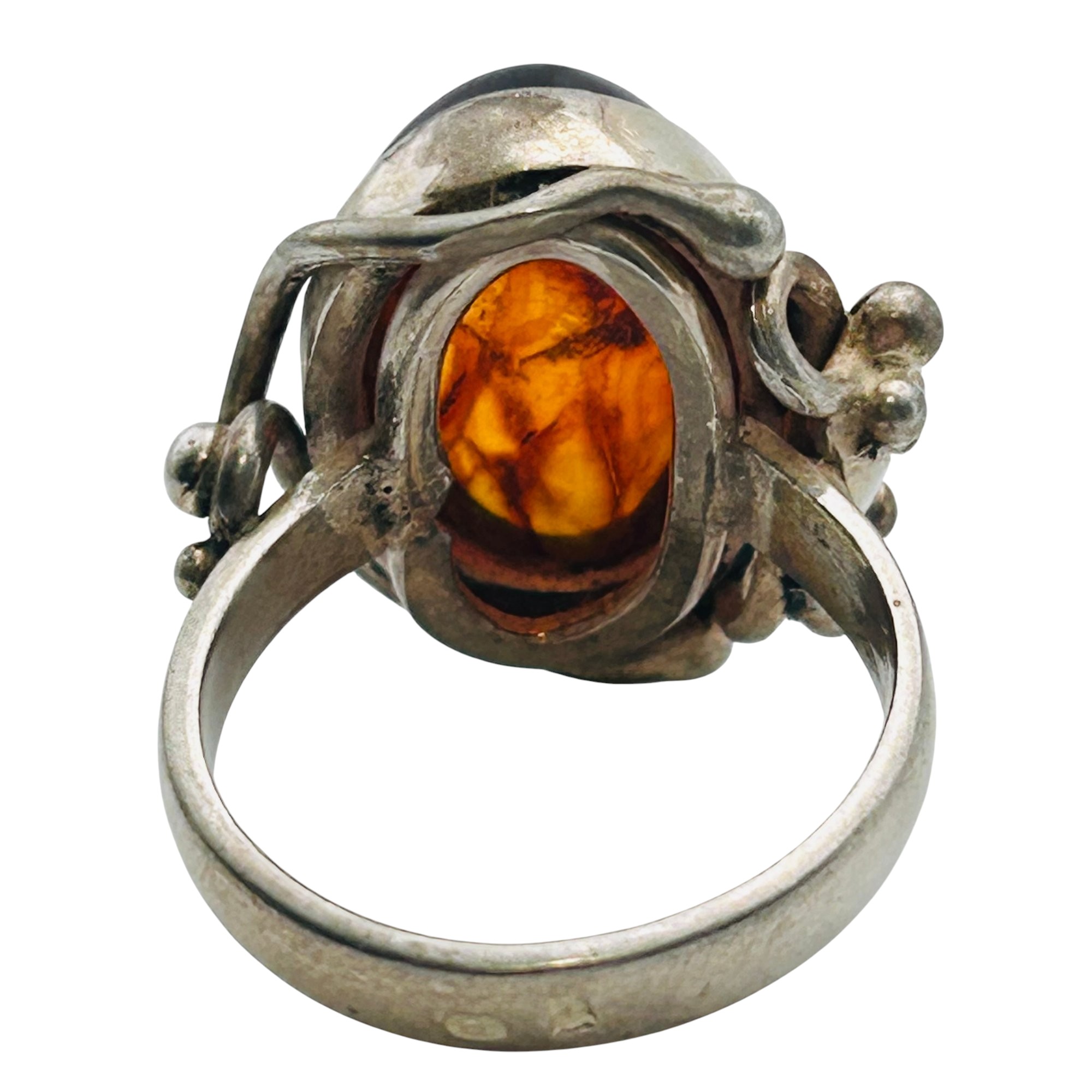 Amber Sterling round ring size 8 8.52 g