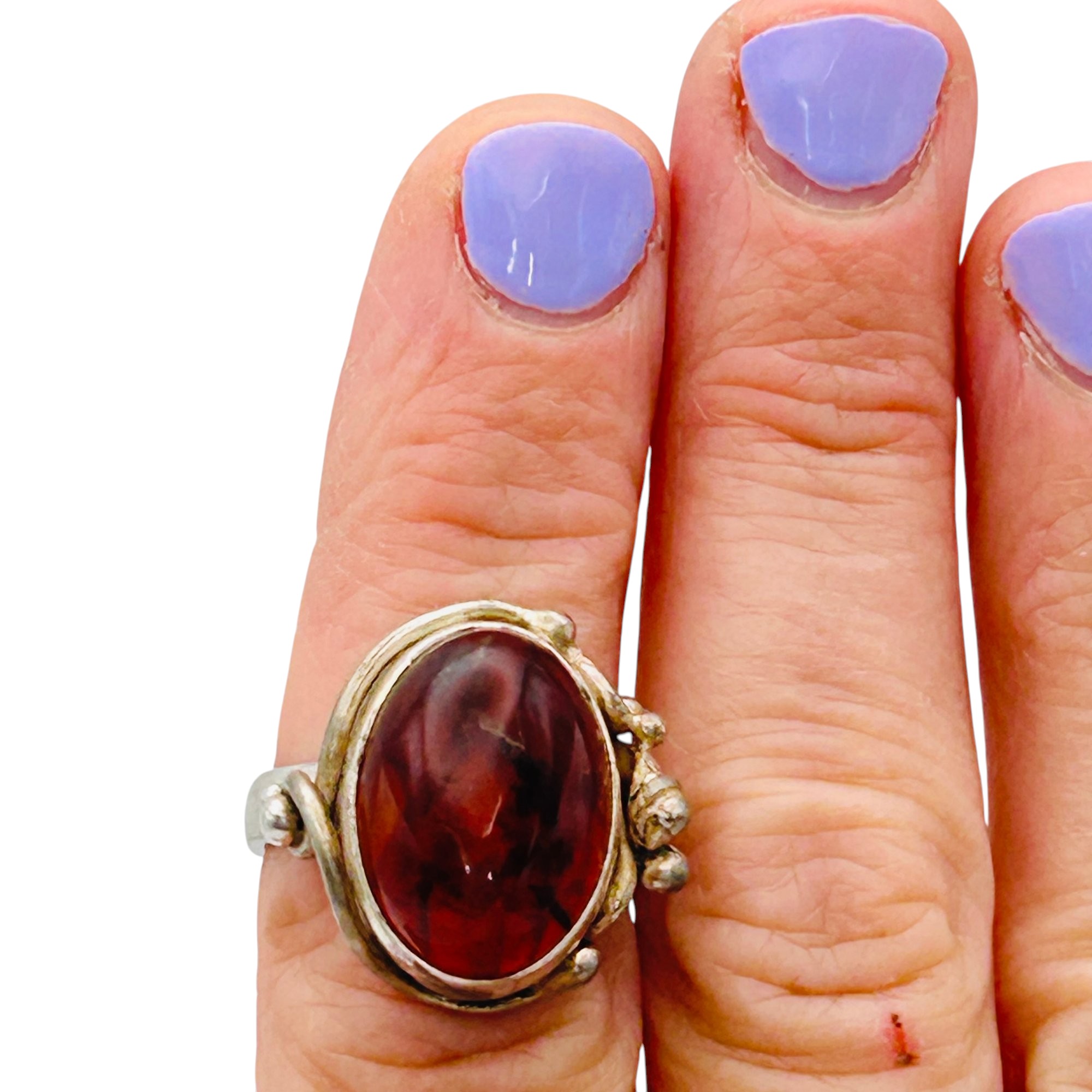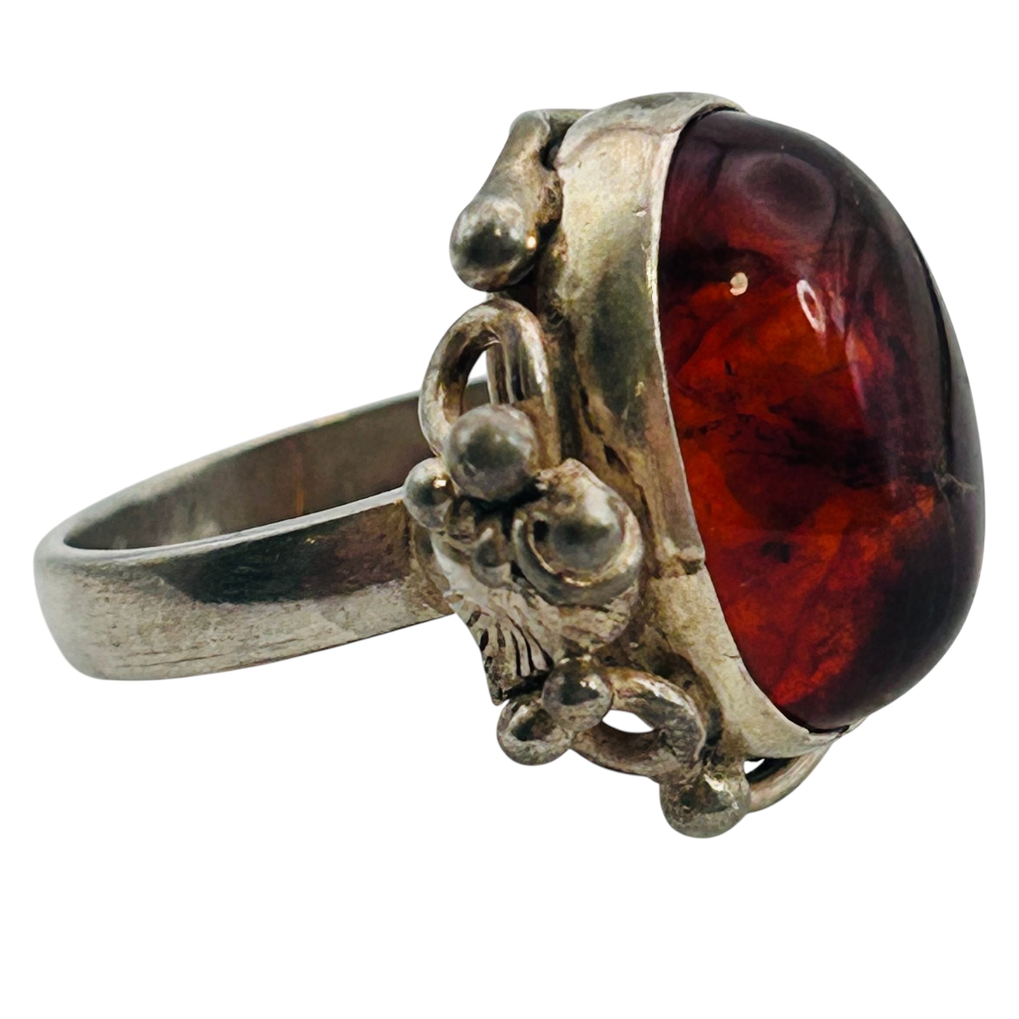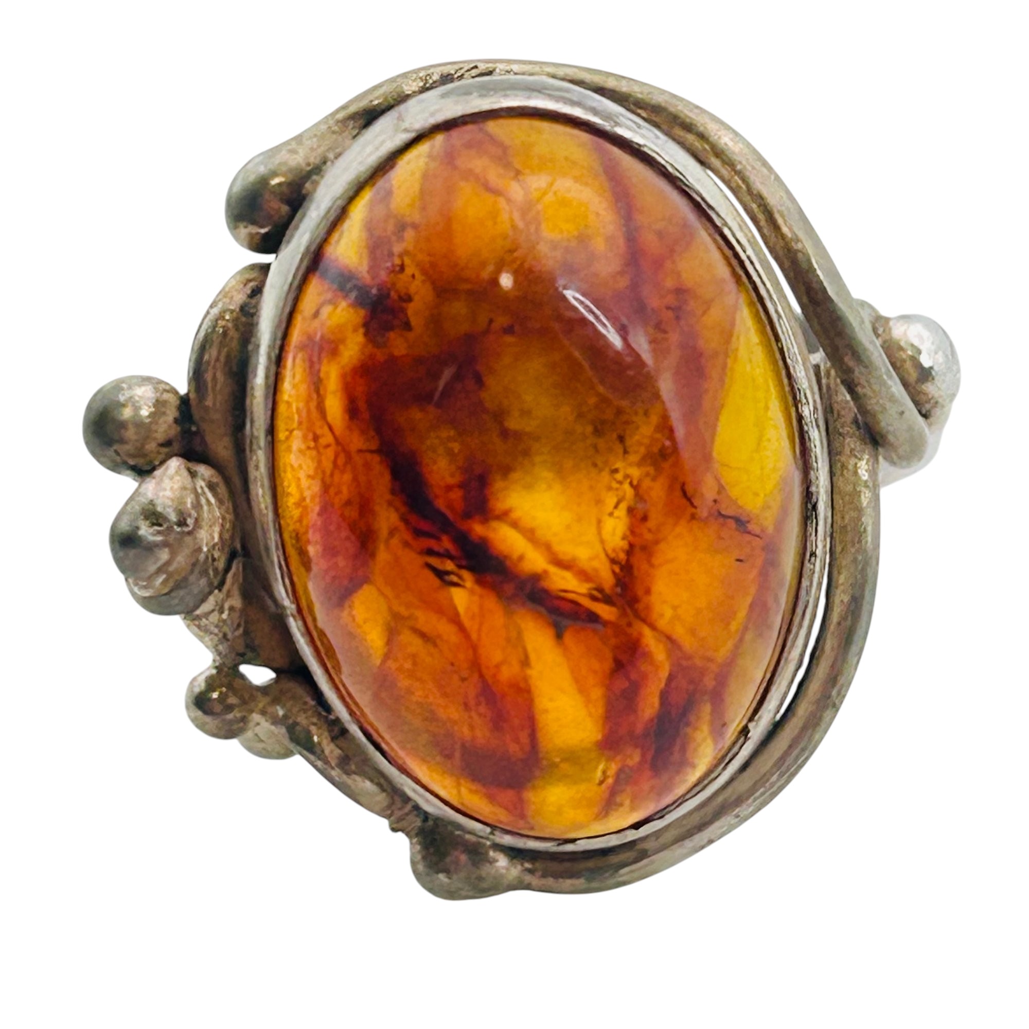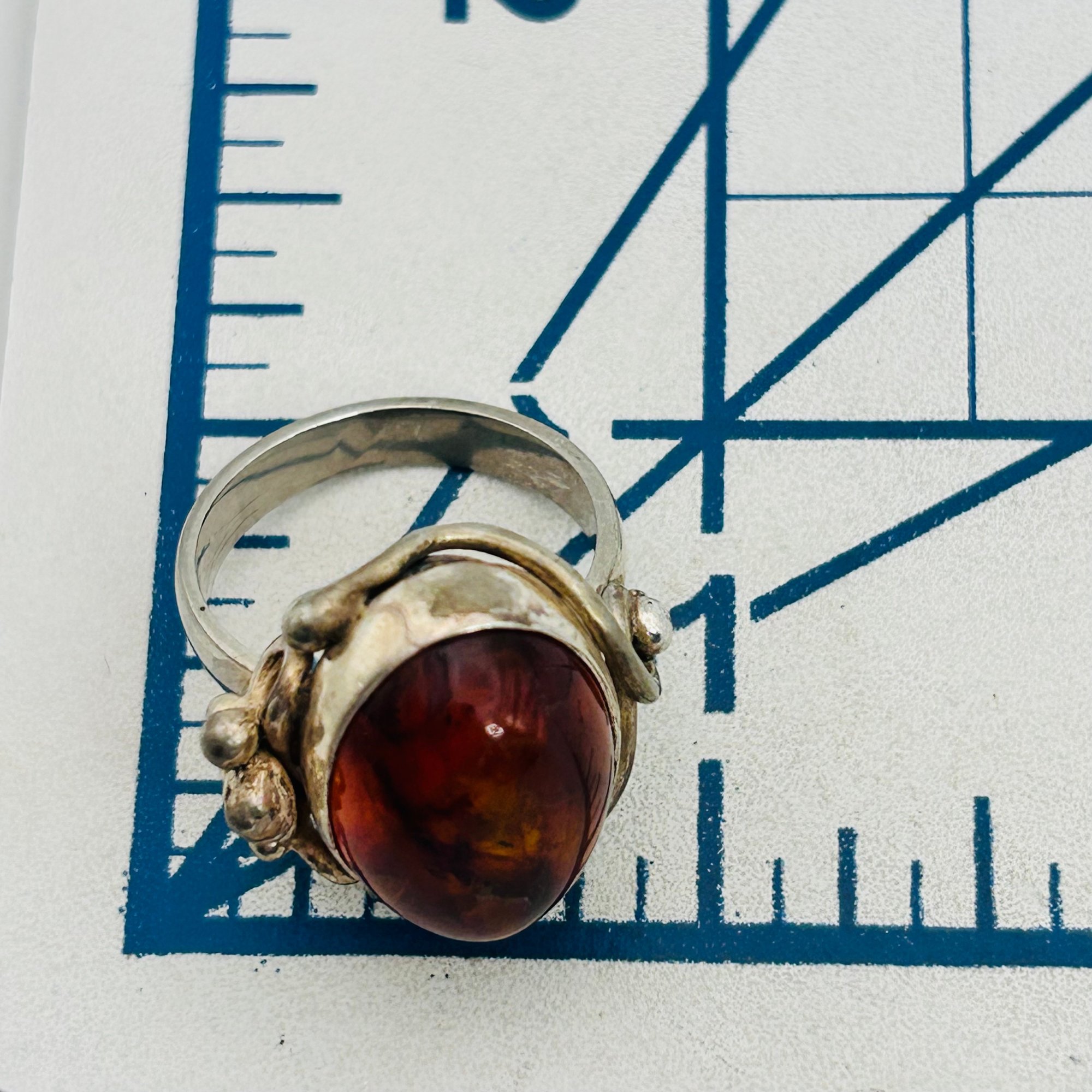 Amber Sterling round ring size 8 8.52 g