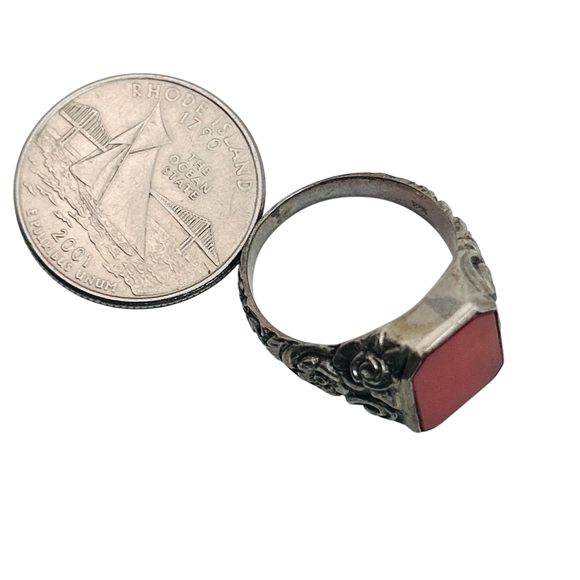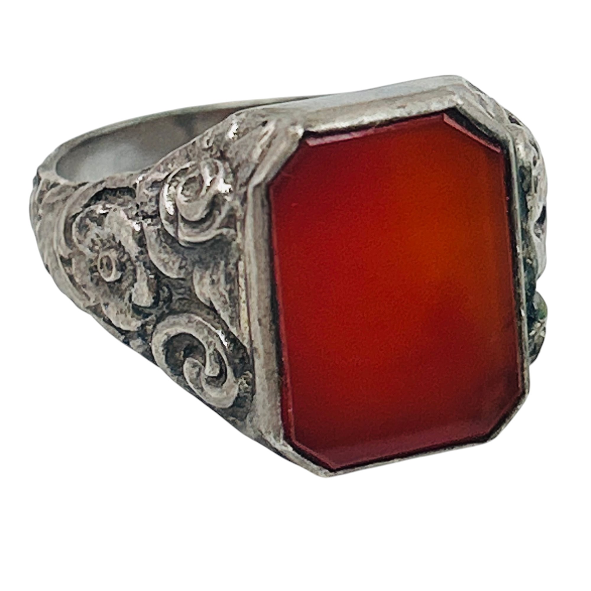 CARNELIAN sterling rectangular statement ring size 9 6.7 g