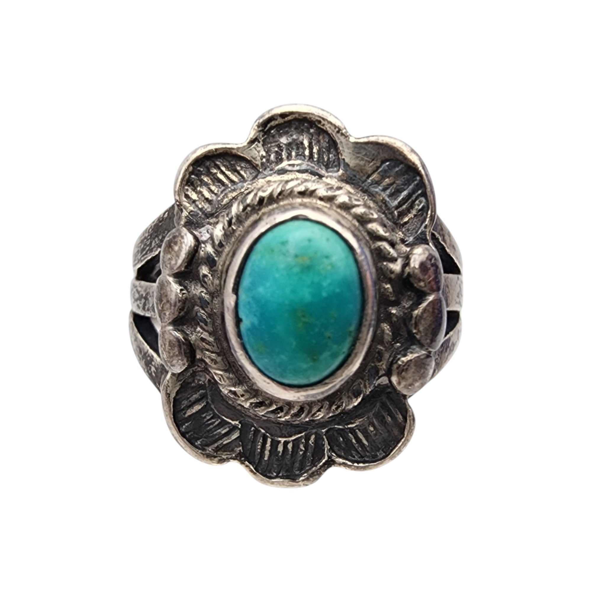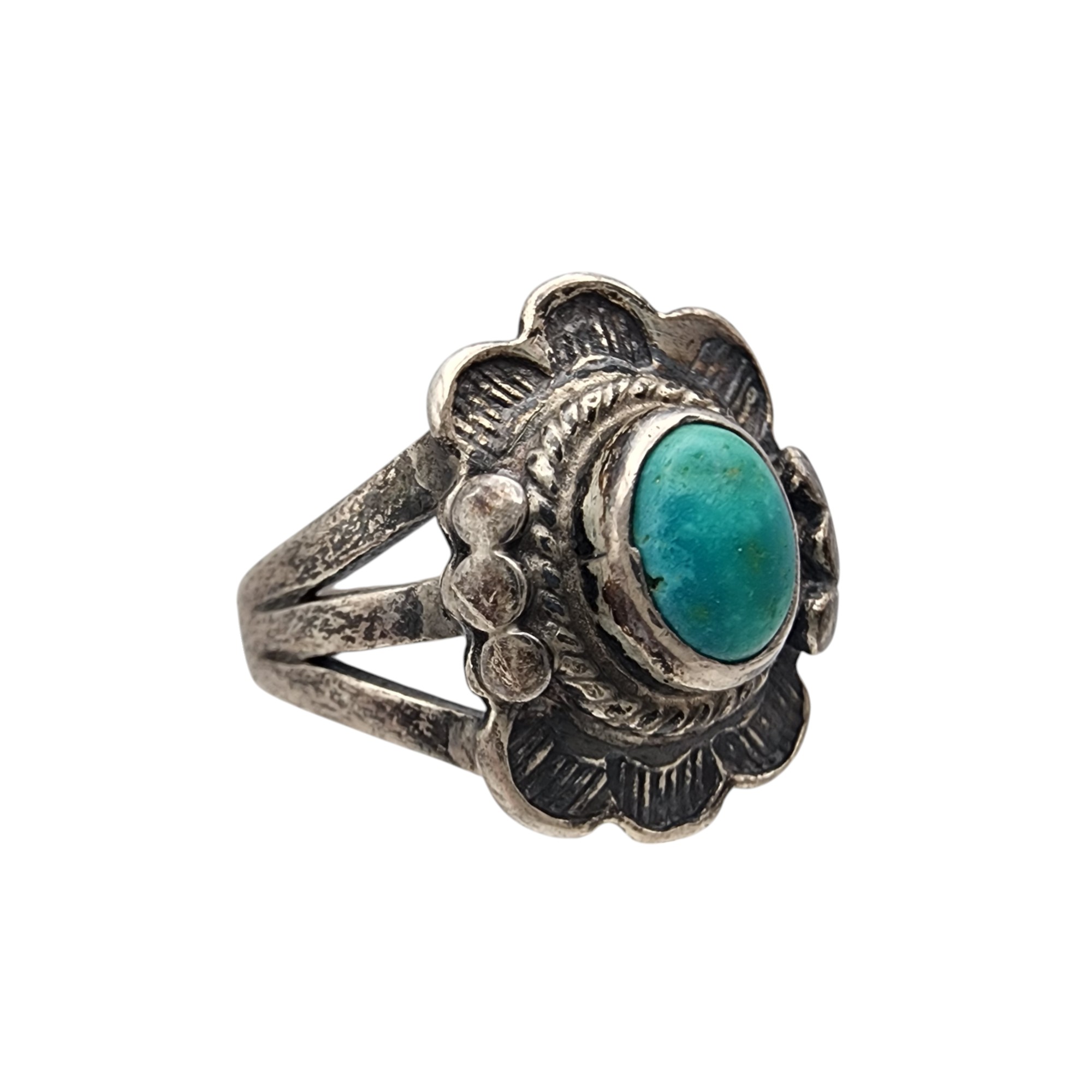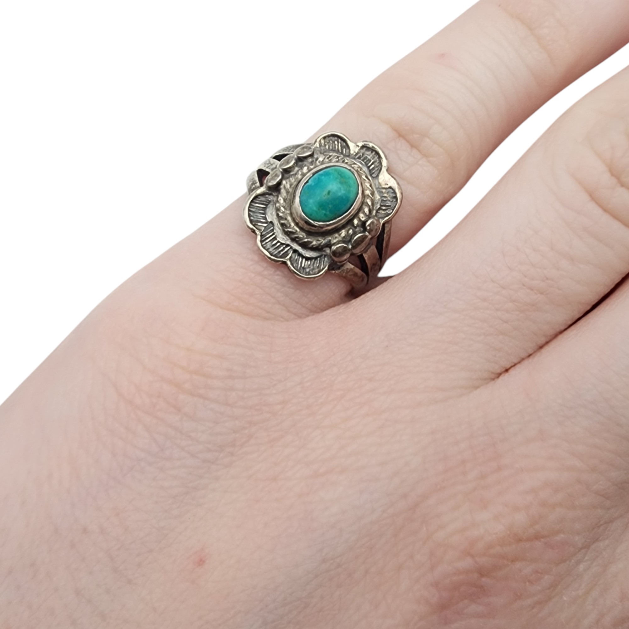 Vintage Navajo Sterling Turquoise Ring Sz 4.75, 4.6g