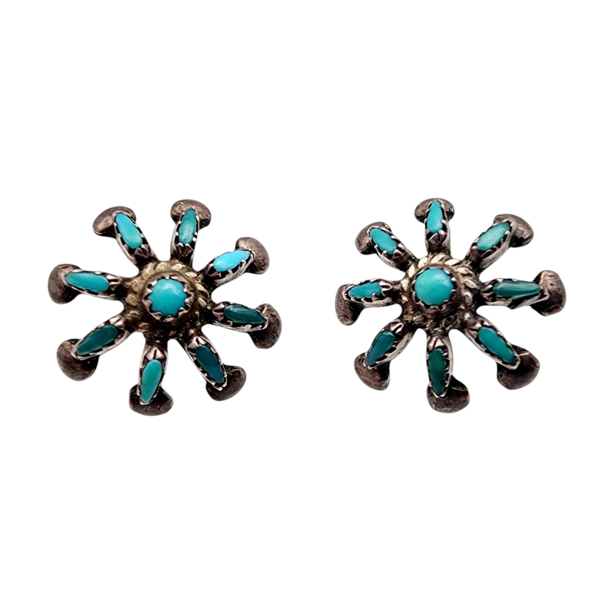 Vintage Zuni Sterling Turquoise Needlepoint Earrings 2.6g