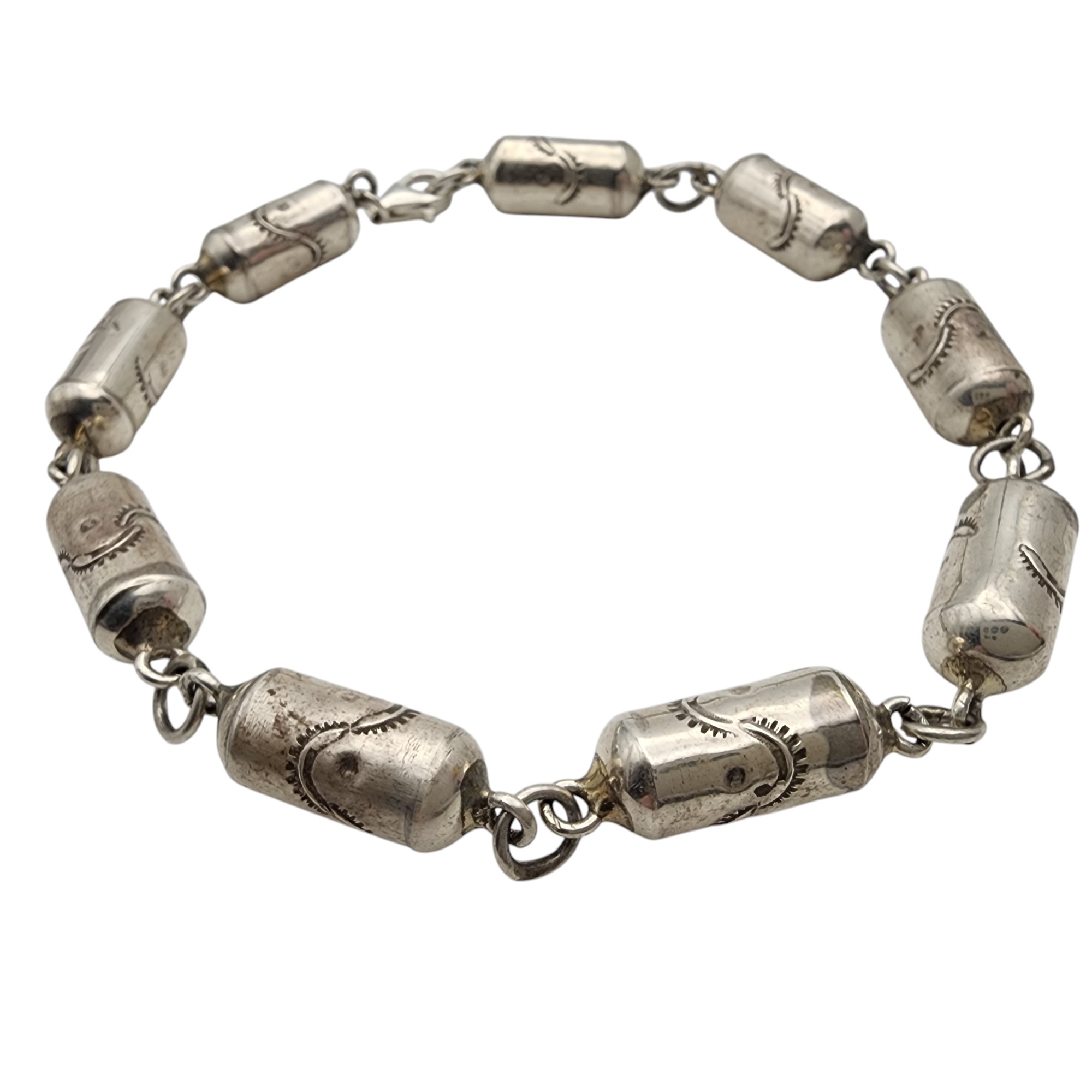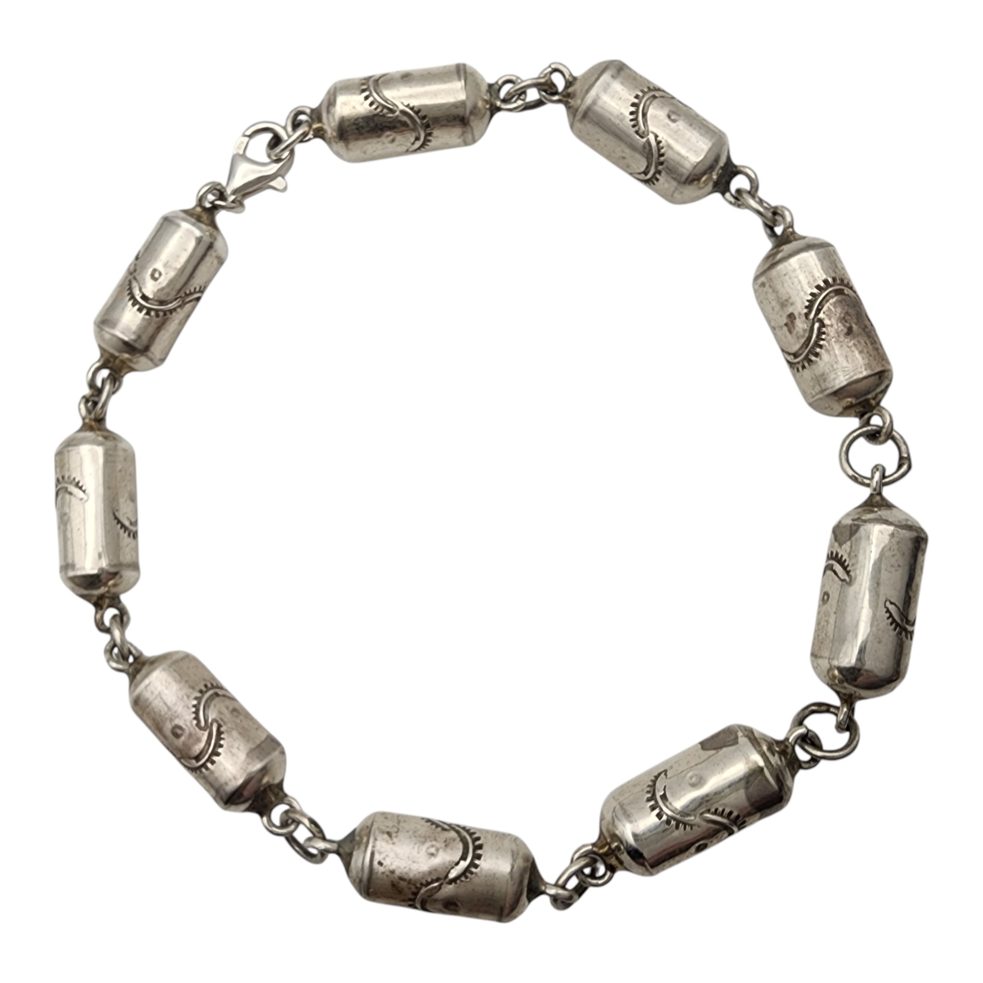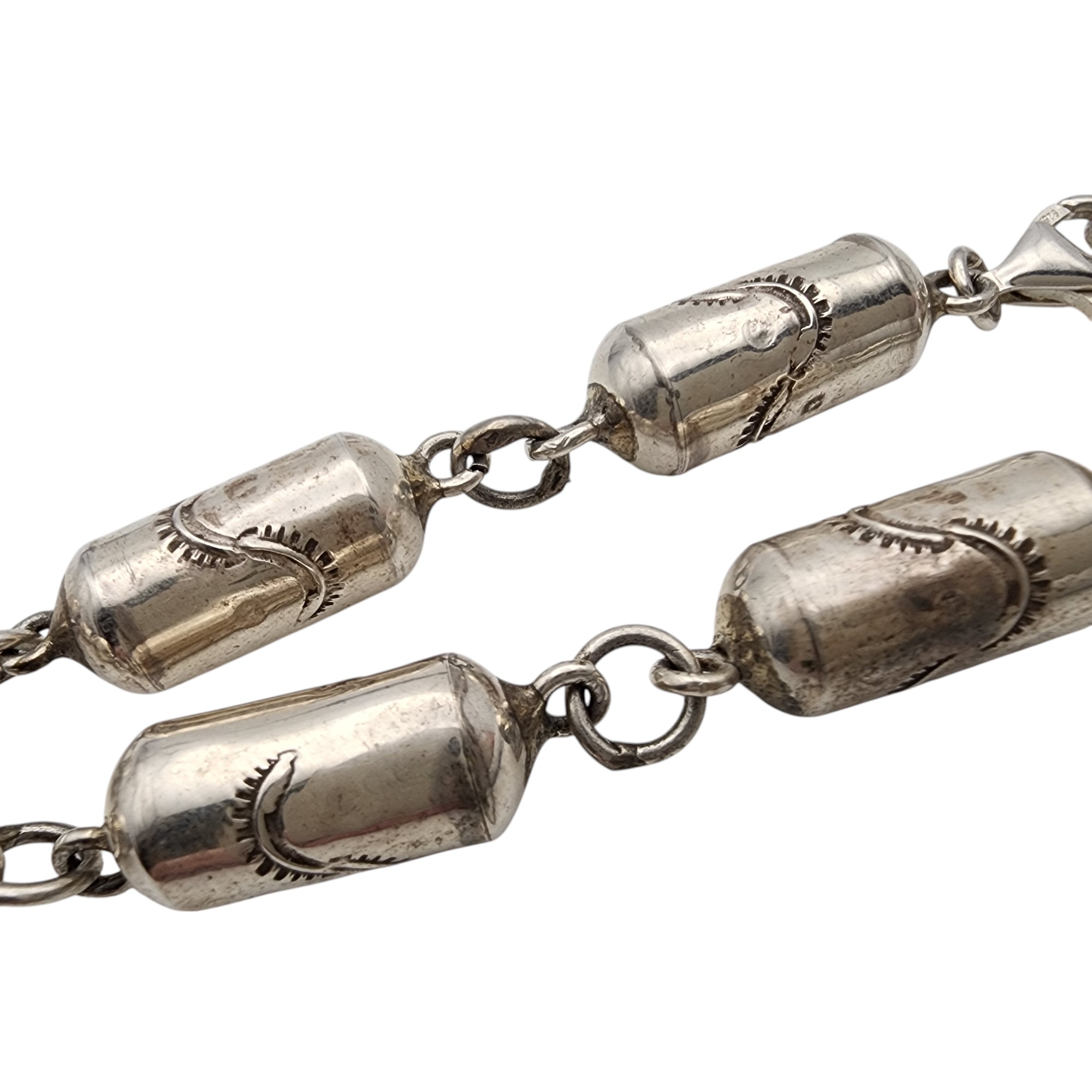 Southwest Sterling Stamped Barrel Bead Bracelet/Anklet, 14.8g