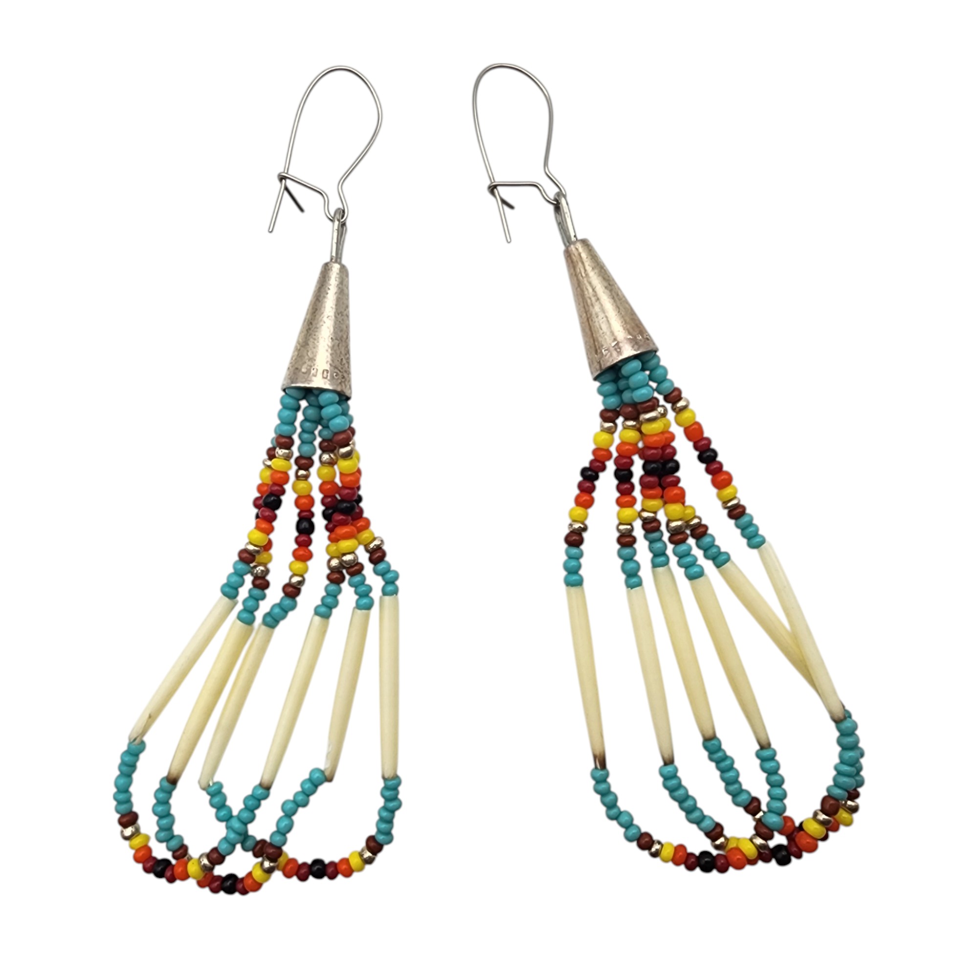 Southwestern Sterling Bead Earrings, 3.5g, as is – one bead is partially splintered, see photos