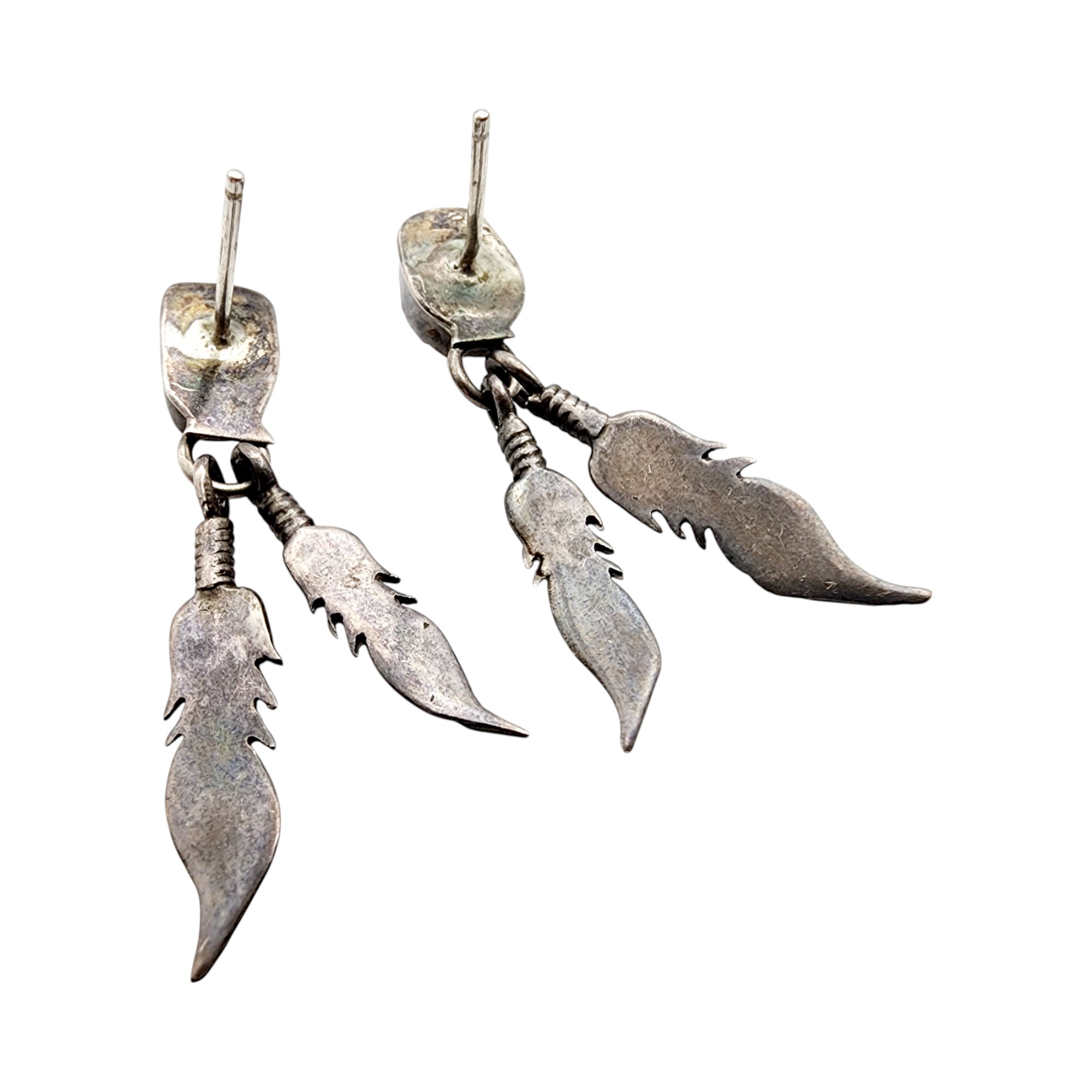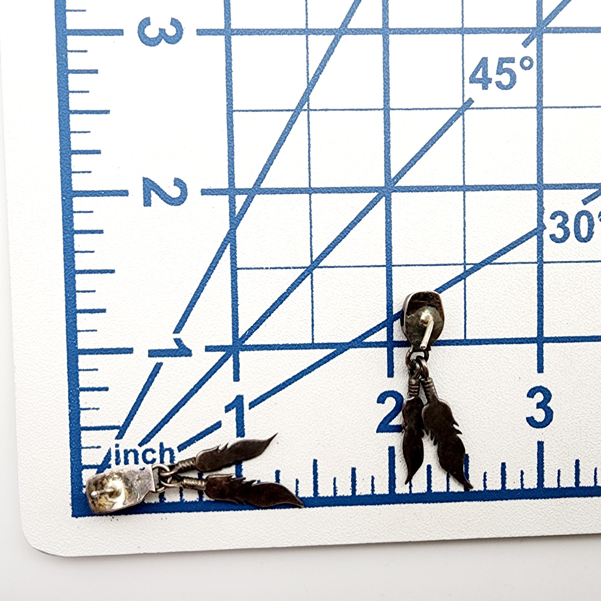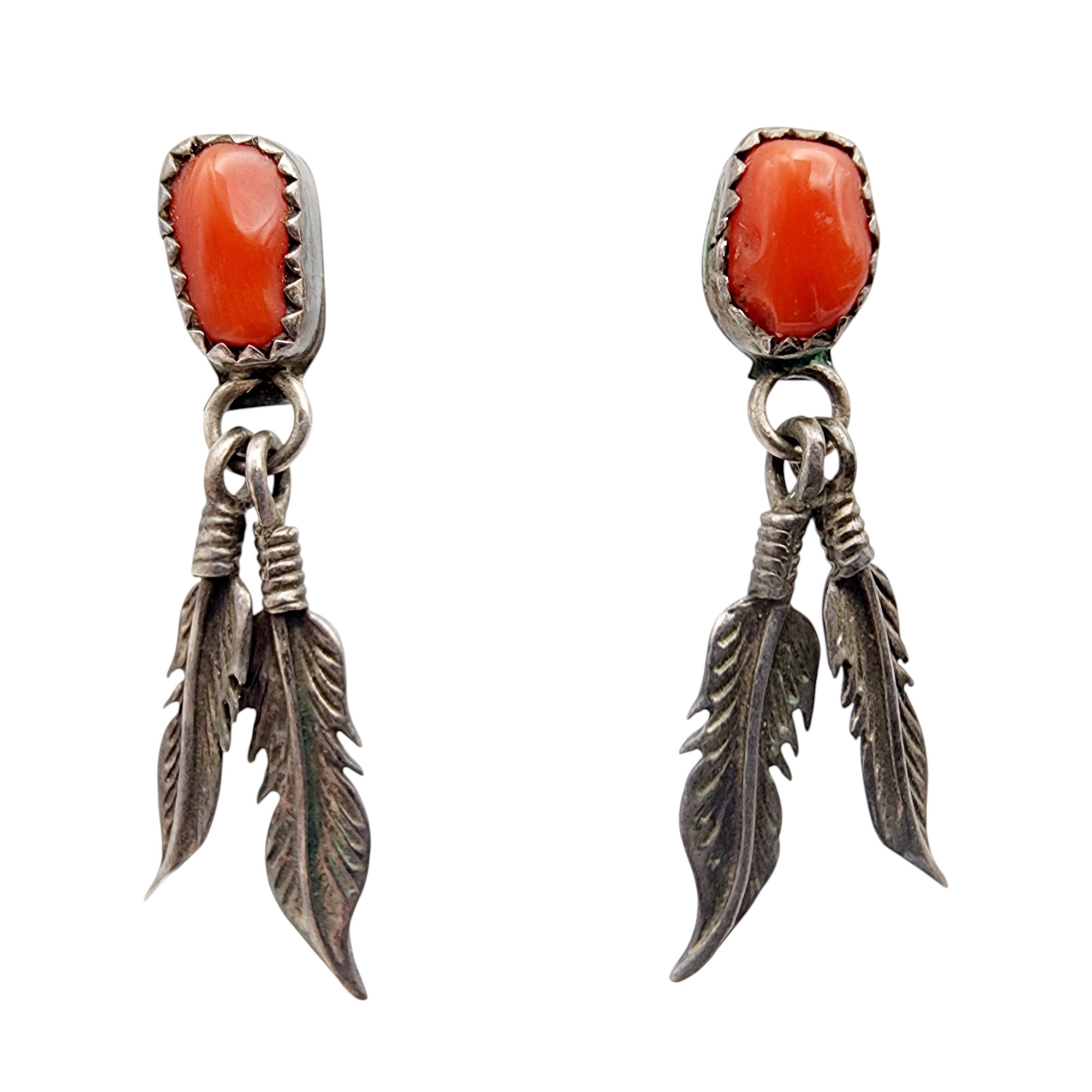 Vintage Navajo Sterling Coral Feather Dangle Earrings 3.3g